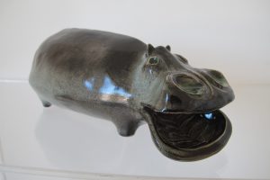 VINTAGE Bennington Hippo Coin Bank. 1960’s. SIGNED. Ellis Pottery era. Bitossi Pottery.