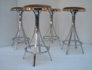 4 VINTAGE Bar Stools / Chairs. Italian Italy ? Steel. Gold. B & B Italia era.