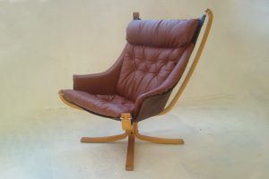 Falcon Chair High-Back w/ wings. Leather. Vatne Mobler. Vintage.