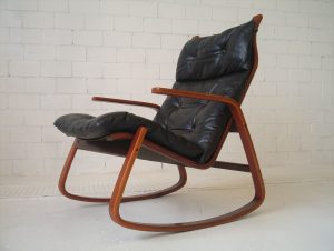 Norwegian LEATHER Rocking Chair. Westnofa Norway LABELS. Falcon era.