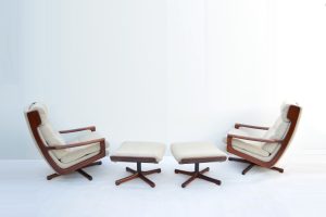 s Joe Rufenacht LEATHER Relaxation Chairs for Lamitech. Vintage Chairs. Retro Siesta Chair, era.