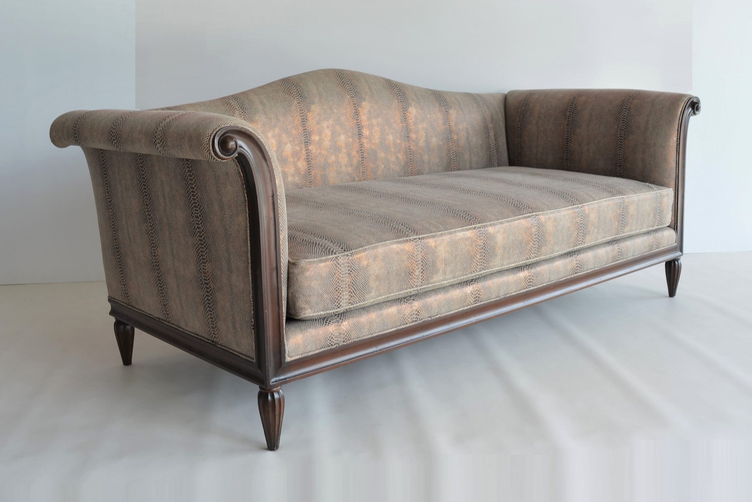This sofa has no back cushions- it could be used as is in a salon, as an occasional sofa or for staging. For more everyday use you’ll need some back pillows (see the Christopher Guy website for inspiration). Feather pillows and bolster cushions will add further luxury and sumptuous comfort and can move the look in any direction you want.