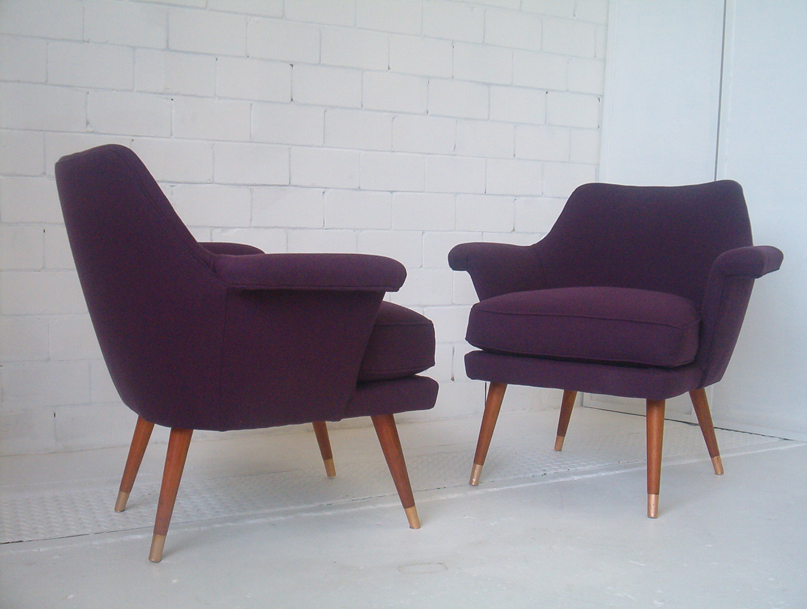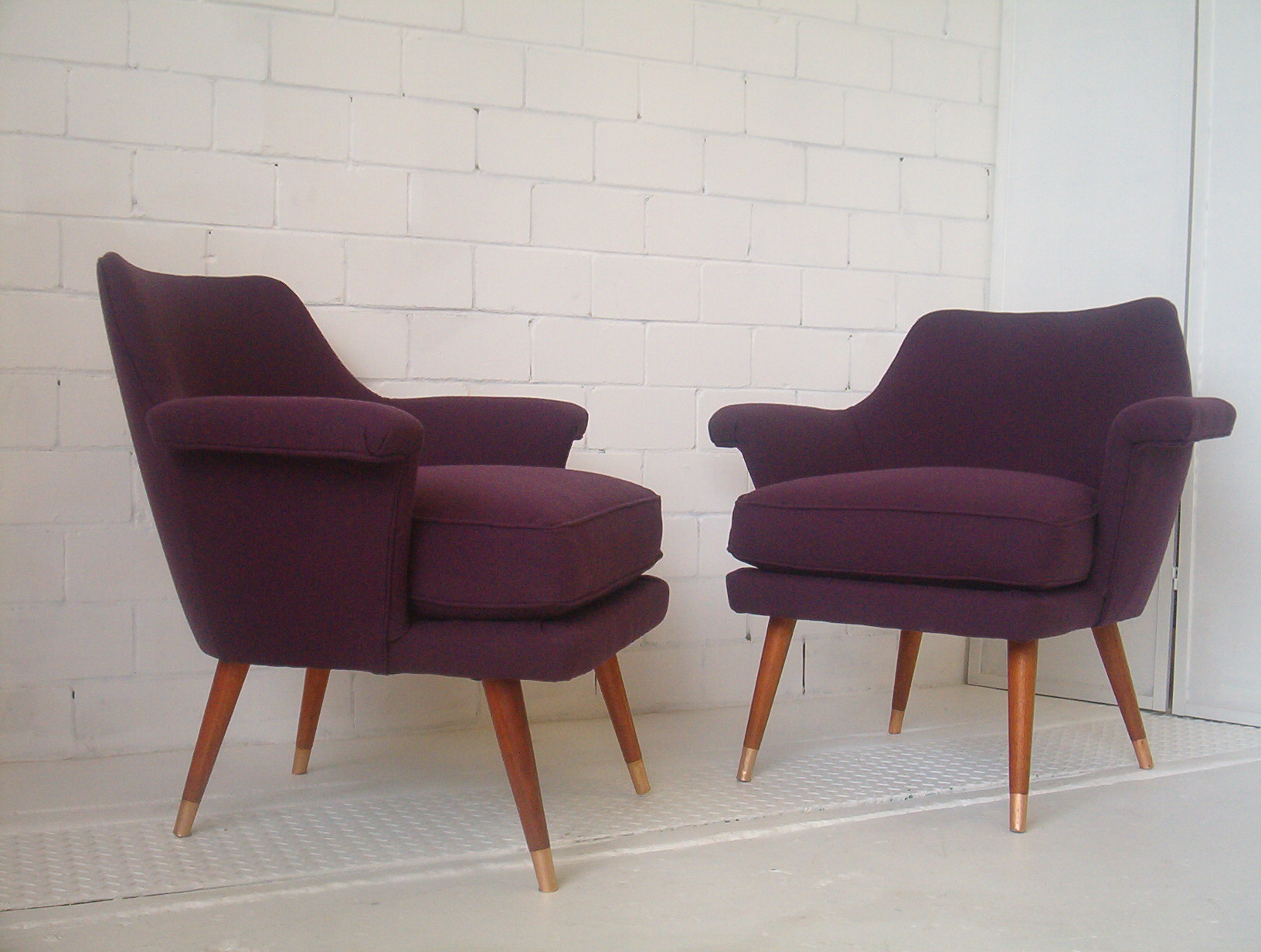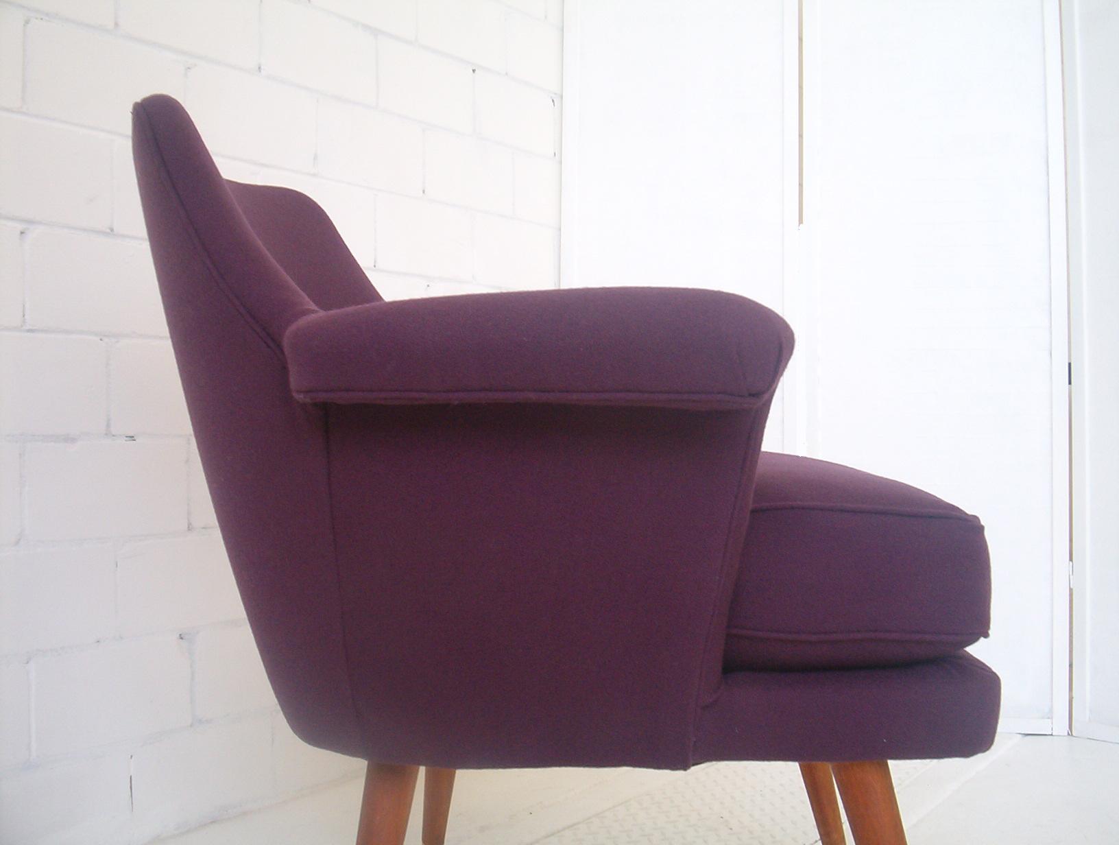 These are great chairs but after 17 years in this business I still don’t know the maker. They were certainly 1950’s (when Featherston was doing his Contour chairs), top-quality and very RARE. I’ve never come across this design since. I’m inclined to think they’re European but that’s a guess. Could be Australian by the likes of Jacob Rudowski, the Rosando Brothers, Dario Zoureff or one of the other boutique makers of the time. They were selected to be used in Home Beautiful magazine back in 2006 when I sold them. If you have any information on this design I’d be grateful to hear from you. I’m more than happy to acknowledge your contribution and provide a link to your website.