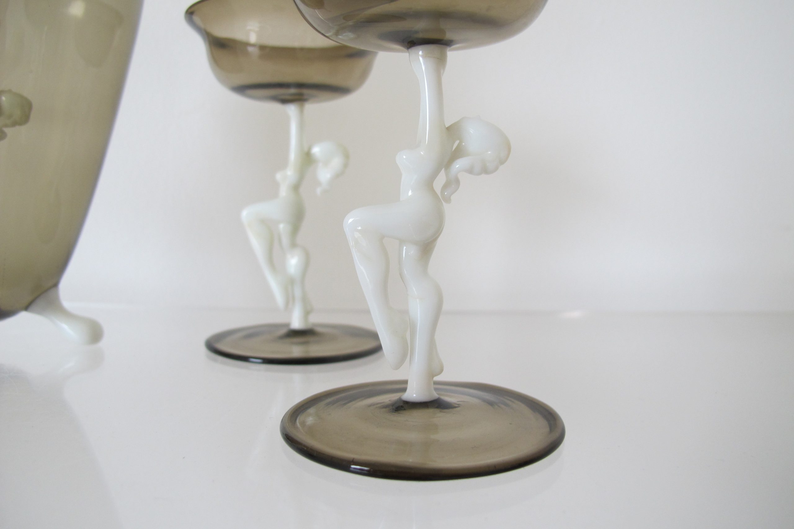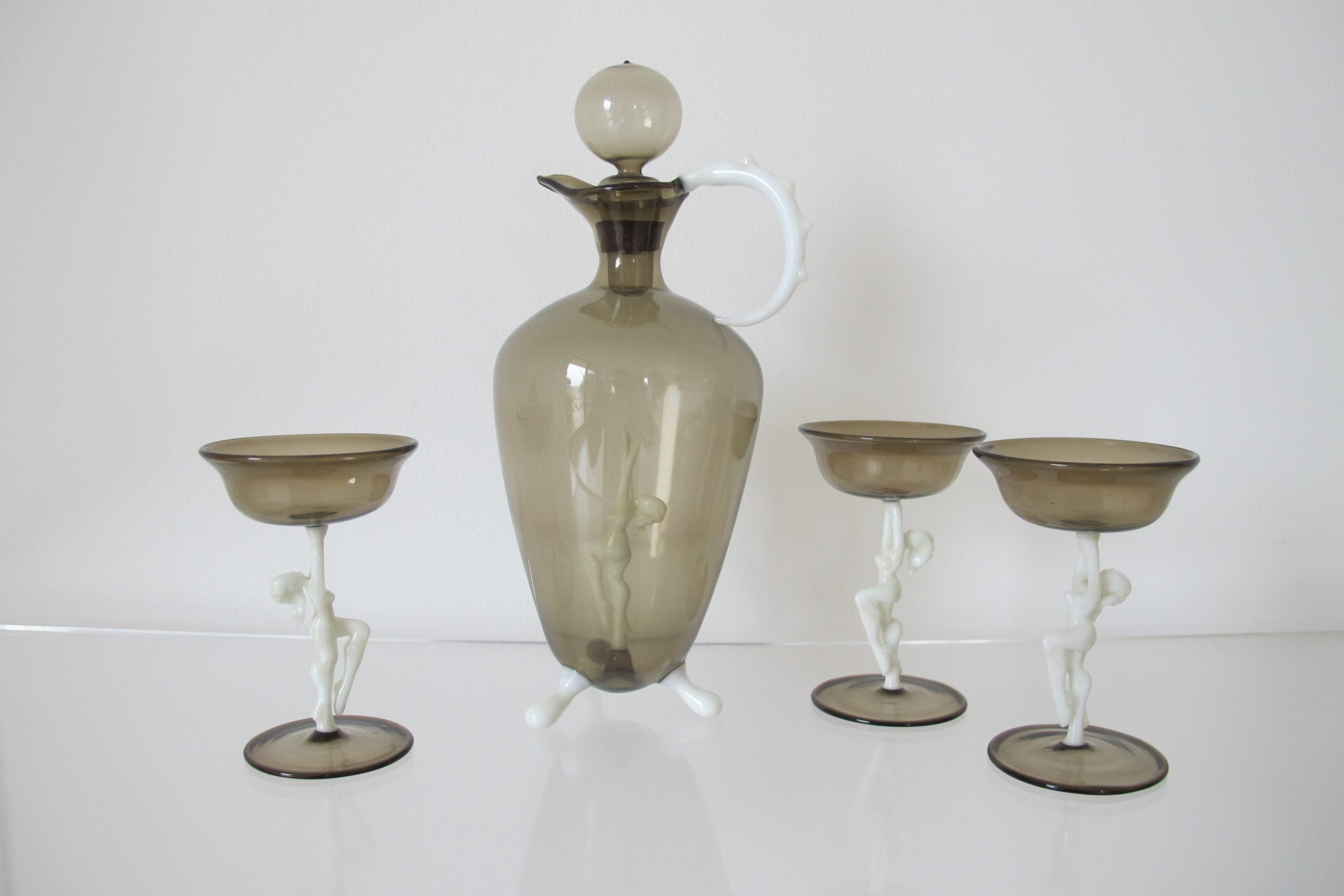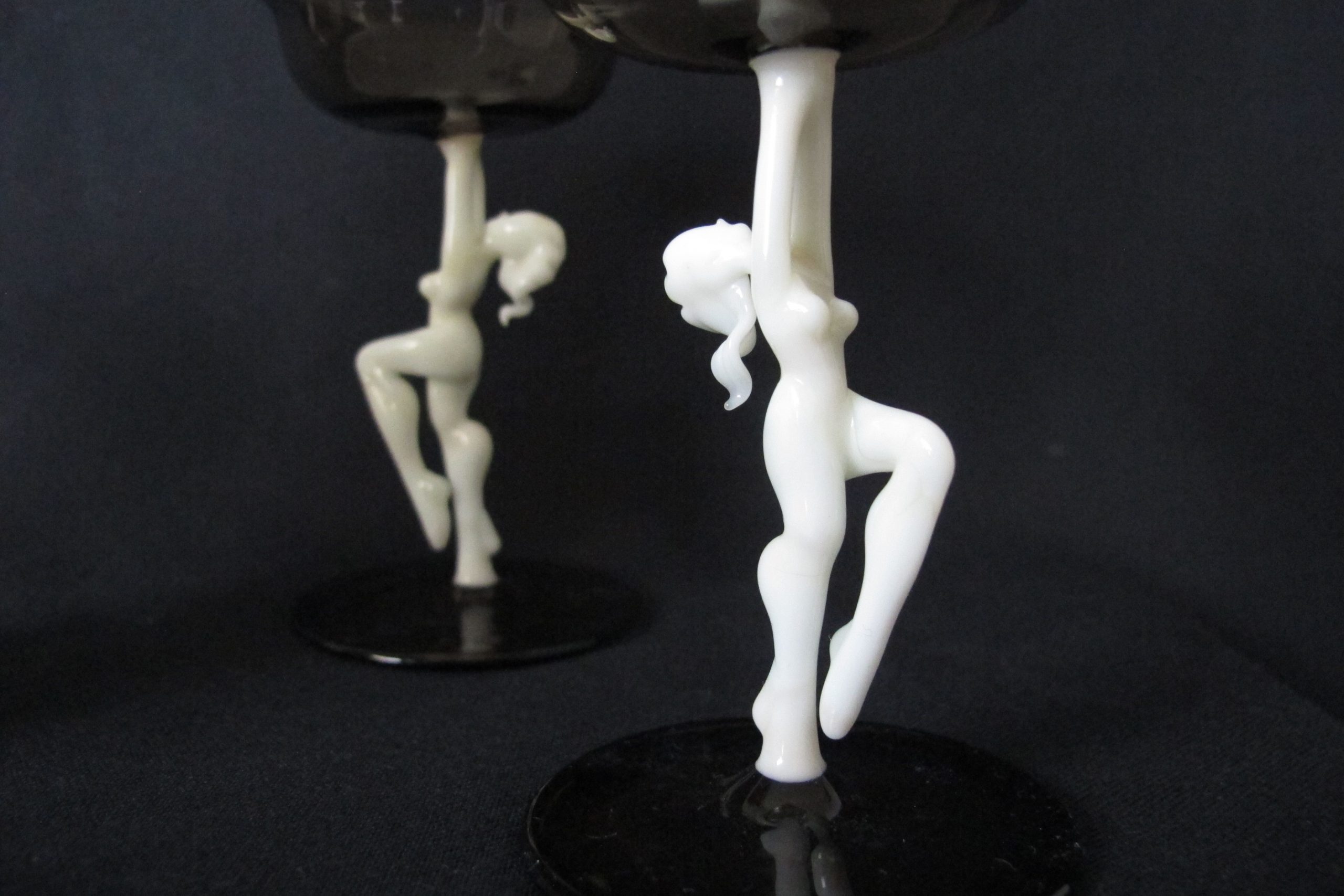 Bimini glass and the nude dancing ladies in particular have become highly collectable. Bimini is included in Judith Miller’s Collector’s Guide entitled, 20th Century Glass. A set of dancing ladies is showcased in her book virtually identical to these. Bimini is rarely seen in Australia and I would predict it is about 40 times rarer here compared to Europe (and in Europe it’s rarely seen).