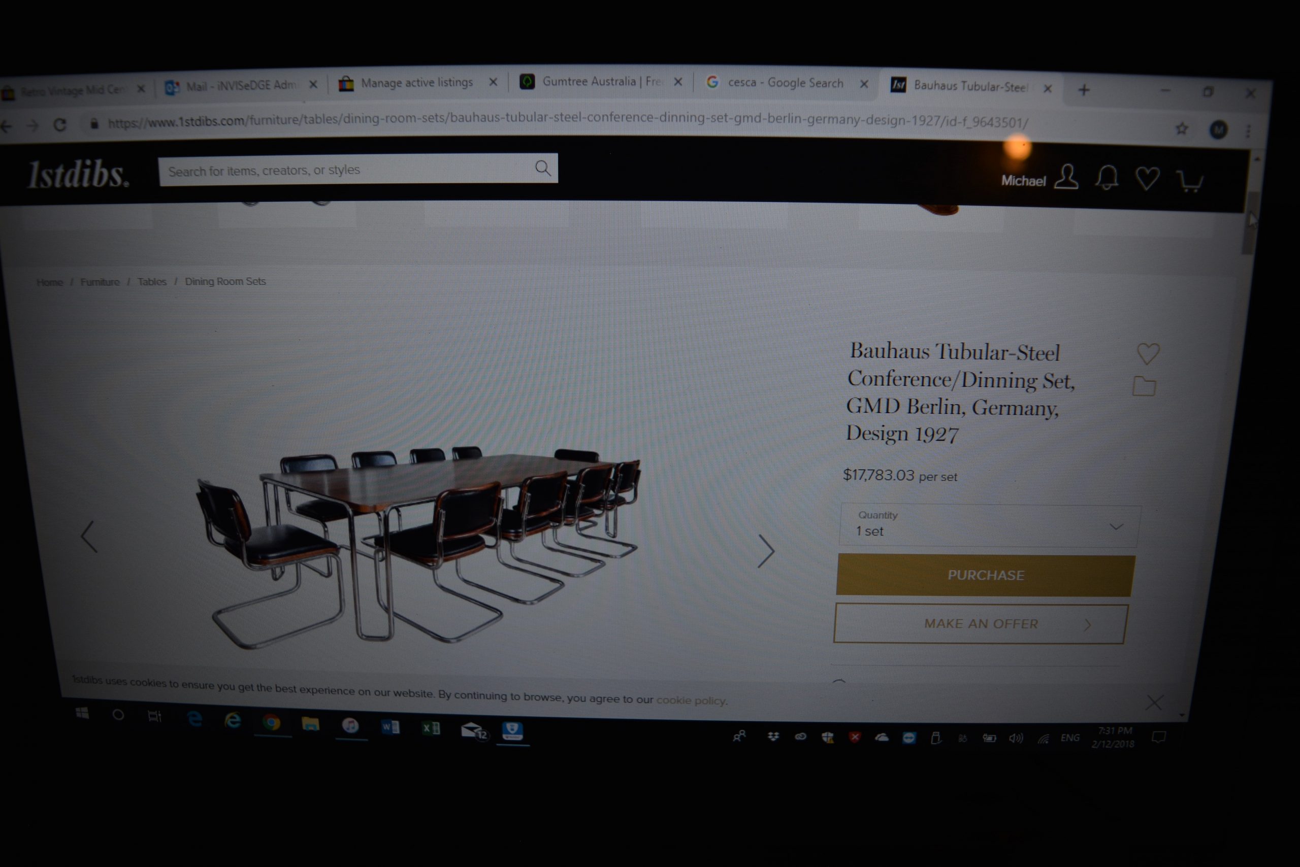 A RARE set of 6 cantilever Cesca chairs imprinted with MADE IN ITALY in the timber underneath every chair. This design was created by Marcel Breuer, a leader of the Bauhaus movement, in 1928. It’s hard to believe the design is now almost 100 years old. They wouldn’t look out of place on the showroom floor of any furniture store today- that’s timelessness for you! The chairs on offer here are ORIGINALS produced under license by Knoll in the 1970’s as verified by the imprint under every chair. (Like all iconic designs there are replicas around- though I’ve only seen the copies with cane inserts.) The authentic Knoll Cesca chairs have Made in Italy imprinted under the chairs (or the chairs from the 1980’s onwards have white Made In Italy labels on them). Knoll is based in Pennsylvania, USA but the Cesca chairs have been produced in Italy for several decades and they’re still produced for Knoll in Italy today. They retail new for US $5808 for a set of 6 upholstered in Ultrasuede- see the screenshot provided. (AU $7893). There are various 2nd-hand sets currently listed on 1stdbis for around AU $3800 for a set of 6 but some sets are priced at much more than that. This set is upholstered in Ultrasuede from the 1970’s- this colour is no longer produced but would look great in many spaces.