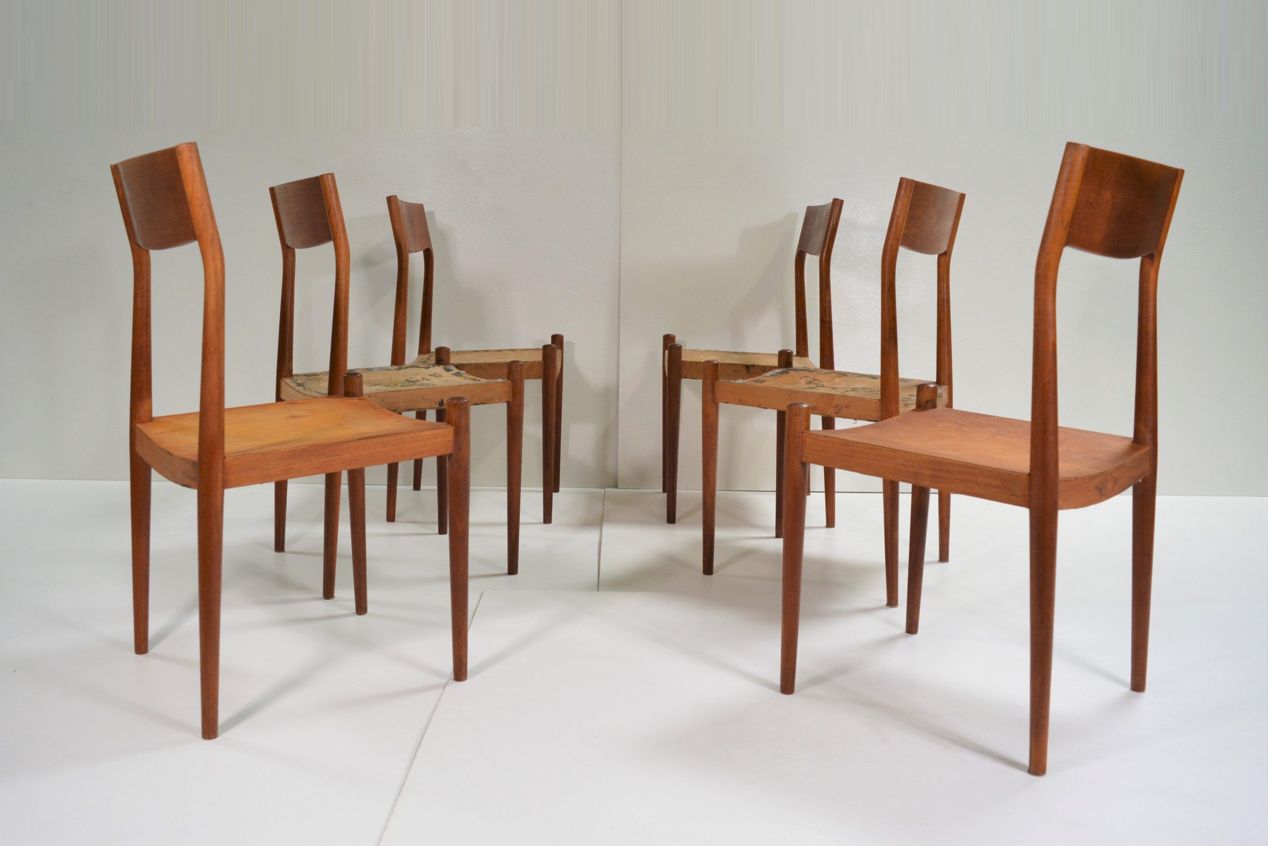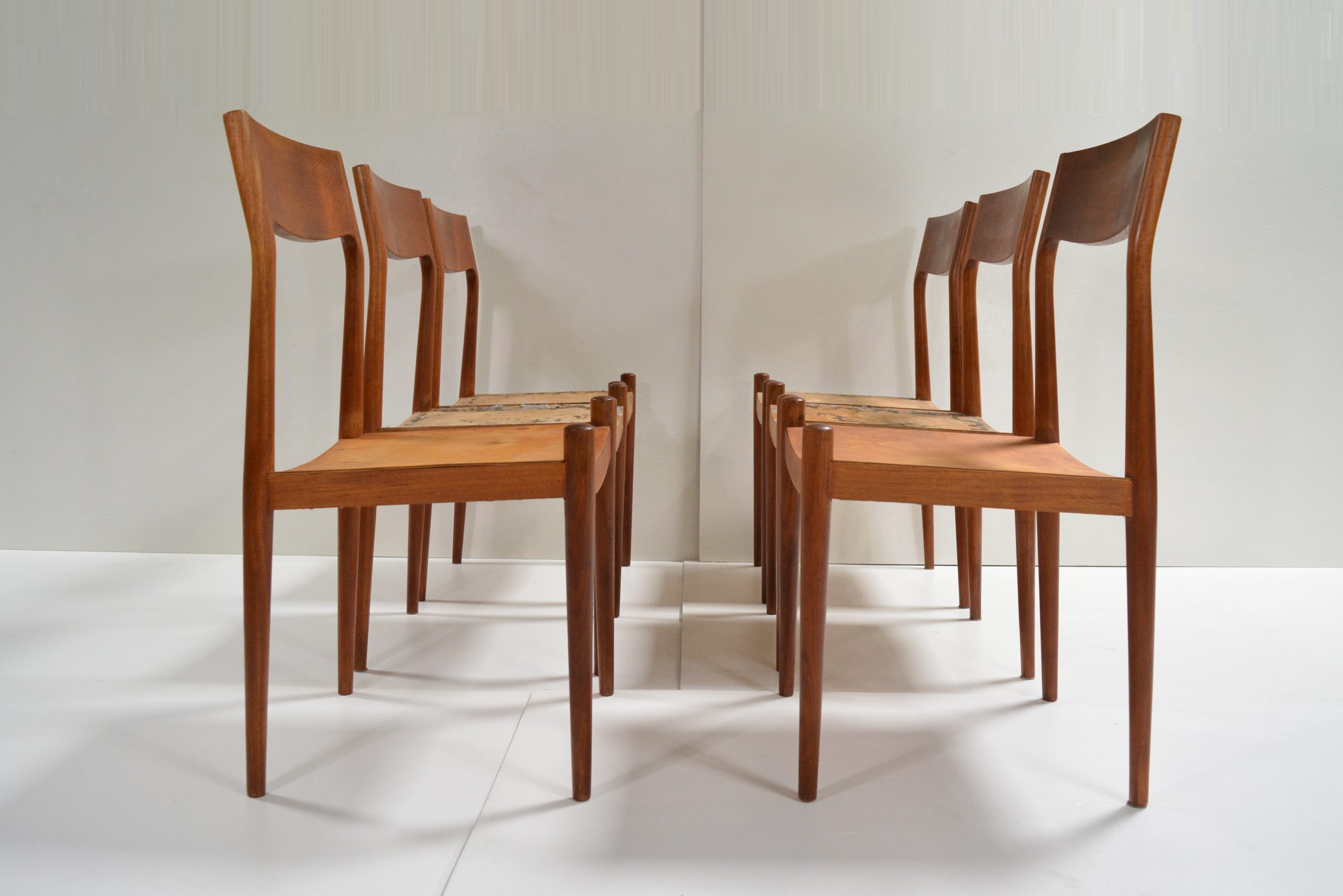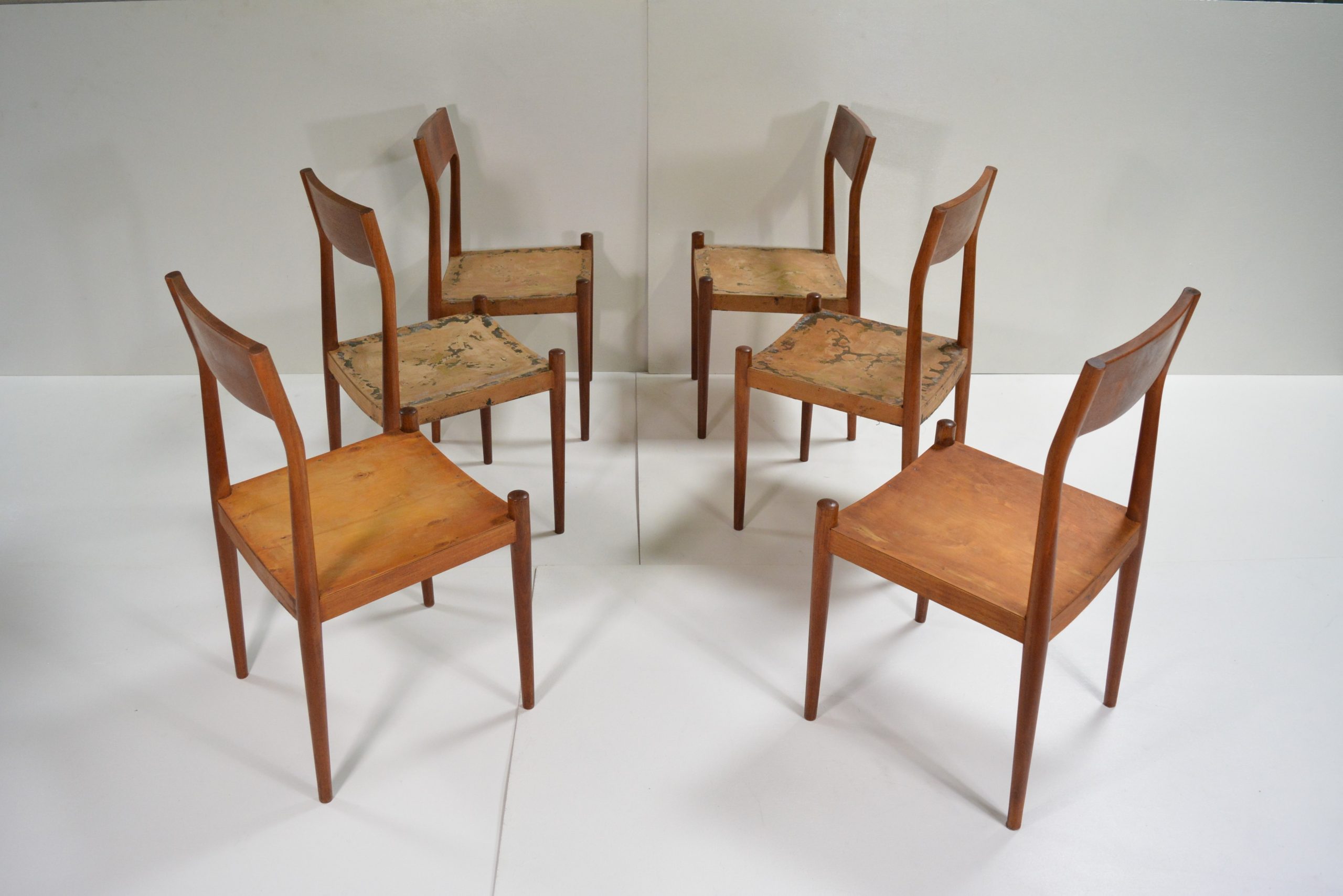 A set of SIX sculptural dining chairs with Danish styling. This set was made by hand- I believe in the early 1960’s. They are likely to be European (most likely Danish) or could possibly be Summertone (Melbourne- very early 60’s) before they became Moderntone. They are similar to the Niels Moller design released in the 1960’s (that sell for over AU $2000 PER CHAIR!). These are certainly vintage, extremely well made and all BY HAND.