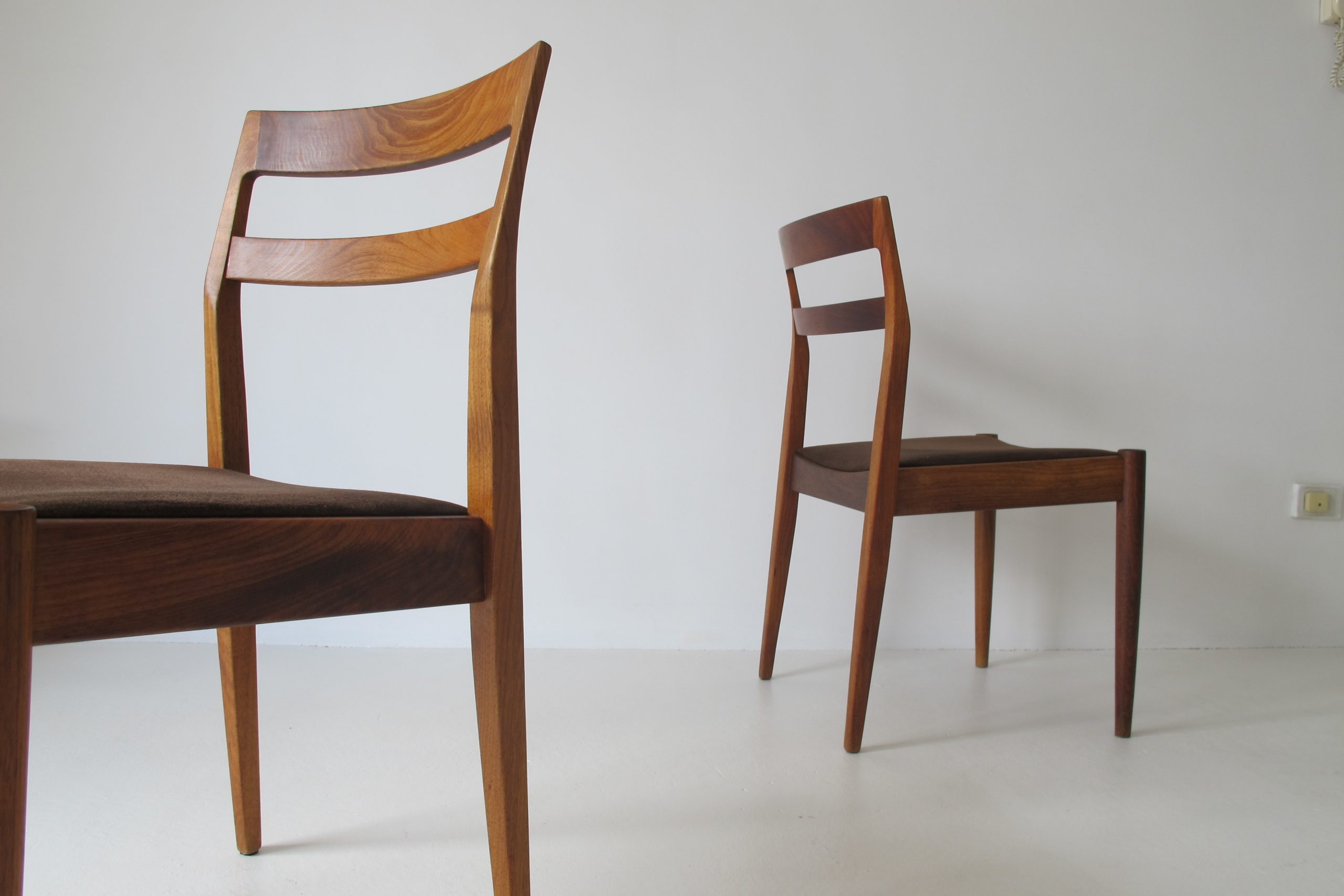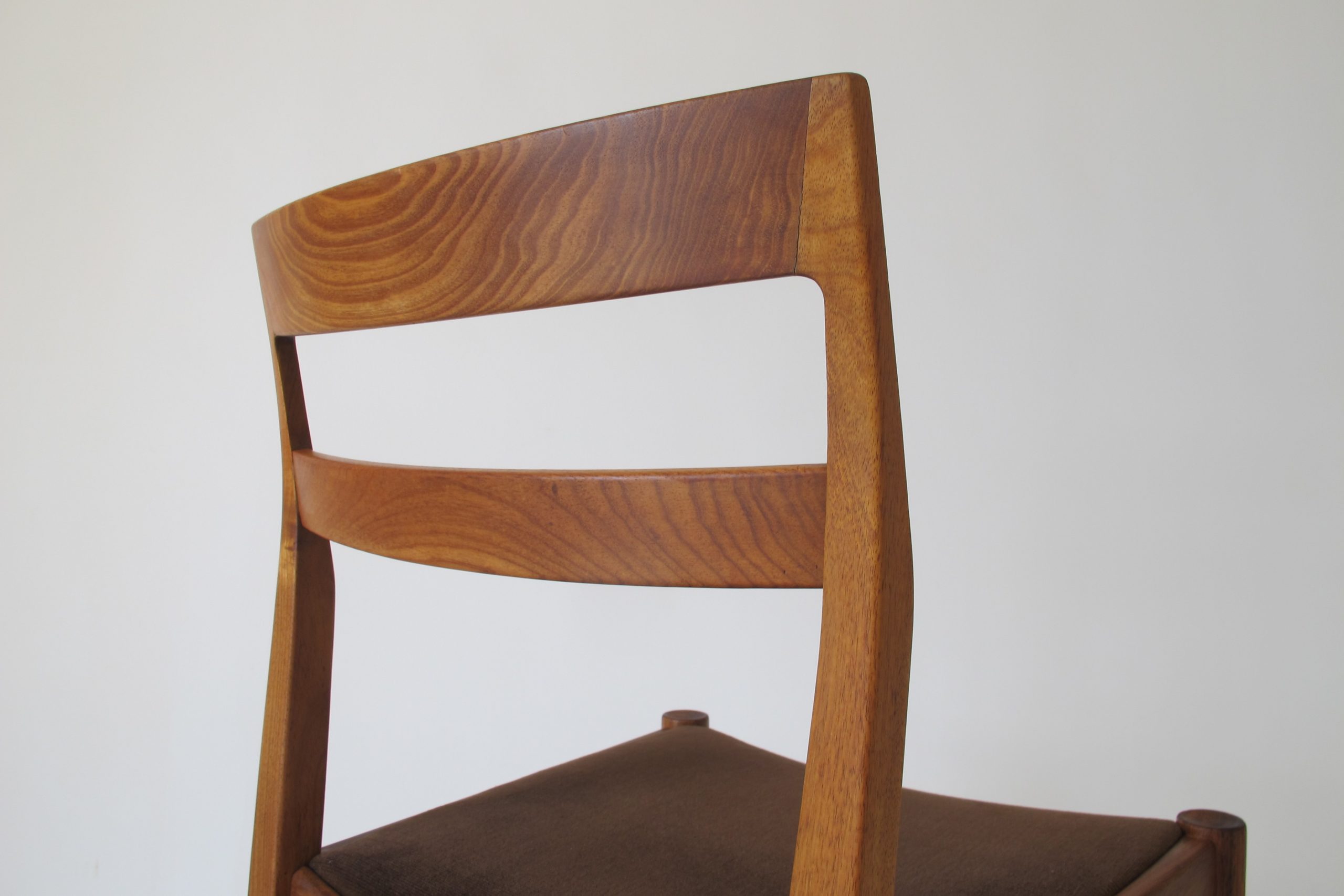These chairs have everything going for them. They’re comfortable, extremely well-made, durable, they look brilliant and have great investment appeal. I love how the maker has thoughtfully placed the cuts of timber. The back-rests have stunning figuring in the timber grain. The back-rests are also a solid timber pieces (a variety of chairs in this style have veneer backs). This is just one aspect that verifies the durability and quality of the construction. After 50 years every chair is solid and sturdy- no joint has any movement which sounds incredible but when they’ve been made properly this is the result. Each corner has been expertly crafted to lock together perfectly. It’s such a simple thing but takes a lot of work to do well and this is why it’s rarely done in furniture anymore.