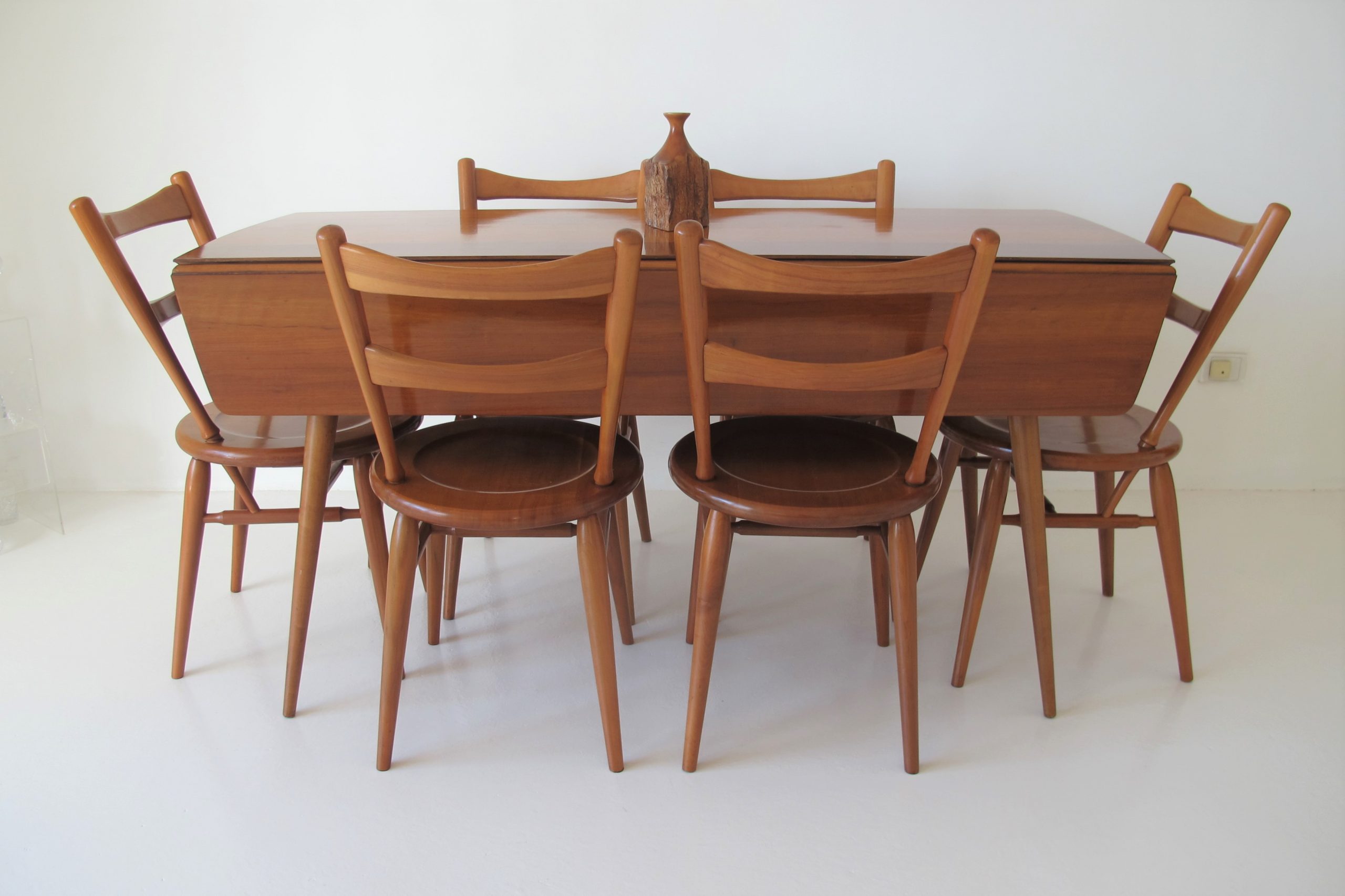 These chairs tick every box as far as dining chairs go. The design is stunning. The chairs are of the highest quality- every joint is rock solid after nearly 60 years of use. The chairs are comfortable- the curve, height and angle of the back have been very carefully considered for comfort. This is a practical chair- they’re easy to keep clean and looking great- ideal for young families. This suite also has very solid investment appeal- for a museum-quality suite this price is a steal and in the future it should at least retain its value. You’ll never get that buying new, certainly not in this price-range anyway.