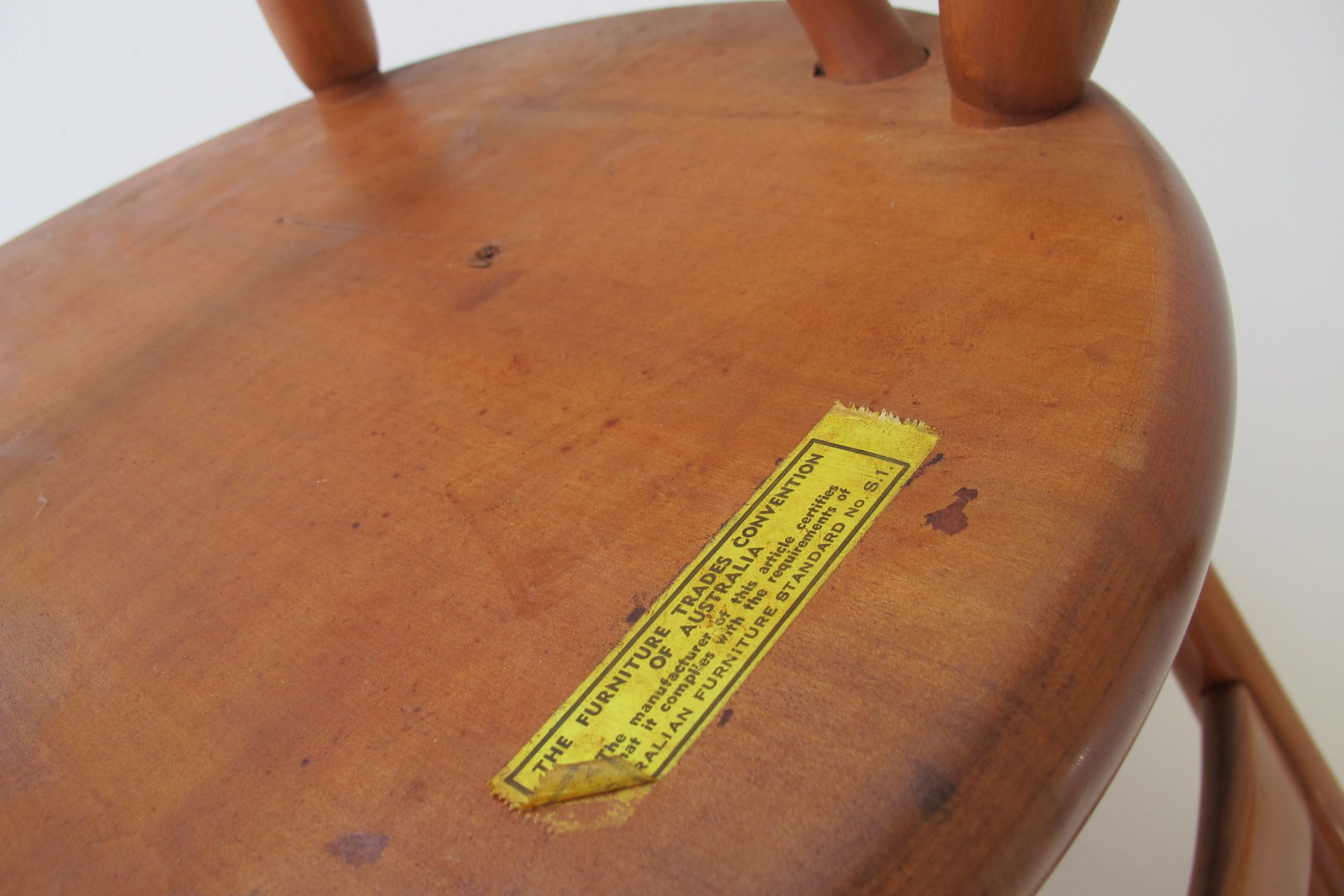 An intriguing set of SIX (6) dining chairs designed by Fred Ward in Melbourne in the late 1950’s. As far as I know these chairs were part of the Myer Heritage range sold in Myer stores in the 1950’s. The suite is certainly 50’s and was definitely sold in Myer. I’m pretty sure the timber is Mrytle. This was a high-end suite in its day and still gets attention today. I use the word intriguing above because of the design. The section under the seat is reminiscent of the Eiffel Tower bases by Eames but overall the design also has a strong Japanese mid-century influence. What I love about these chairs is that Ward took different design aesthetics of the time and melded them into his own. This design is unique and one you won’t see again in a hurry, if ever.