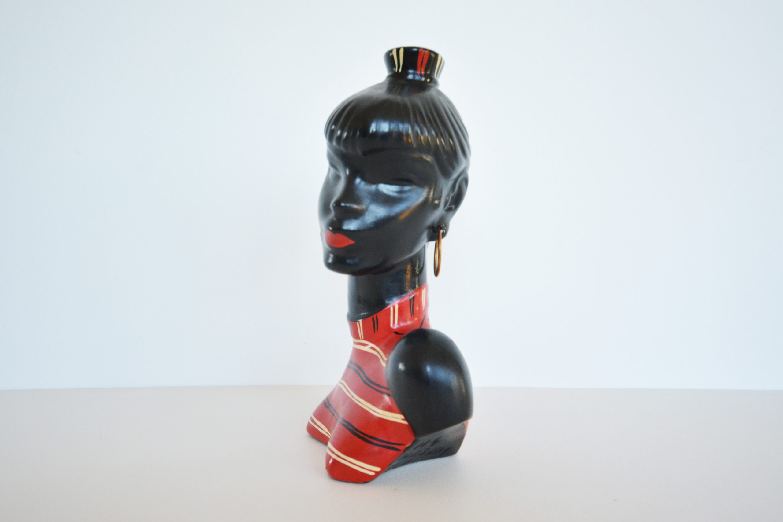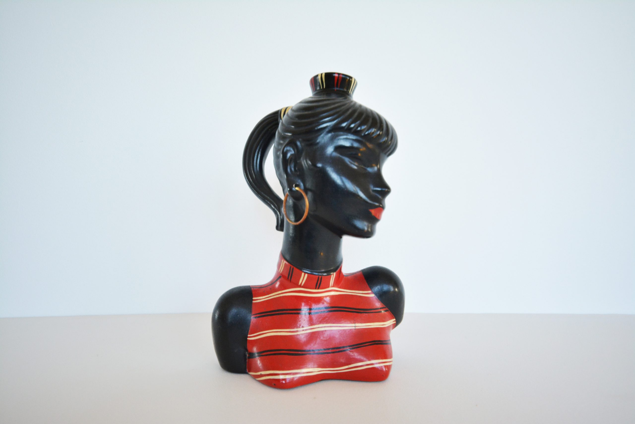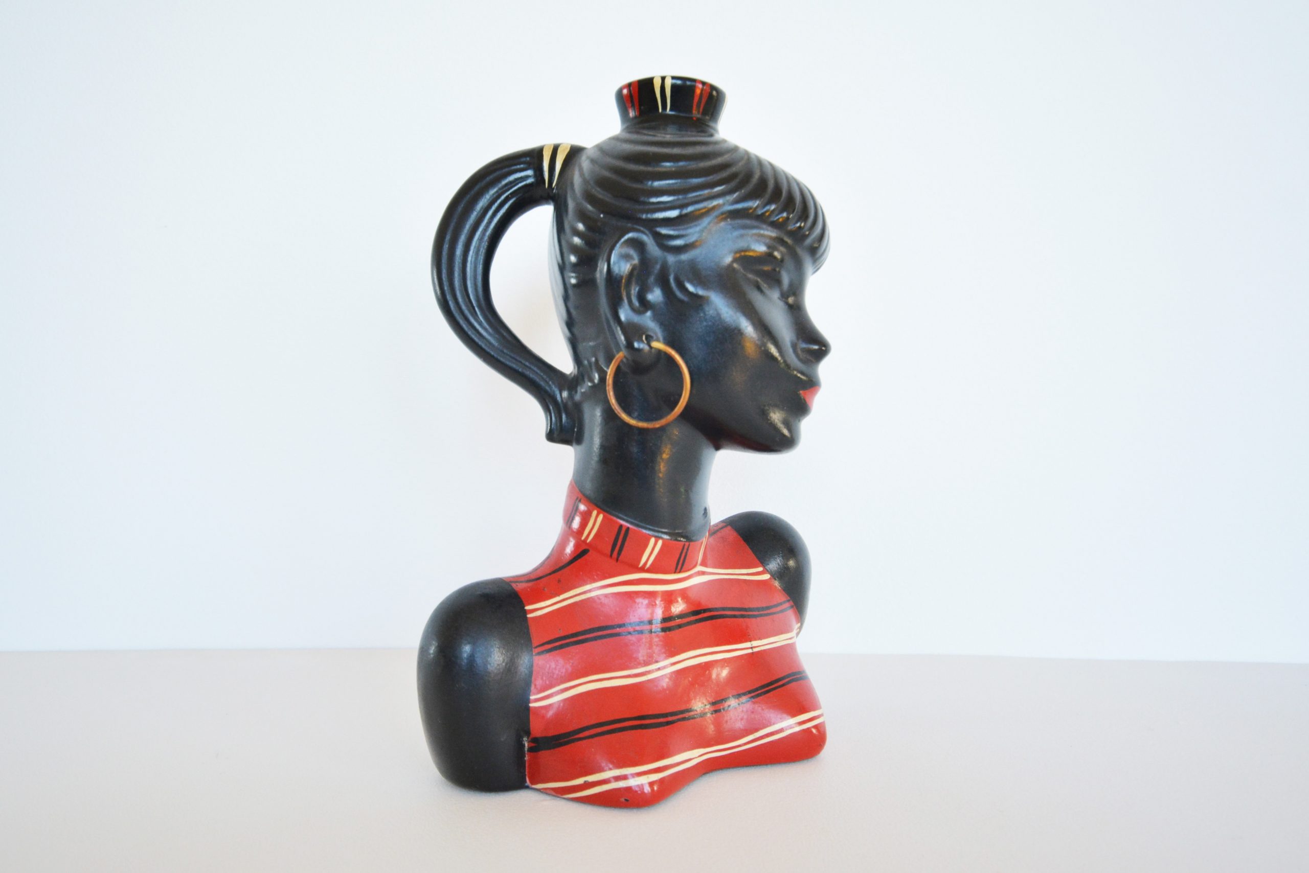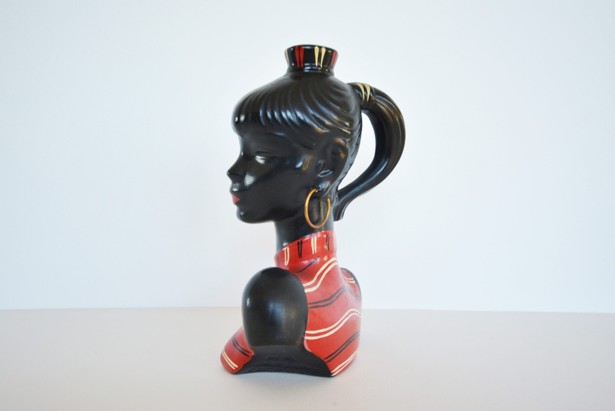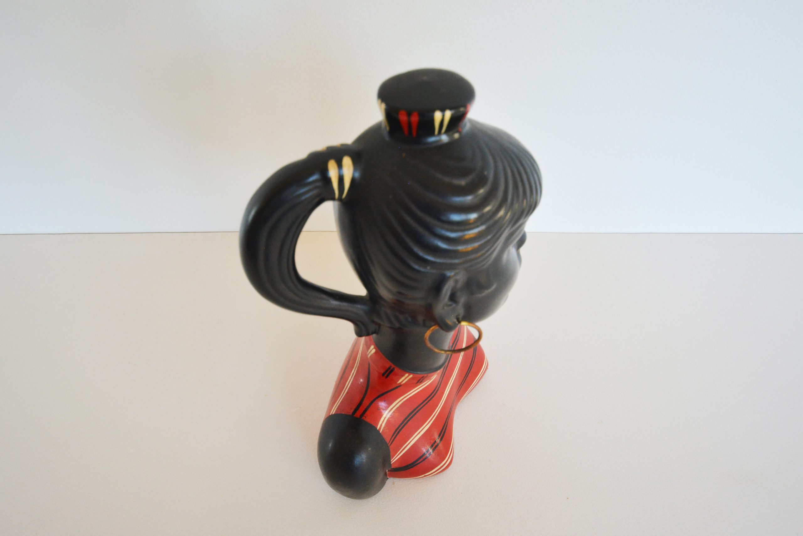 Barsony products became so popular in the 1950’s and 60’s that the factory in Guildford, Western Sydney operated 24 hours a day to satisfy demand. Barsony ceramics became unfashionable in the late-70’s and 1980’s when Chinese-made items started to flood the Australian market. Most vintage pieces at this time were seen as being “daggy” and “for poor people”. Many people thought of items such as Barsony pieces as junk and threw them out. Numbers have diminished over the years. Around 2002, fashions changed and vintage pieces slowly started to become more sought-after. Kitsch items became cool in the early noughties- Barsony black lady lamps started to feature in the upmarket vintage shops in our Capital cities. At around 2003 black lady lamps in good condition were being sold for around $300. Since COVID all things vintage reached a height of popularity never before experienced. Today in 2022, vintage pieces made in Australia have become extremely sought after and hotly contested when they come onto the market. Barsony ceramics have become amongst the most highly-prized vintage decorative arts pieces in Australia. Good examples are now consistently fetching over $1200 each- I’ve seen many bid up in auction to over $1500 (written 2022).
