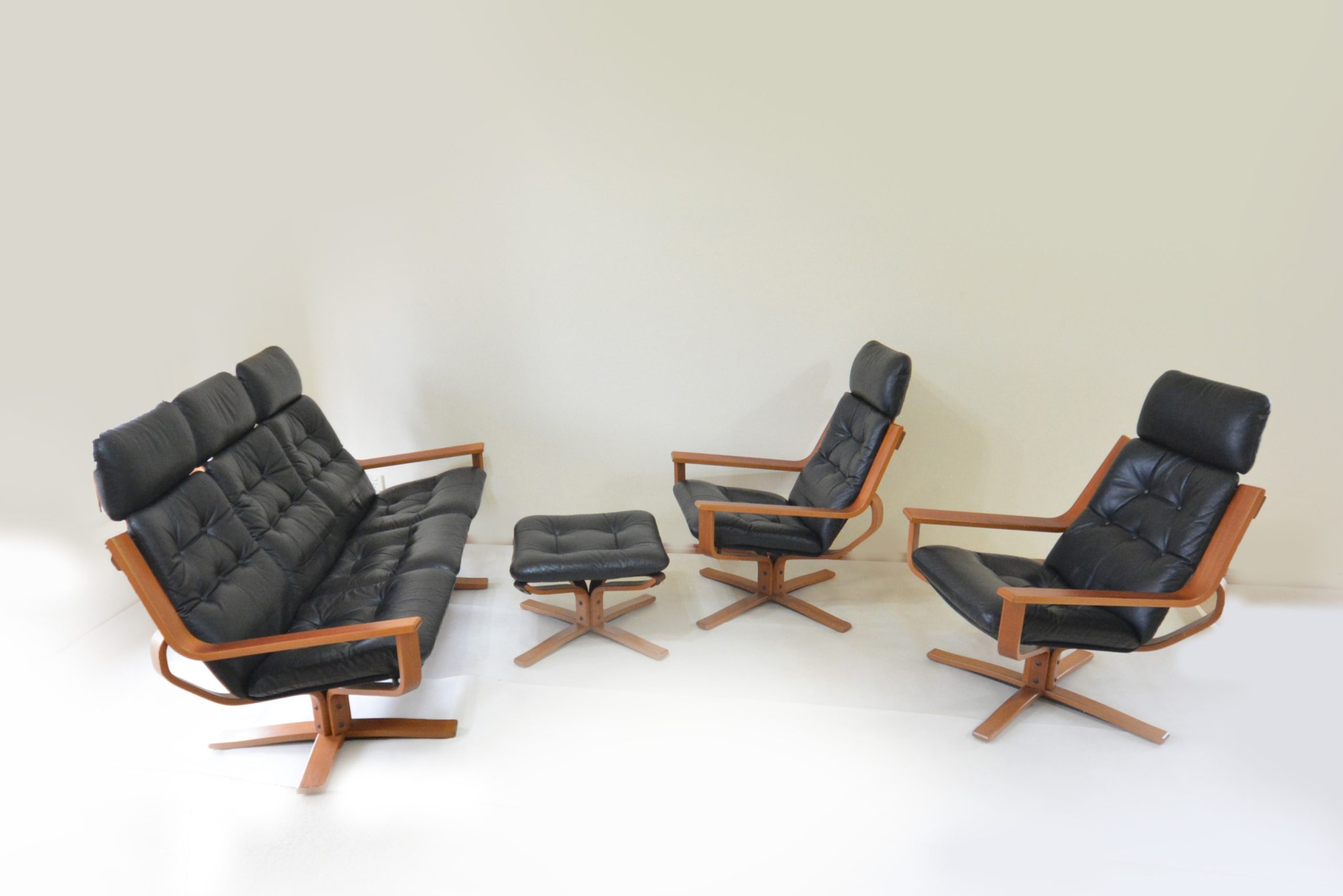 Offers over $2,600 for the 3-seater sofa. Offers over $2,000 per swivel chair. Offers over $7,100 for the full 4-PIECE suite in quality FULL-GRAIN HOWE leather from the late-1970’s- this is some of the best leather money can buy. Priority will be given to customers who would like to purchase the full suite. If you have interest in this suite (or any part of it), now is the time to call. We haven’t had a full Rufenacht lounge suite since 2022- that suite sold in the first 3 days it was listed. These suites are really hard to get and much coveted. Plus this particular suite is in incredible condition for it’s age. (circa late-1970’s).