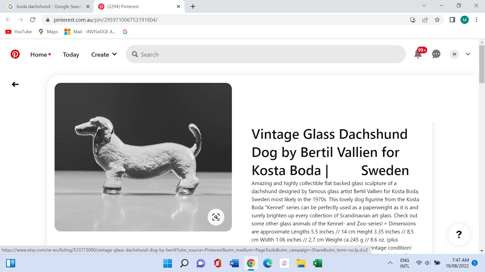 Price- $99 for ONE Boda dachshund (14cm long) only. If you have interest in any of the others in the Boda Kennel / Dog Series SMS me- prices vary depending on rarity. To buy, SMS or call the phone number provided in our CONTACT page.