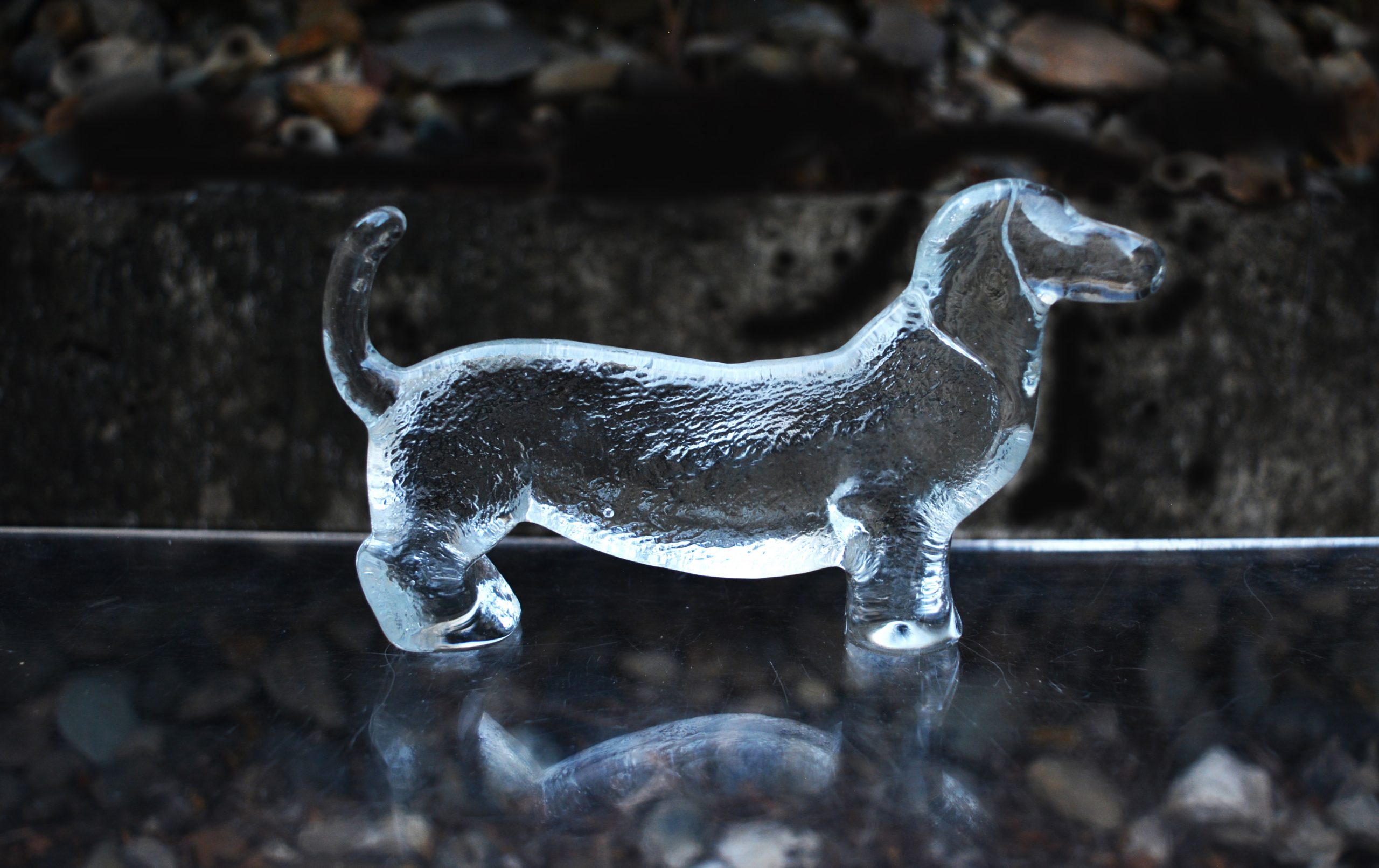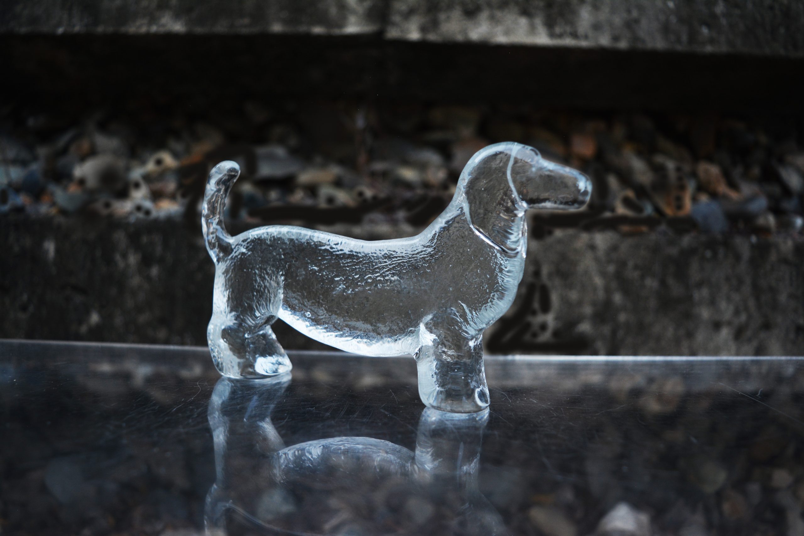ONE Kosta Boda dachshund measuring 14cm in length. This piece would make the perfect gift for that crazy dachshund lover! This figure is part of the Kosta Boda Kennel or Dog series. Technically this is a Boda piece because the Kennel series was produced before Kosta Boda merged in 1976. It is my understanding these were made in the early-1970’s. I’ve got several dogs in my own Kennel series collection that have a “Boda- Handmade in Sweden” foil label- the label that was used in the early-1970’s. (The dachshund in this listing does NOT have a label- nearly all of them don’t).