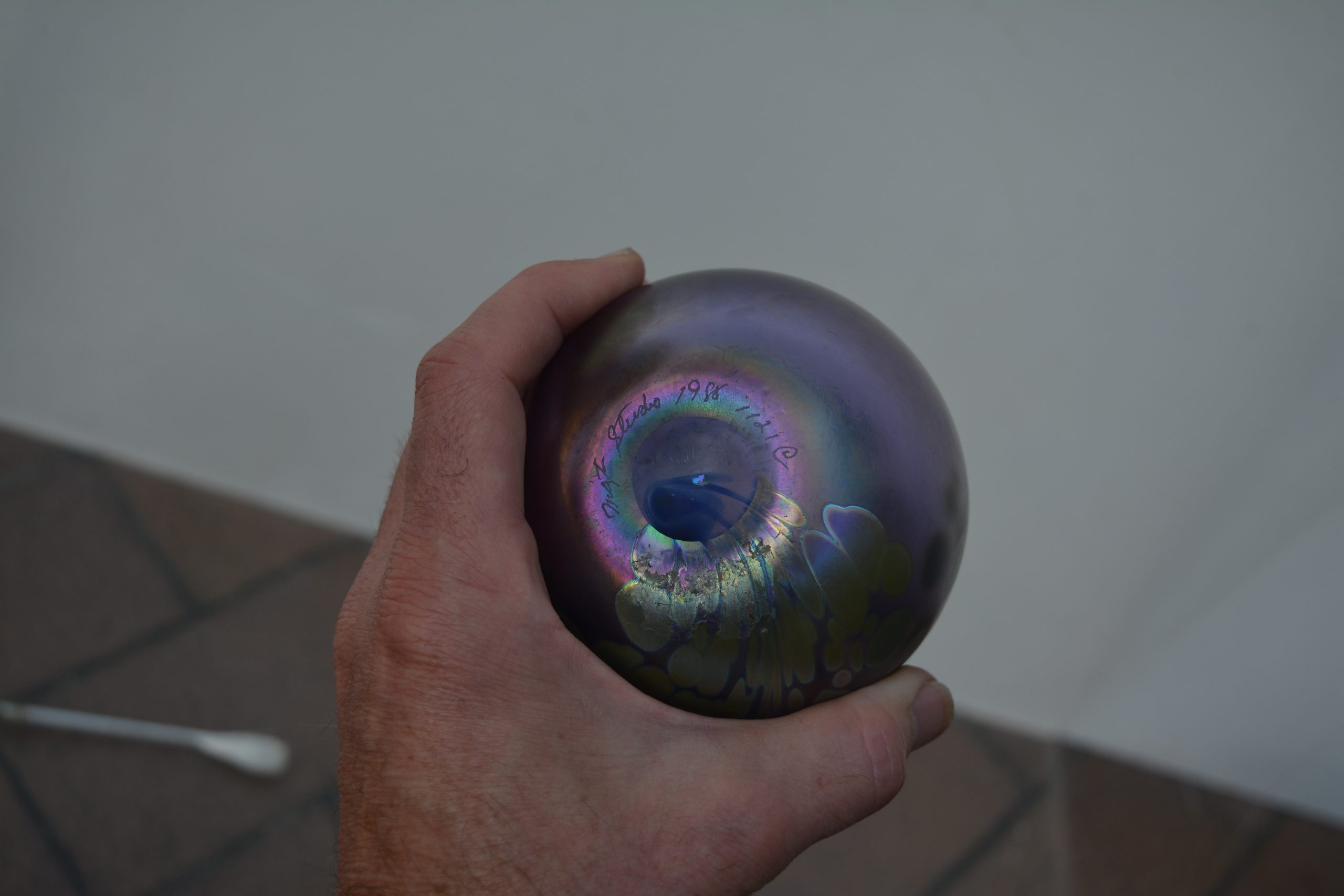 If this piece had been by Colin Heaney I’d be asking about double for it (because it’s quite large for an iridescent piece). Brian’s pieces are also hand-made and offer something outside of what has been done in Australian glass.