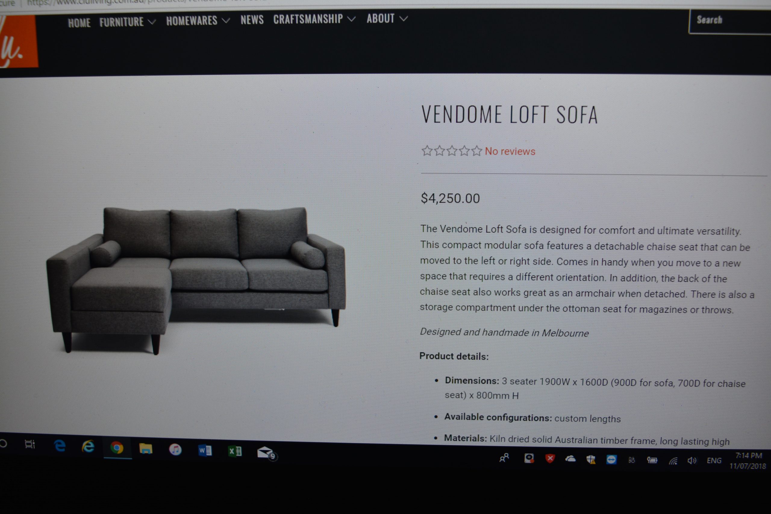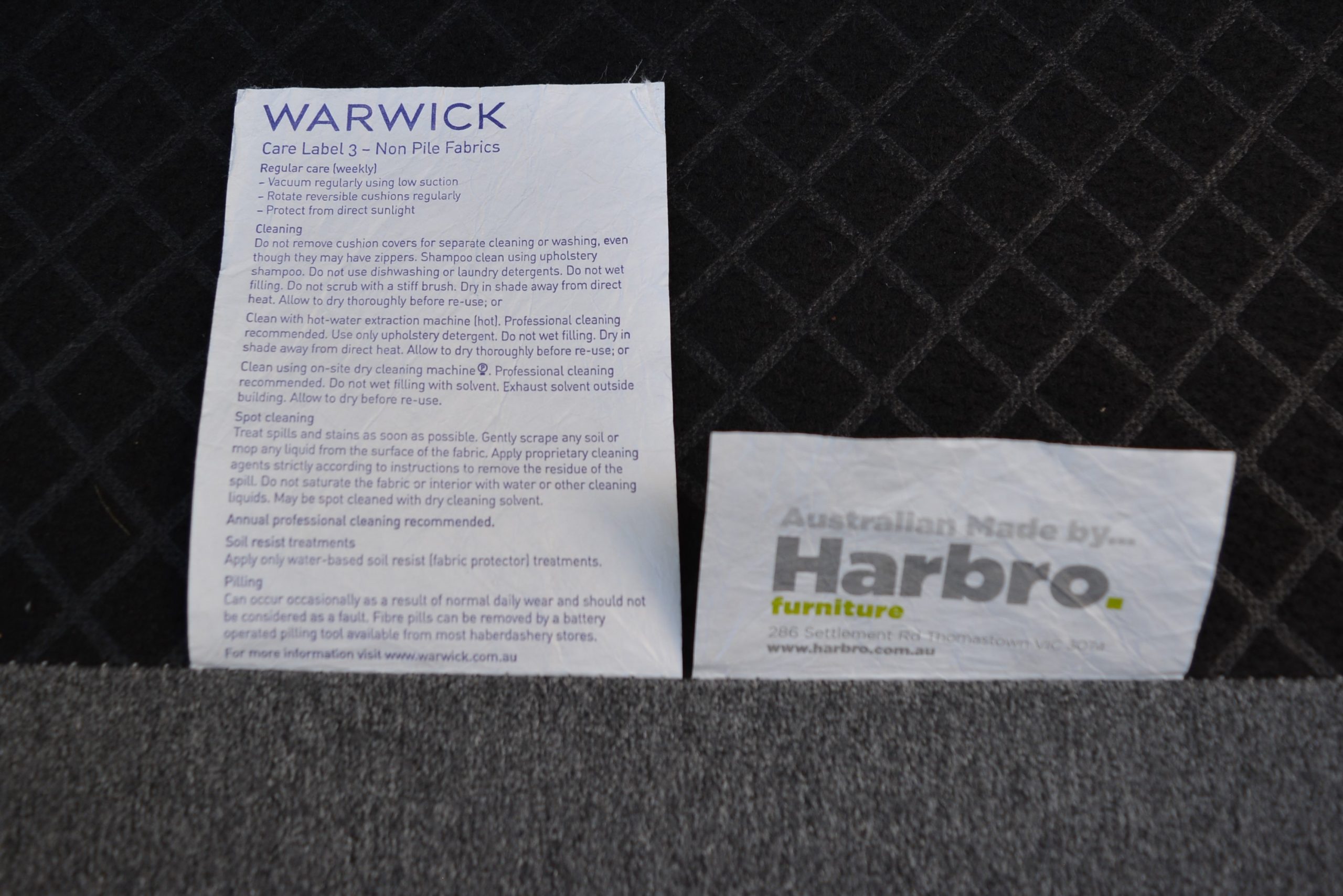 The Vendome Loft Sofa is HAND-CRAFTED IN AUSTRALIA- the frame built from kiln-dried SOLID Australian timber- no chipboard under the upholstery here! The cushioning is QUALITY, long-lasting high-density foam that’s both supportive and plush. The upholstery is from Australian company, Warwick Fabrics with a guarantee for quality and durability. You’re paying for peace of mind here- from knowing that your sofa is going to last, is environmentally-friendly and hasn’t exploited workers in developing countries to produce it. There are NO greenhouse emissions to freight this furniture from overseas. I also love that because NO packaging was needed for freight. Tons of Styrofoam, PLASTIC wrapping, foam peanuts and bubble-wrap end up as landfill (and in our oceans) each year from furniture coming into Australia from developing countries. This sofa went straight from the Melbourne factory to the initial buyer in Melbourne (wrapped in thick removalist blankets only). The original buyer had to move overseas for work and after LESS THAN 6 months of use we bought this suite from him and got it sent up here to iNVISeDGE in Brisbane (our Melbourne depot was full at the time) again wrapped in thick removalist blankets.