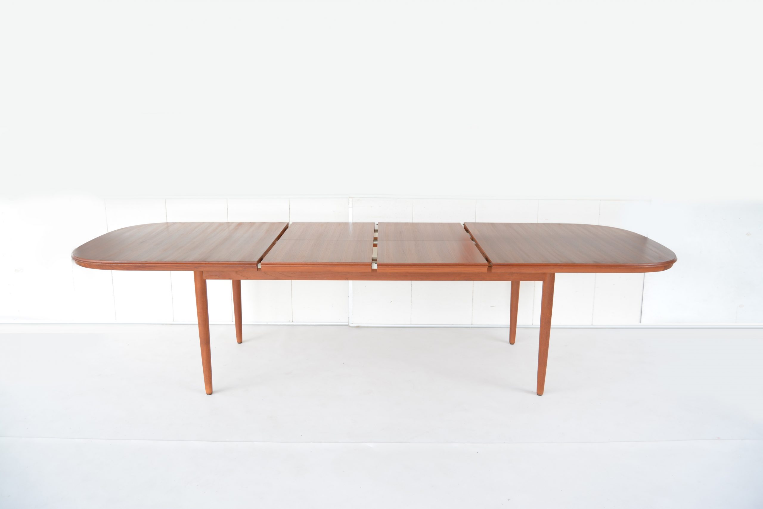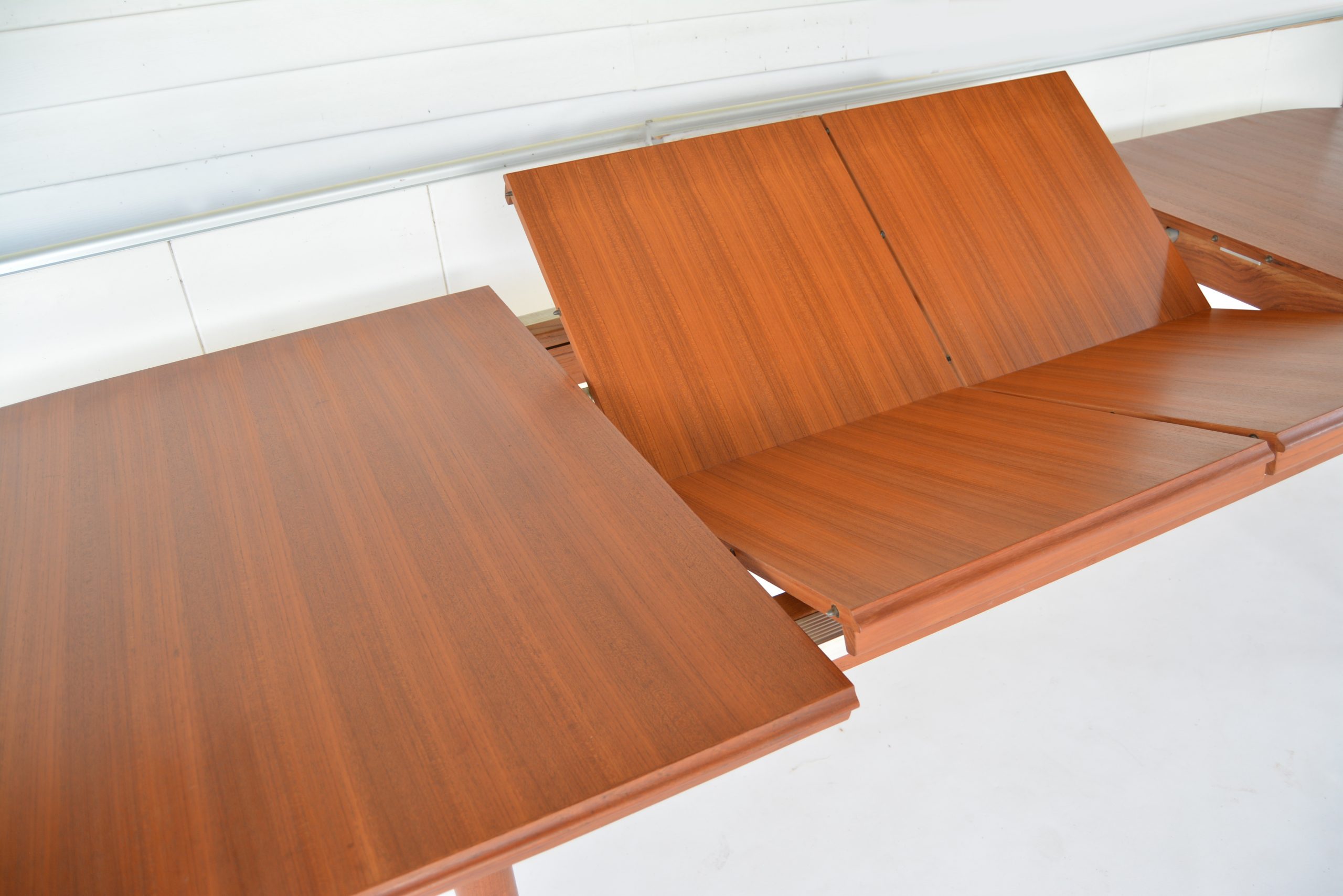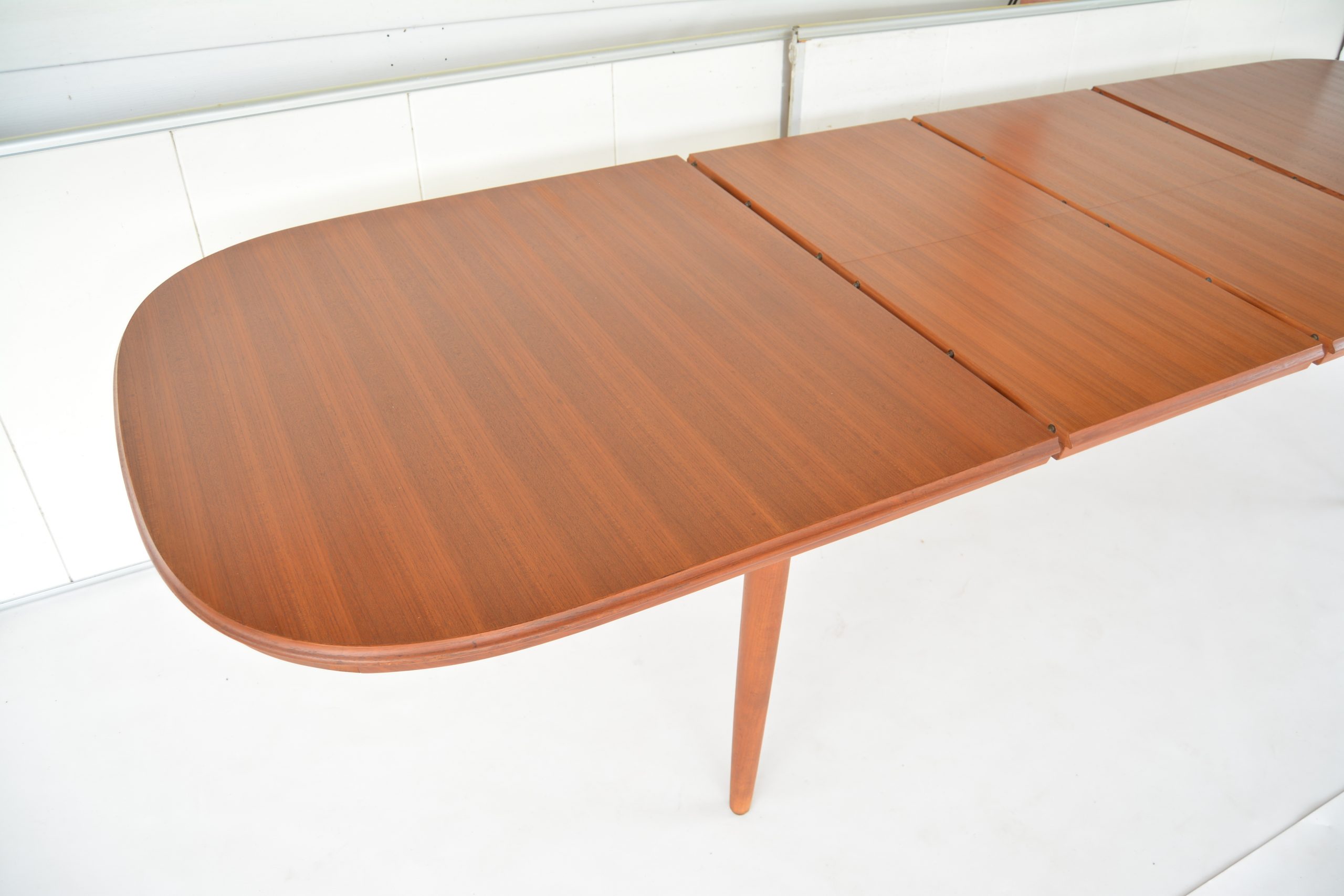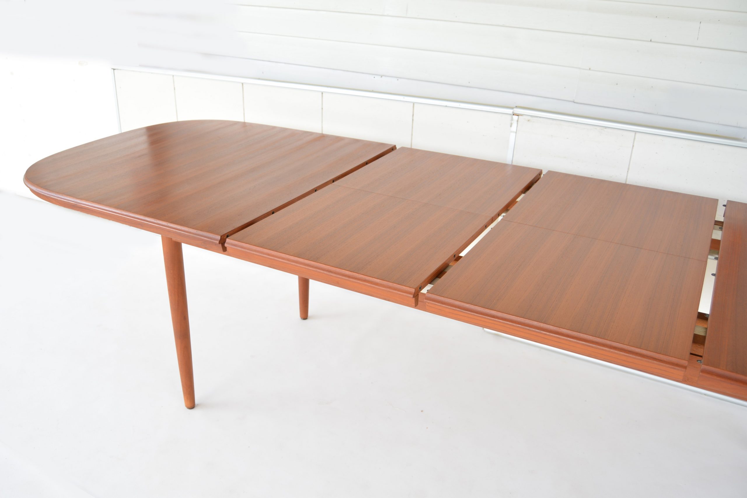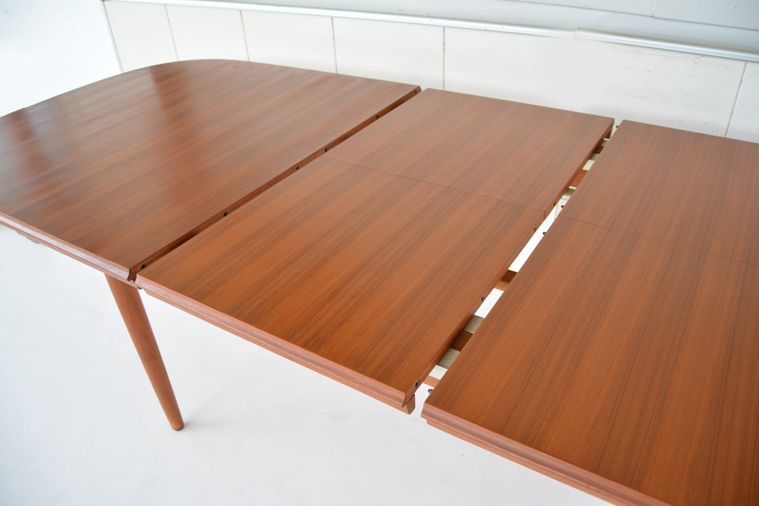 Clever in design, this table has THREE size options- an individual extension piece can be added to seat 8 comfortably or BOTH pieces extend the table to seat 10 (or 12 if you’re happy to get close to your guests!). Tables in this Danish style above 2.4m long are as rare as hen’s teeth. With 10 vintage chairs tables like this look incredible and is a sight not often seen.