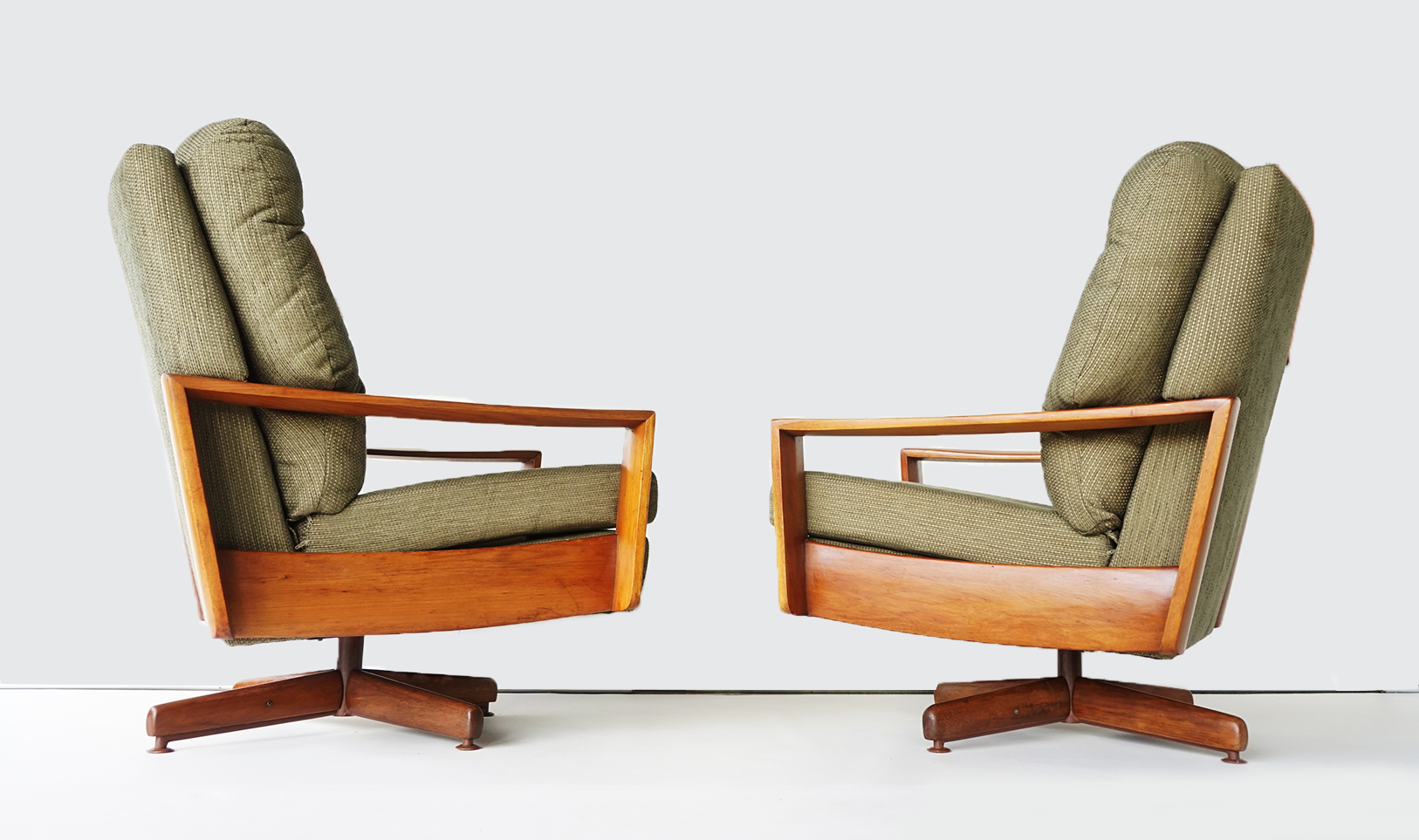 Tessa T21 swivel chairs are arguably the most sought-after chairs to ever come out of Australia. The Contour range by Grant Featherston is probably the most collectable in terms of dollar-value, but the T21 swivel chair, is the most asked-for chair in iNVISeDGE. The Flerena design here is not asked for as much as the Tessa T21 only because there are VERY few around which means they’re virtually unknown. This 60’s design has all the hallmarks of the Tessa T21. It’s TIMELESS design but is vintage. These chairs are about 55 YEARS OLD (!) which means you have FULL ASSURANCE of the quality you’re getting before you fork out a cent. Just look at this suite after all these years!