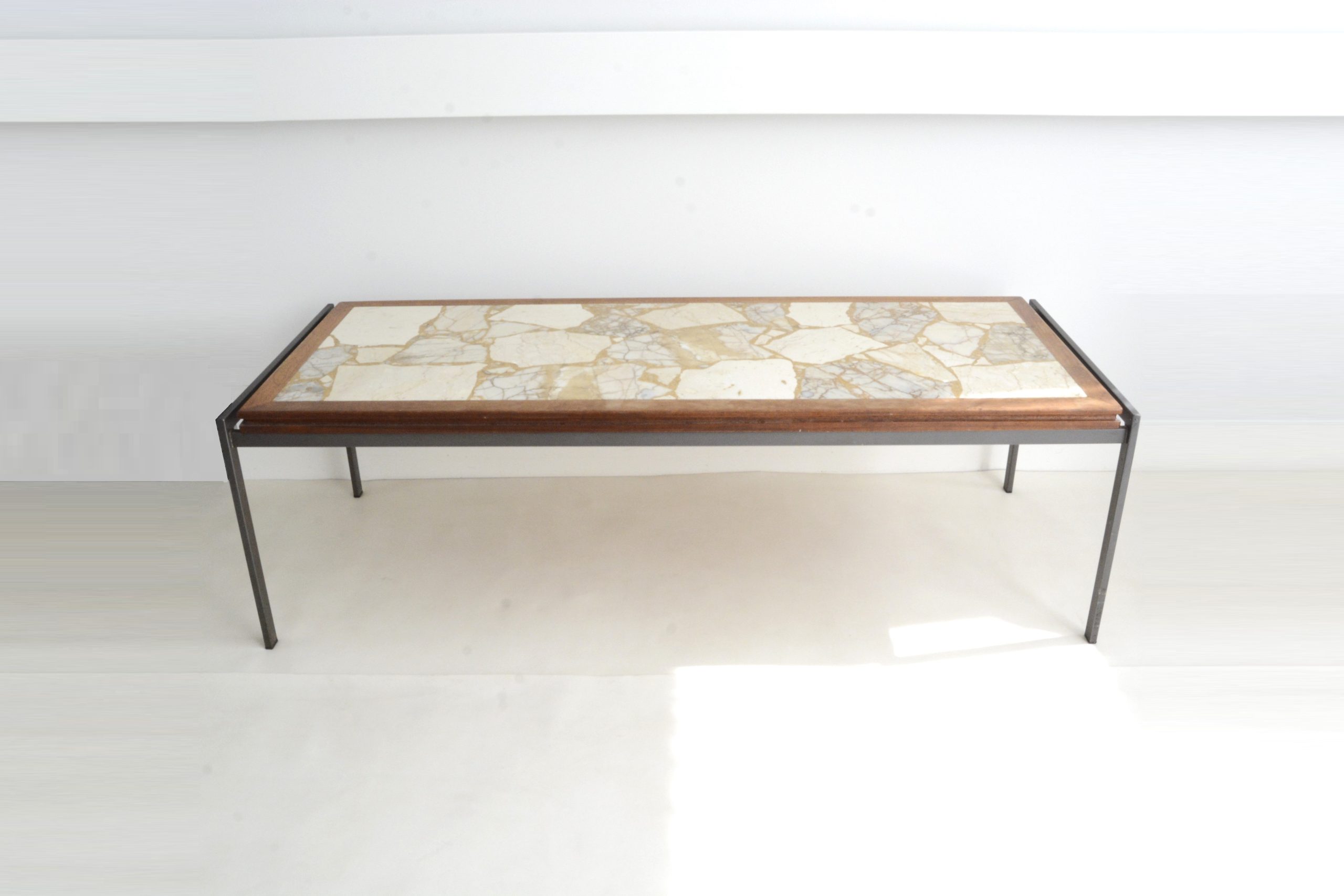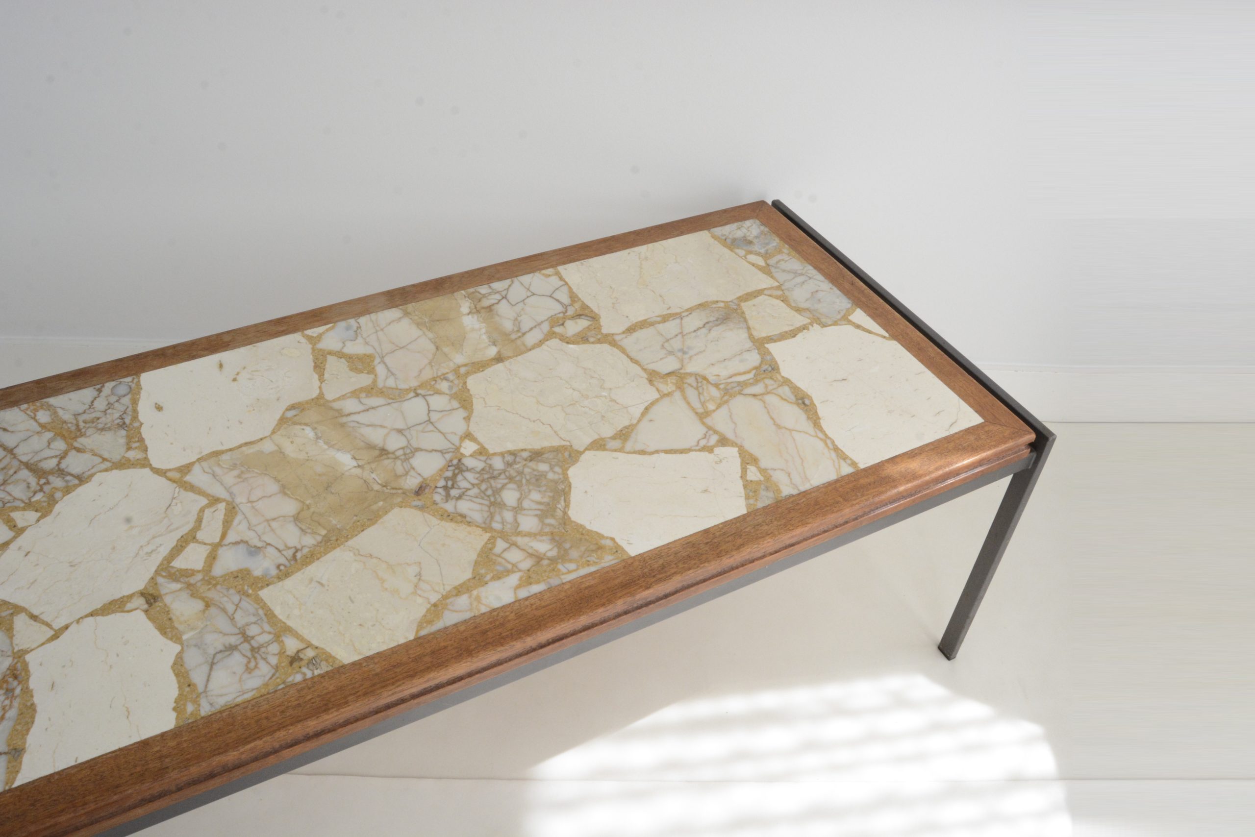 Timeless good looks, RARITY, hours of workmanship ALL DONE BY HAND and DURABILITY- the perfect combination; this makes these tables a really smart investment. Over the last 24 years I’ve been in this business I’ve seen these tables increase in value along with inflation for the entire time. They’re not easy to find and I’ve never come across one that’s been damaged in any way. This makes them a furniture INVESTMENT- not a purchase at all. It’s sleek and minimalist, but the earthy tones of the stone-top give it warmth and interest. This piece is about 60 years old but would look brilliant in any design interior of today especially one where the “clinical” look needs to be counteracted.