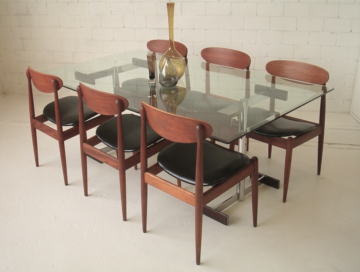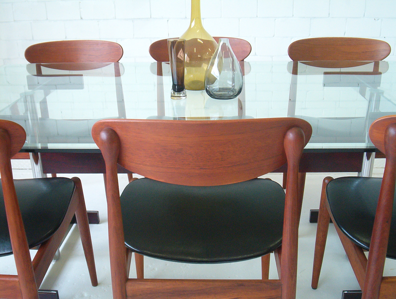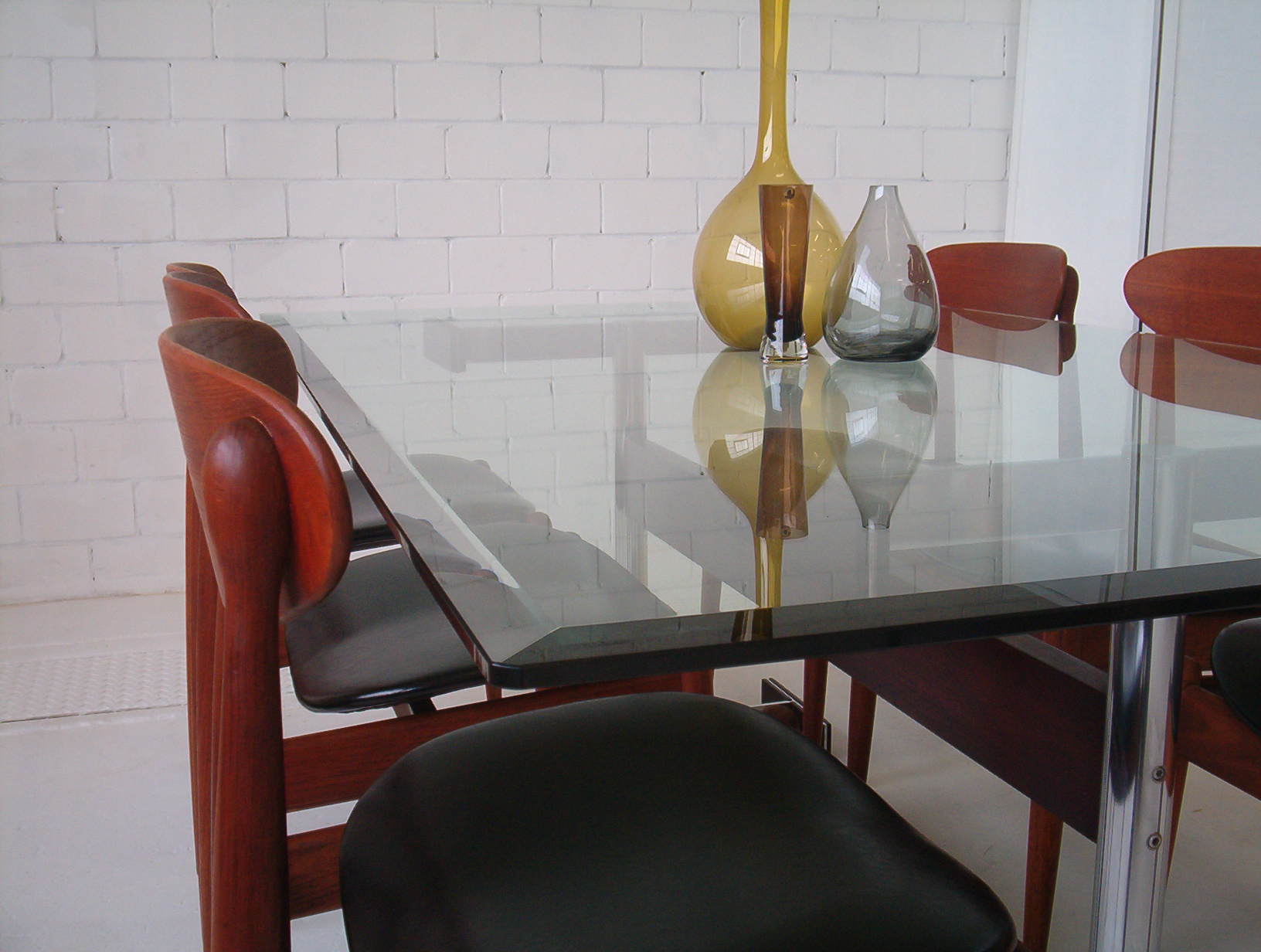 In 18 years of trading in this business I’ve never come across anything like this- the Danish design aesthetic on its own is a little too boring for my own personal taste (chairs in this style just seem to be everywhere now- there’s no personality in it)- but I love Parker spadeback chairs teamed with this designer table- this table gives the suite a glamorous edge … and the glass top is also much easier to look after. The bevelled edge on the glass top adds a stunning classy touch.