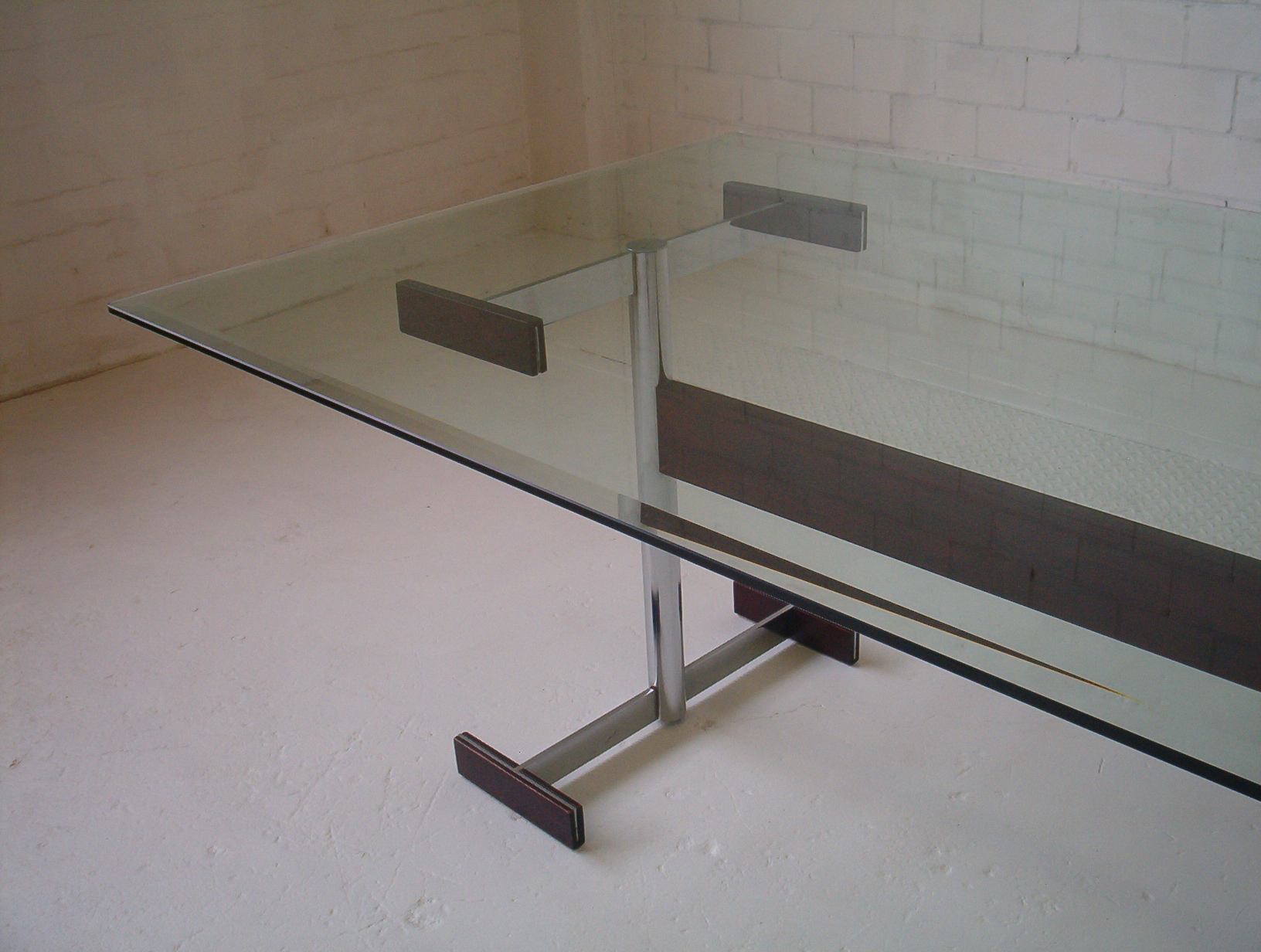 I can’t find the description I wrote for this table back in 2007. All I remember is that it was a German designer table (that’s what I was told at the time anyway) and it was vintage- late 1960’s or early 1970’s. It could possibly be a very rare Australian piece but that doesn’t make sense to me because I’ve only come across one in 18 years of trading (this one!). I have found out no more information about this table since I had it in 2007. It could well be worth more than this. This is a really adaptable piece because various designer chairs would marry with it perfectly- the rarity of it, coupled with it’s timeless sophistication gives the piece solid investment appeal.