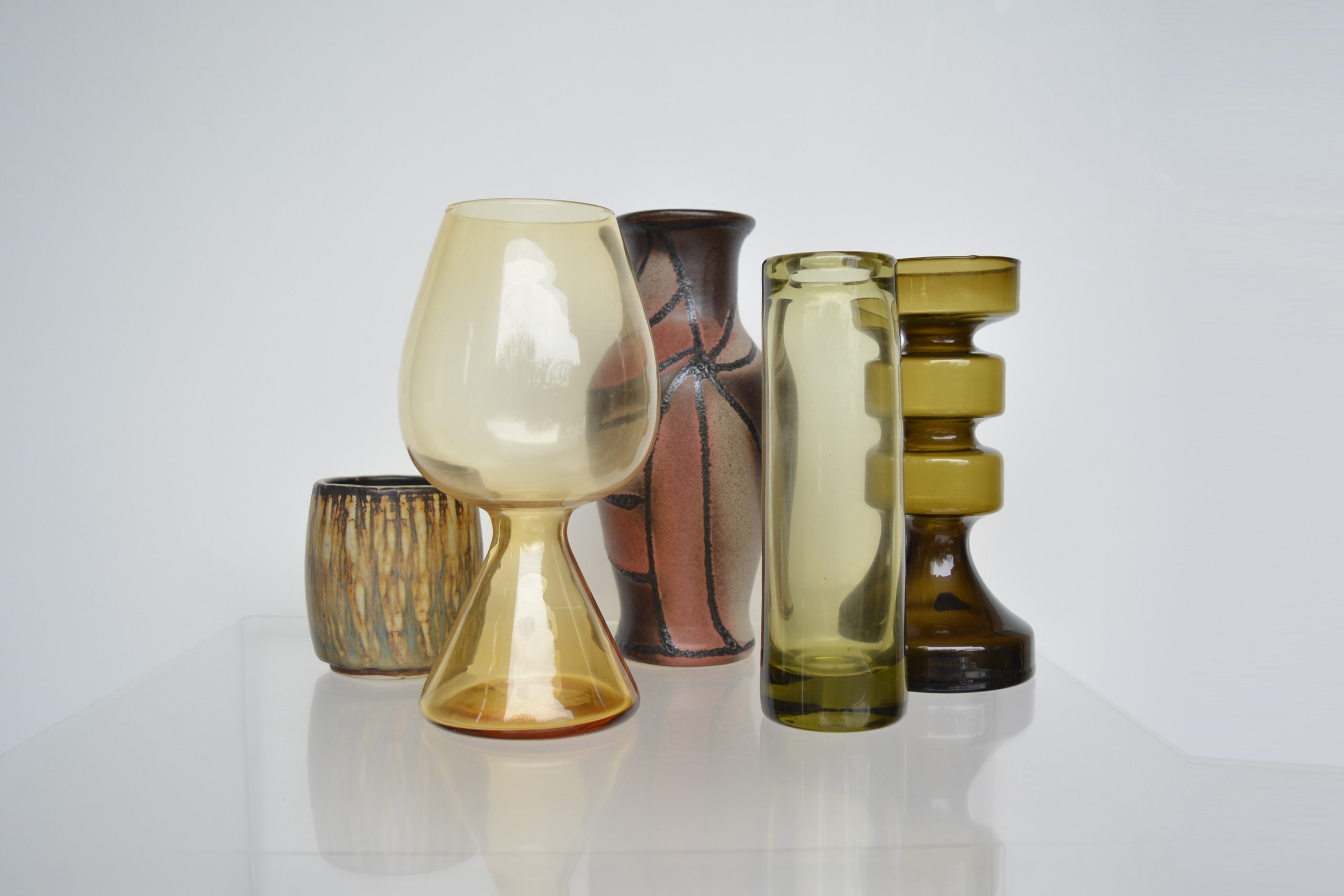 All of these pieces are in excellent vintage condition with no damage to report. The Holmegaard piece has very feint clouding as seen in the photo- this is not noticeable though. Read my 1200+ ebay feedback comments (ALL for VINTAGE furniture/decorative art SALES- 100 or so are from repeat customers). This is your guarantee that I strive to describe all my items as accurately as I can and I will not stock items unless they are in excellent condition.