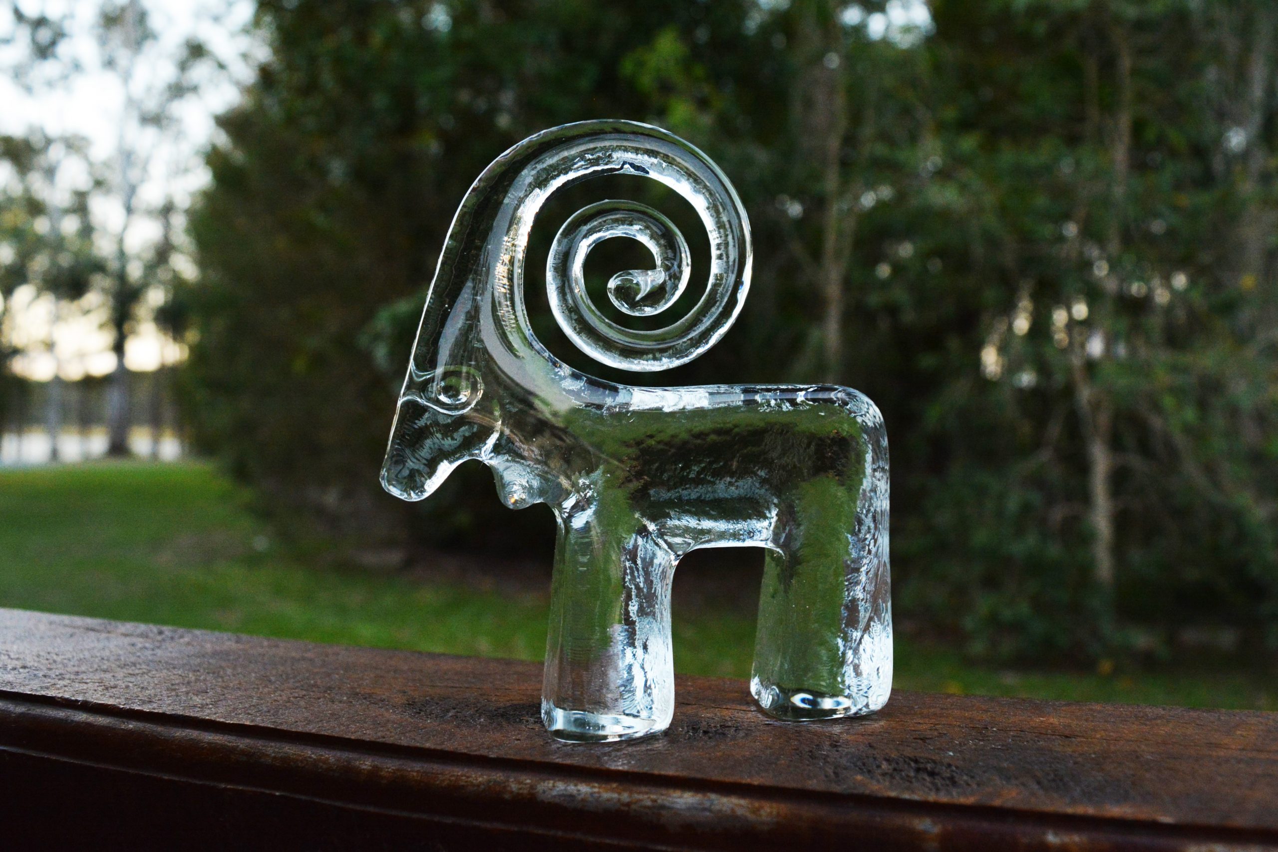 The Boda Curly-Horned Ibex / Ram is where my love affair for (Kosta) Boda zoo animals began. Back then I was dealing only in furniture but when decorative arts pieces really caught my eye I’d buy them (if I could afford them!). It was in a crowded auction centre in 2005 (back in the old Gavan Hardy Auction days in Sydney) and this ibex really stood out to me. I think there’s a magic in this design and still is for me to this day. (The one I found in 2005 is still part of my collection- it took me 17 years to come across another one to offer my customers- here it is.) Perhaps it’s the simplicity of this design that gives it its magic, the sparkly crystal … or the spiral itself- that magical form that has no beginning and no end. Whatever it is, this is my favourite of all the Kosta Boda zoo series. There are a couple of other animals that are rarer than this one but I like the design of this the best.
