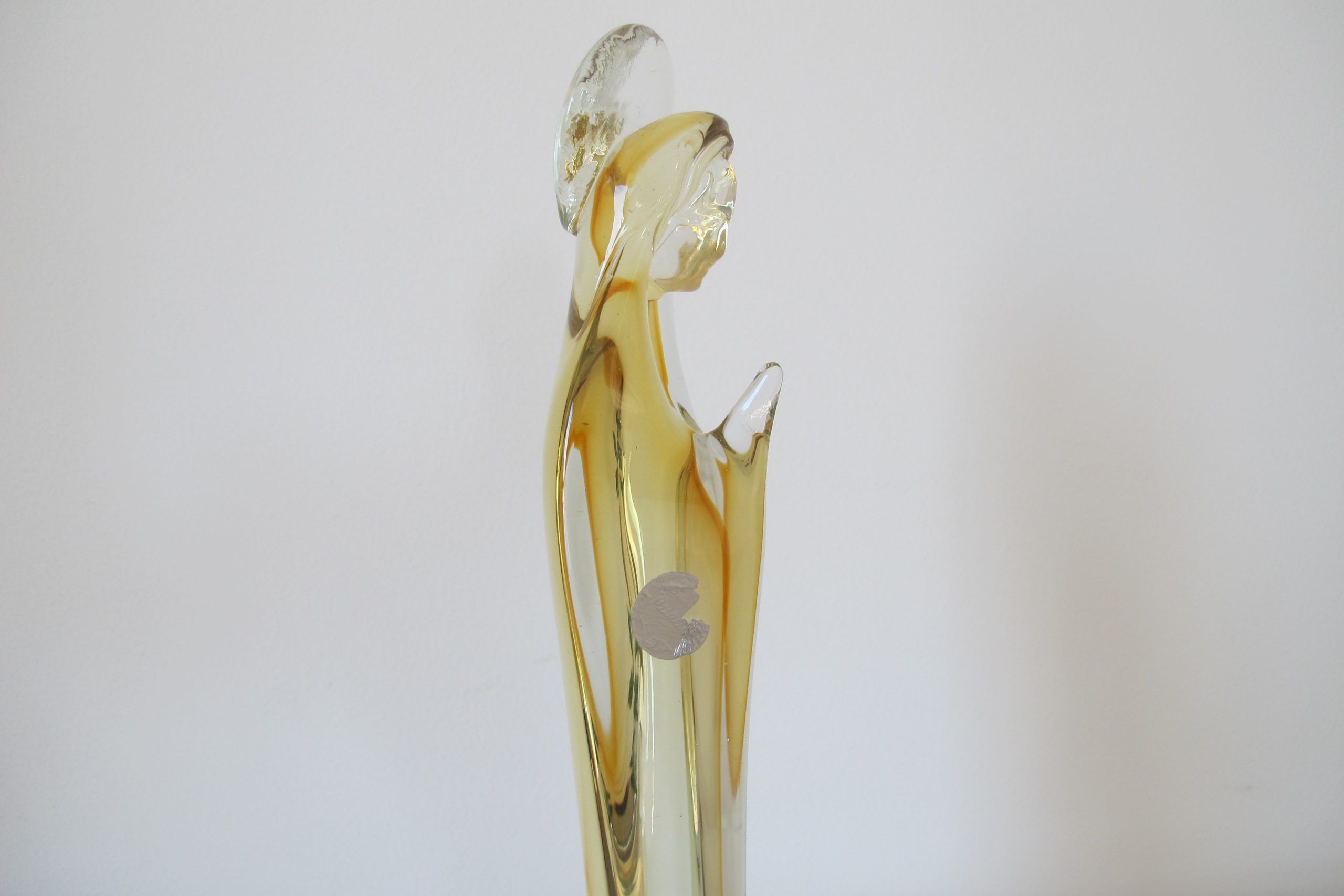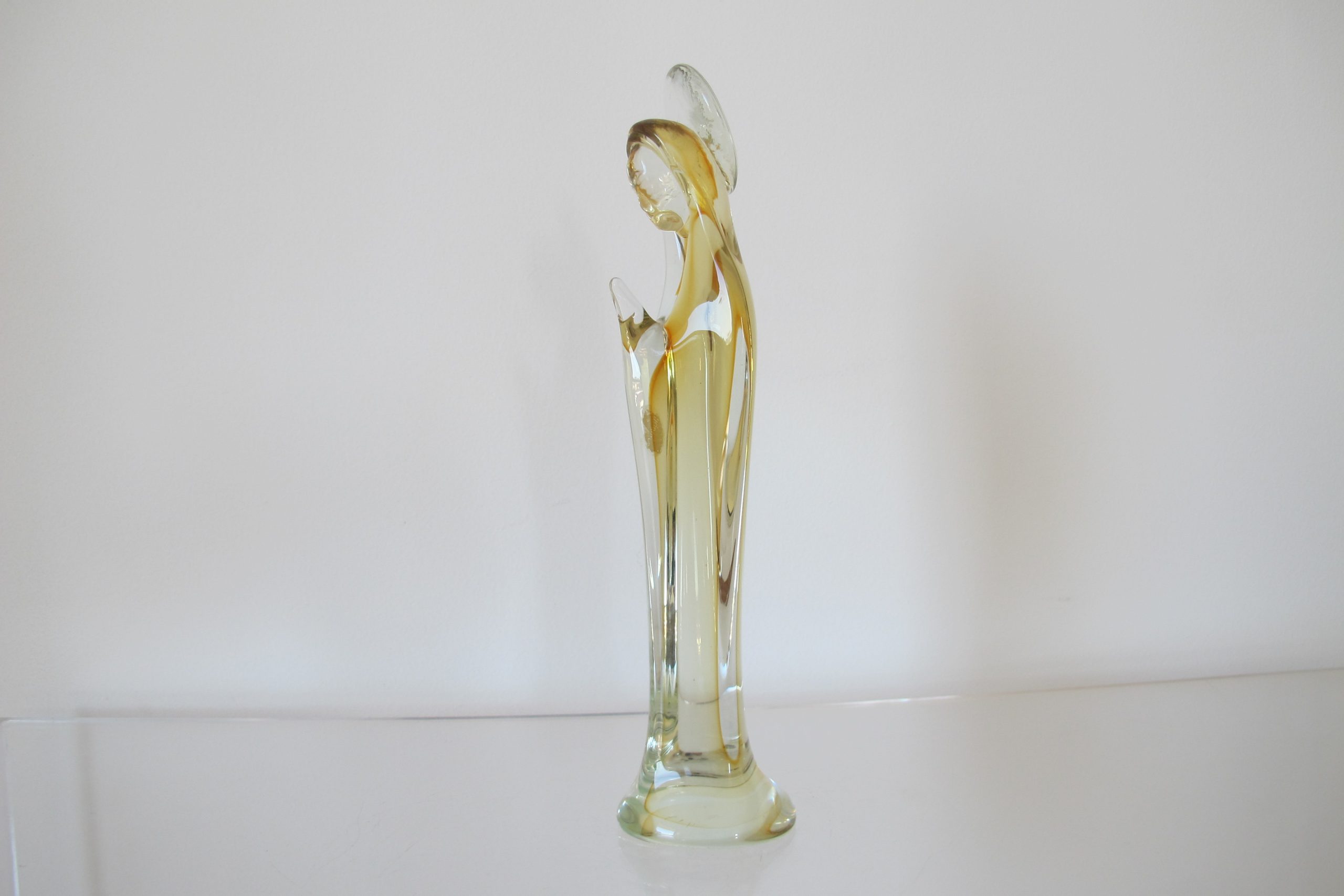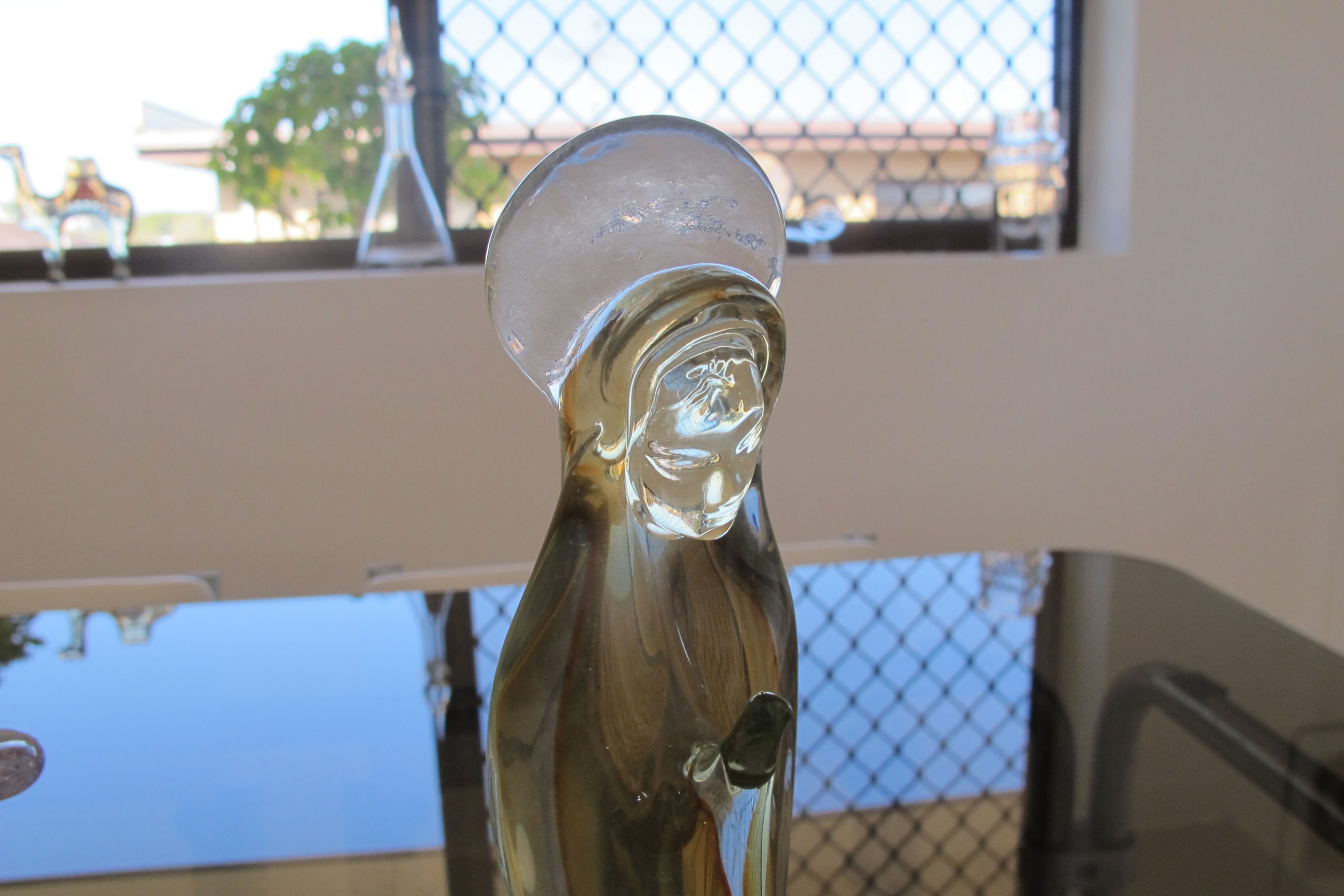 A piece of Italian art-glass from the Murano region in the form of the Virgin Mary. This is a sensational piece of art glass and epitomes why the Murano region has lead the world in the production of art glass. The workmanship is awe-inspiring, particularly the detailing around the face. What I love most about this piece is how the designer has used the glass to further express the subject matter. There are areas that seem to glow and give the piece an ethereal essence. This ties in wonderfully and makes the Virgin Mary look ethereal herself. I would say the designer purposely wanted to achieve this which makes this piece all the more extraordinary. This design enjoyed some popularity and spawned the reproductions. All the reproductions do is confirm why Murano is so highly regarded. The copies do not do the piece justice particularly around the face. Even if this particular piece didn’t have the label it’s obvious it’s Murano. The label however adds to its value making it a very strong investment.