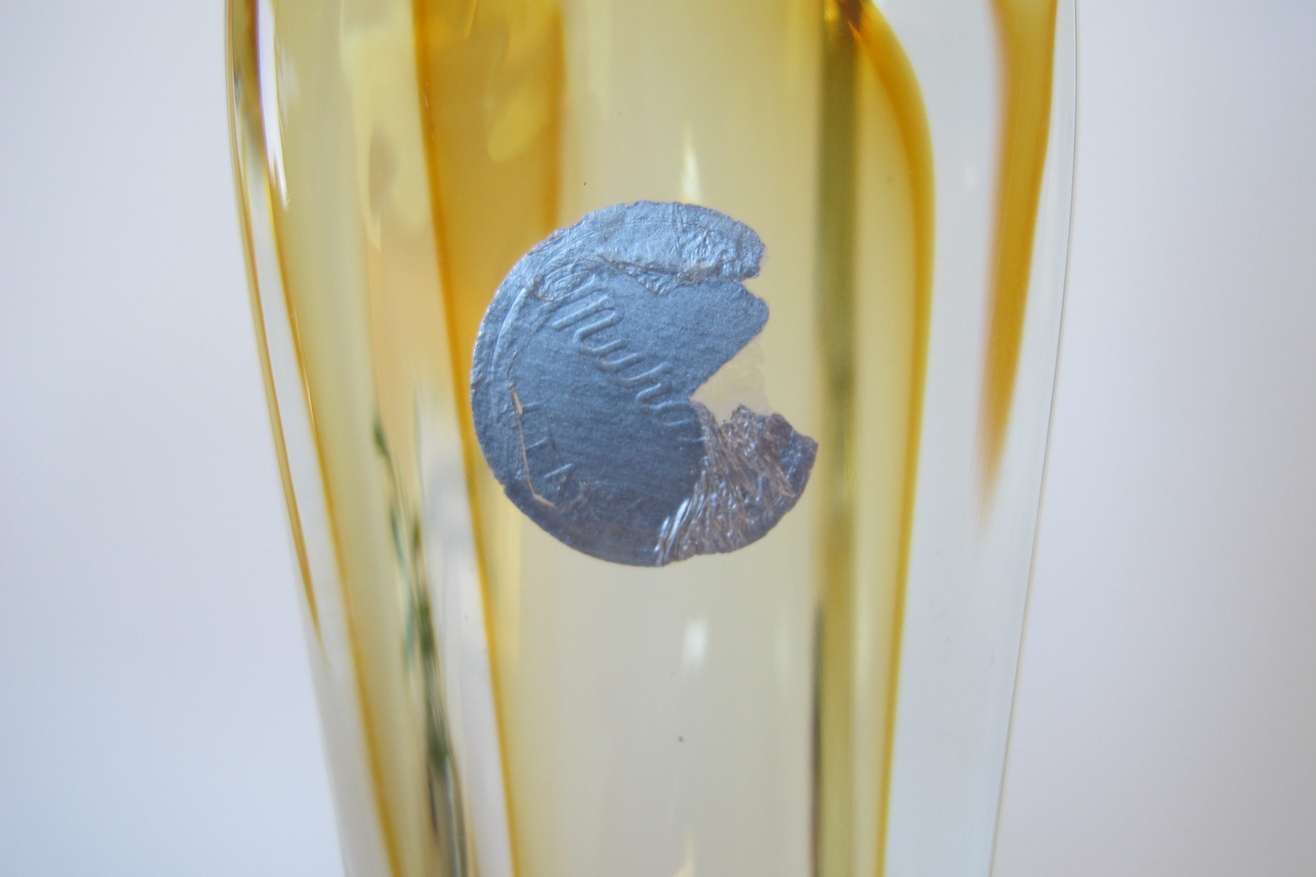 I saw another of these online for $395. It was certainly authentic but I don’t think it had the label. This label looks 1950’s to me or even 40s. (I’m estimating here.) Around the deco era Murano labels were more subdued with no or little colouring.