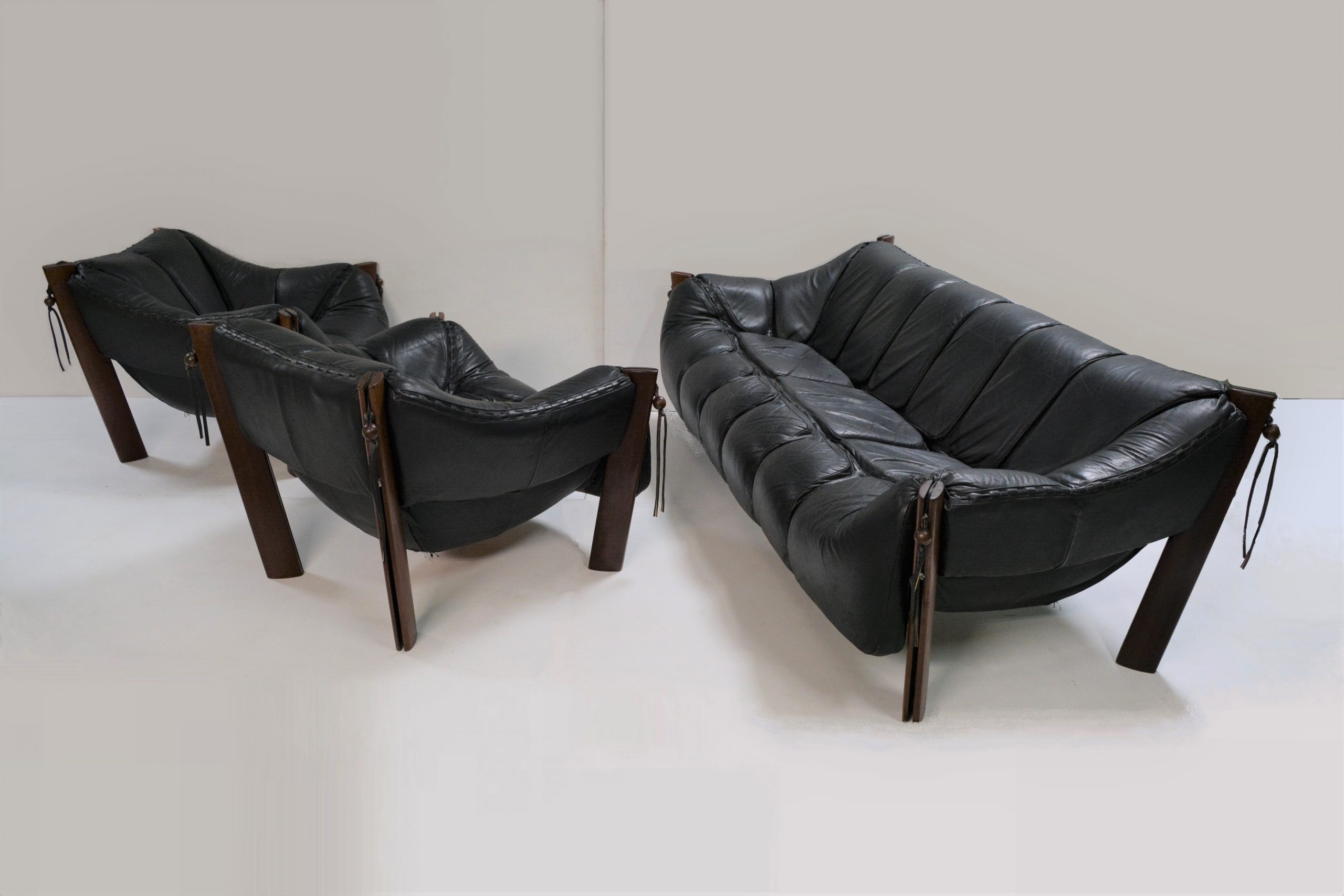 This piece ticks every other box as well. The looks are sensational. This piece came out around the same time as the converted Norwegian Falcon chair but this is BRAZILIAN made and designed (I’m pretty sure the timber is Brazilian Palisander Rosewood). The suspension style is similar to the Falcon but the Falcon came in single-seater chairs only- sofas like this are virtually never seen, particularly in Australia. The shape is curved and angular at the same time- bold and stylish. The black leather is the best quality and the handiwork in the leather with its cushioned pockets and woven borders are something you’ll find you never want to stop looking at. Lafer is one of the world’s most respected furniture designers ever which bring us onto investment appeal.