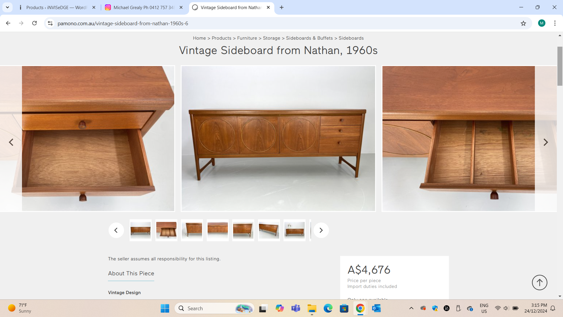 After studying what’s available in new furniture stores, I’d say the retail price ticket of a cabinet of this callibre would be about $3,700 new (but this is an AUTHENTIC vintage piece). This piece has NOT been flat-packed and sent from China in the thousands- it was MADE IN THE UK about 60 years ago and will be a statement in your home that’s all your own- one that will continue to increase in value, like it has for the full 24 years I’ve been in this business.