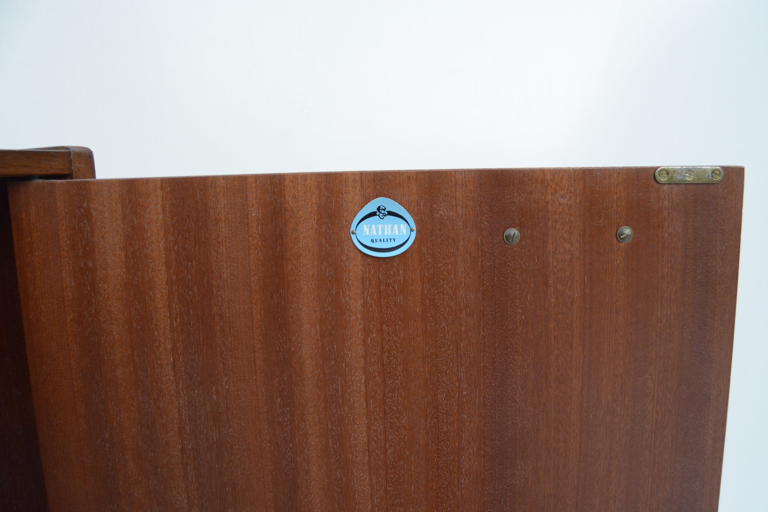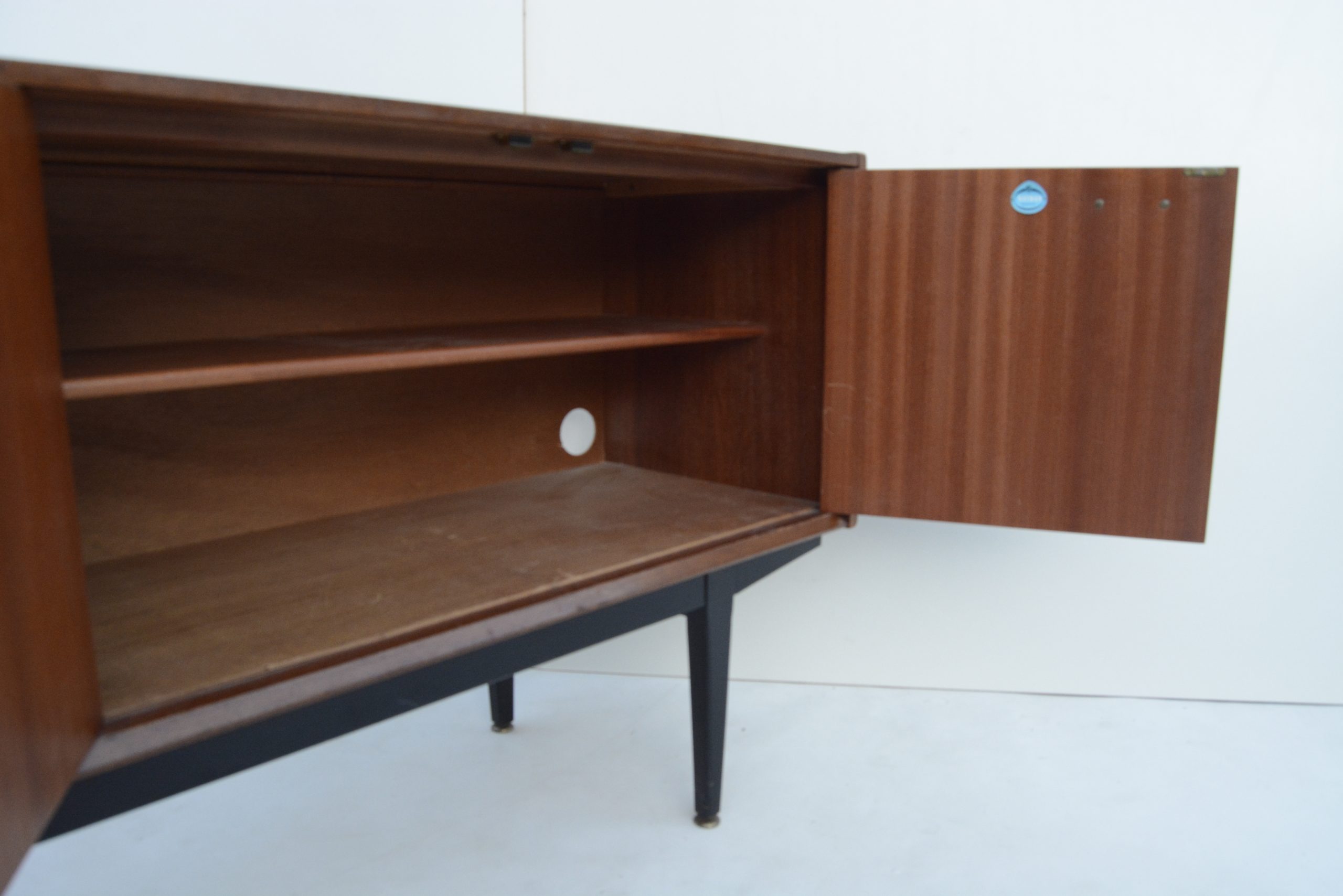 A fantastic mid-century sideboard designed and made by NATHAN Furniture of the UK, in the mid-1960s. This is easily one of the best sideboards iNVISeDGE has ever had. It’s made of SOLID TIMBER- there’s no shitty Parker chipboard in this piece. Solid timber sideboards from this era are the much smarter option and much harder to get! They’re a FOREVER investment- this one can be refinished as many times as you want. Despite what others may say, about 97% of sideboards from this era are CHIPBOARD VENEER. There are even dealers in this business who proudly state they are selling a solid timber sideboard when they are not … be careful! After about 24 years in this business this is the 3rd SOLID timber in this style we’ve ever had.