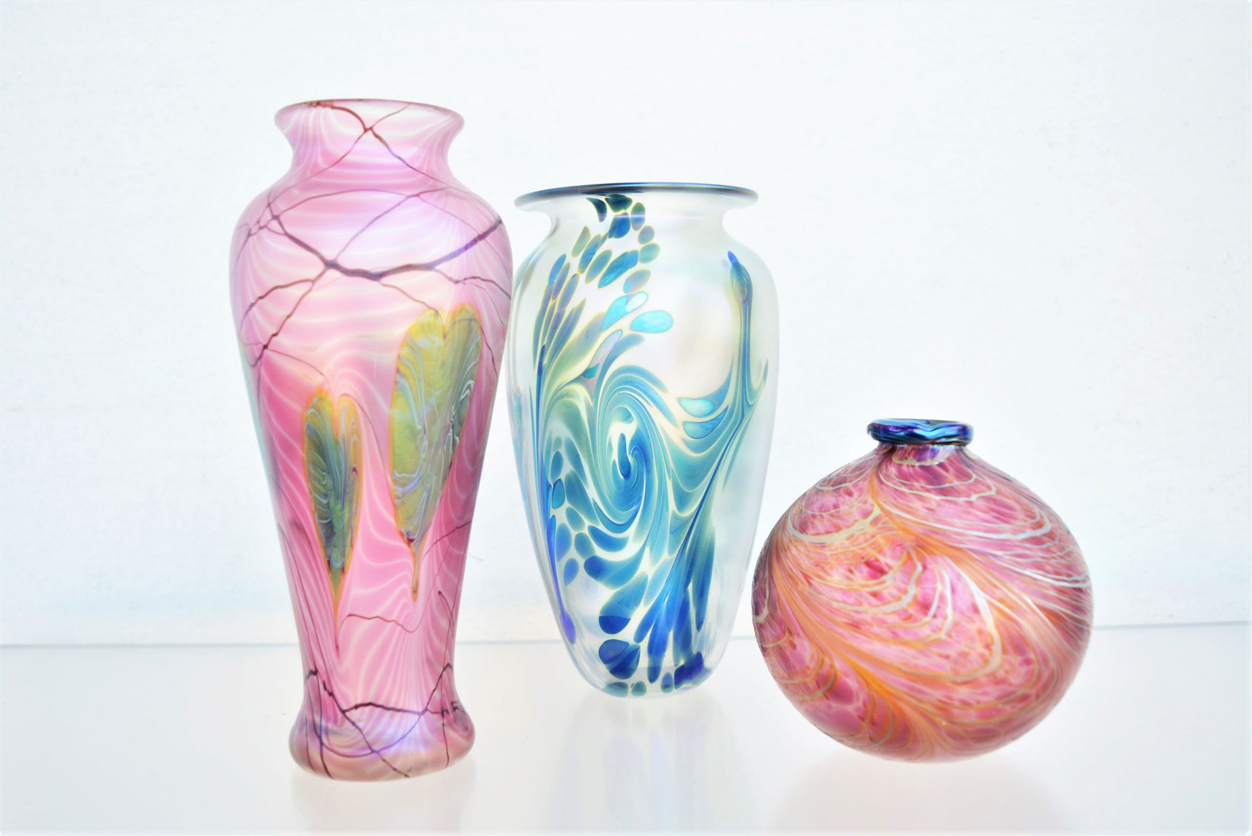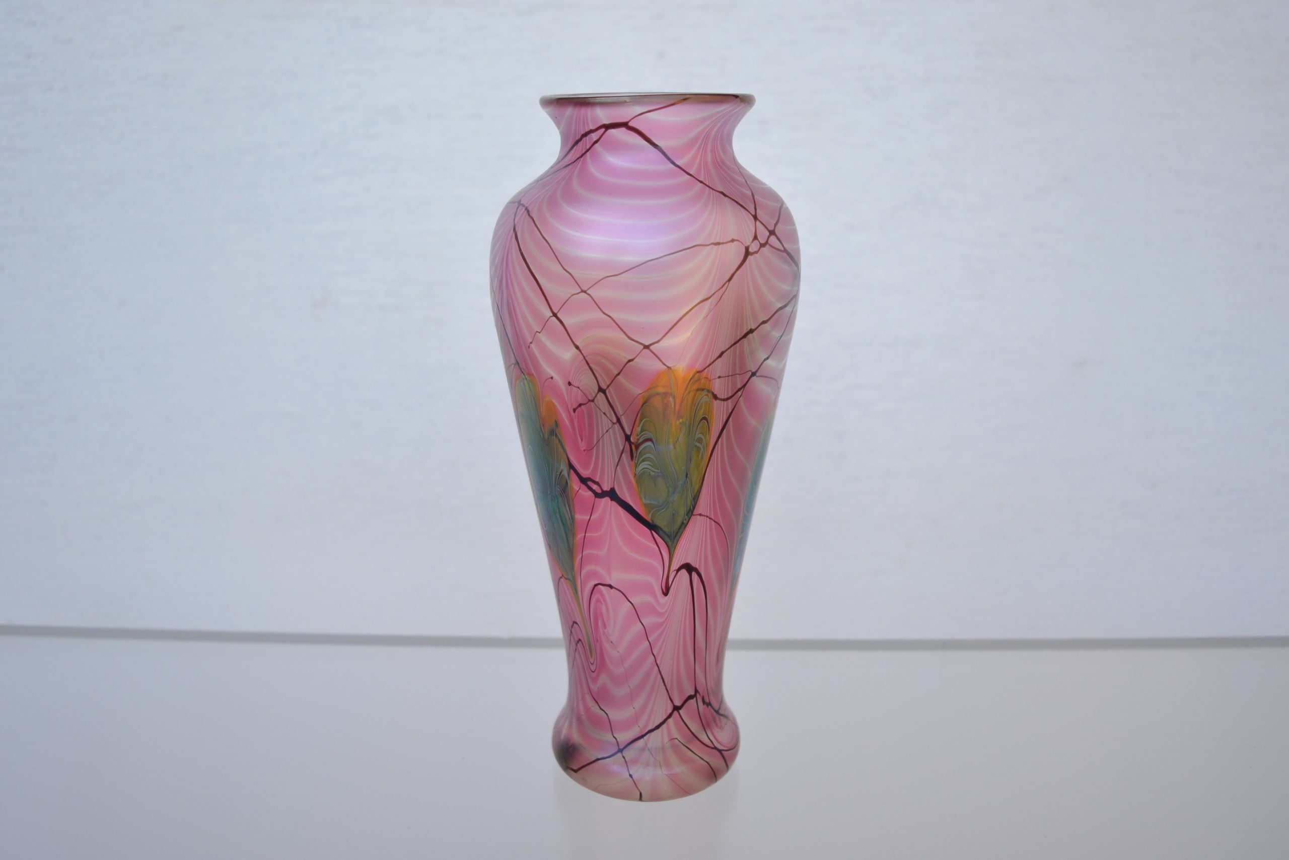 Okra pieces are some of the most highly regarded HAND-CRAFTED art pieces to ever come out of Europe. This piece is signed to the base “Okra D.B” (Dave Barras). The vase is a good size- 21.5cm in height- which is larger than virtually all Colin Heaney pieces. Okra has been on the scene since 1979 and is one of Europe’s most successful art-glass works ever. Recent Okra Limited Edition pieces are worth about AU$4000.