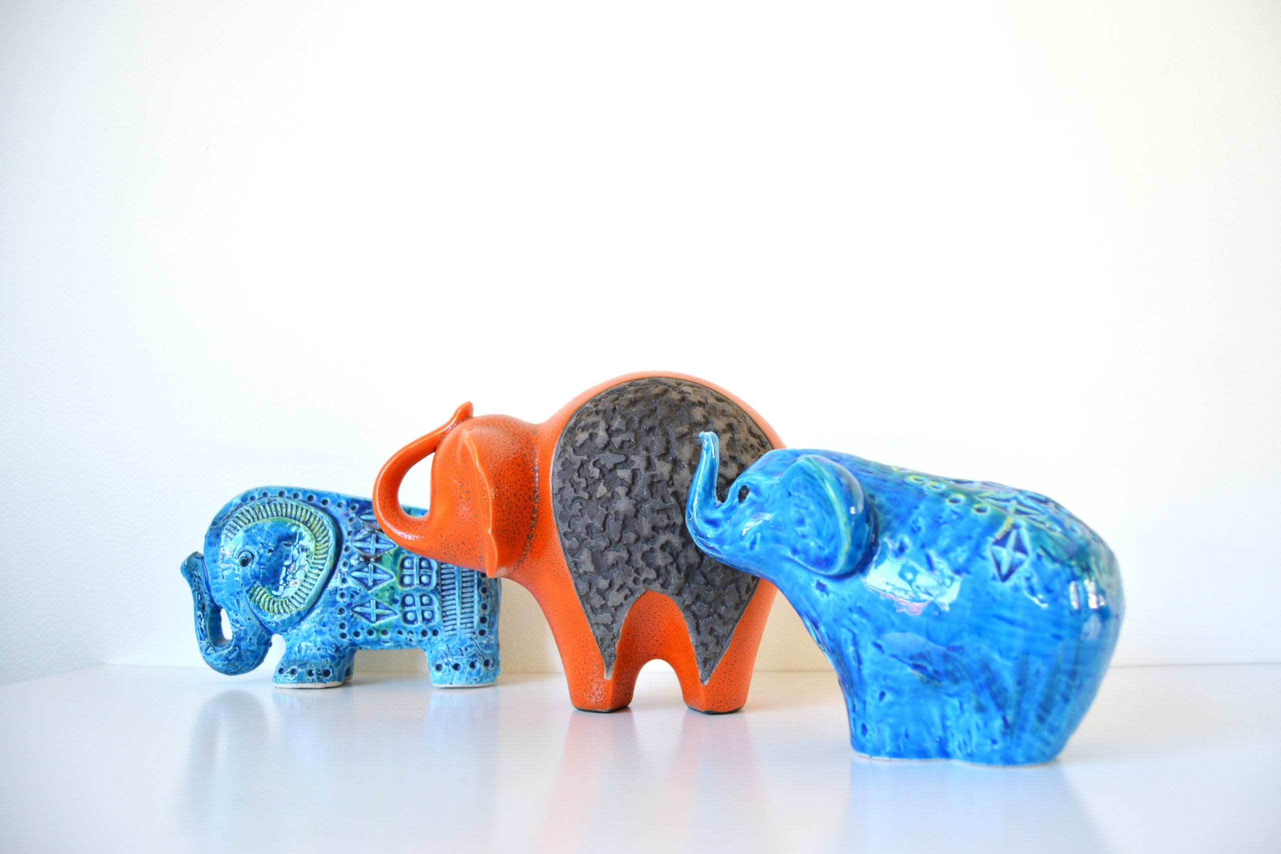 A VINTAGE Freeman McFarlin elephant made in USA in the early-1970’s. This is a genuine VINTAGE piece made by hand. Freeman McFarlin was founded by Gerald McFarlin and Maynard Anthony Freeman in the 1927 and operated McFarlin Potteries in El Monte California. Gerald McFarlin was the businessman of the duo and Maynard Anthony Freeman was responsible for completely reinventing their line, changing it from mostly small animal figurines to very large figurines that were sculpted with great detail, movement, and expression. Some of their later designs in the 1960’s and 1970’s were stunning- this elephant is one of those.