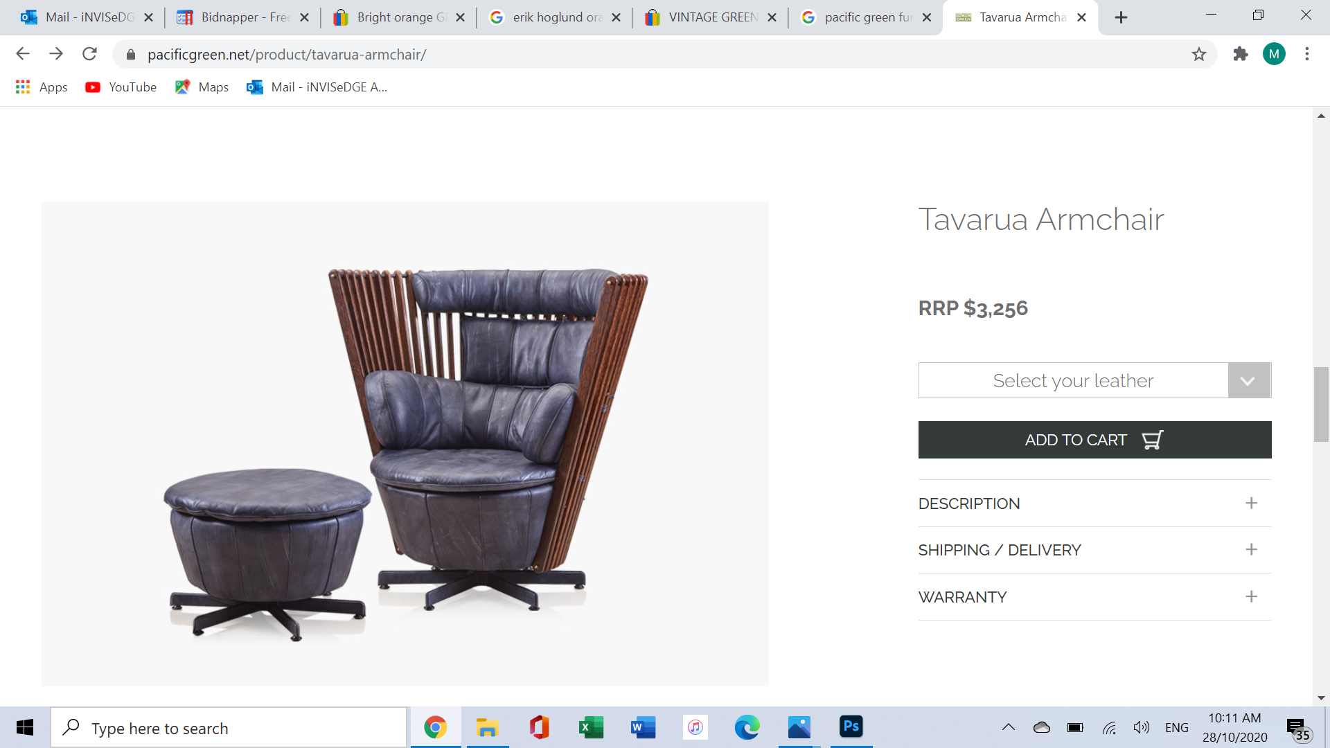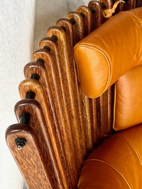 This is the Tavarua design which is one of Pacific Green’s most heralded and rarest. I specialise in representing Australian furniture design especially Pacific Green pieces- this is the first Tavarua piece I’ve ever come across on the secondary market. Pacific Green is still selling the single-seater chairs- they currently retail for AU $3256. The retail value of the 2-seaters would be around AU $4300 EACH but as mentioned above; 2-SEATER TAVARUAS ARE NOT CURRENTLY RETAILED BY PACIFIC GREEN. Because virtually none of these were ever made, the AU $4300 estimate for retail-value is conservative.