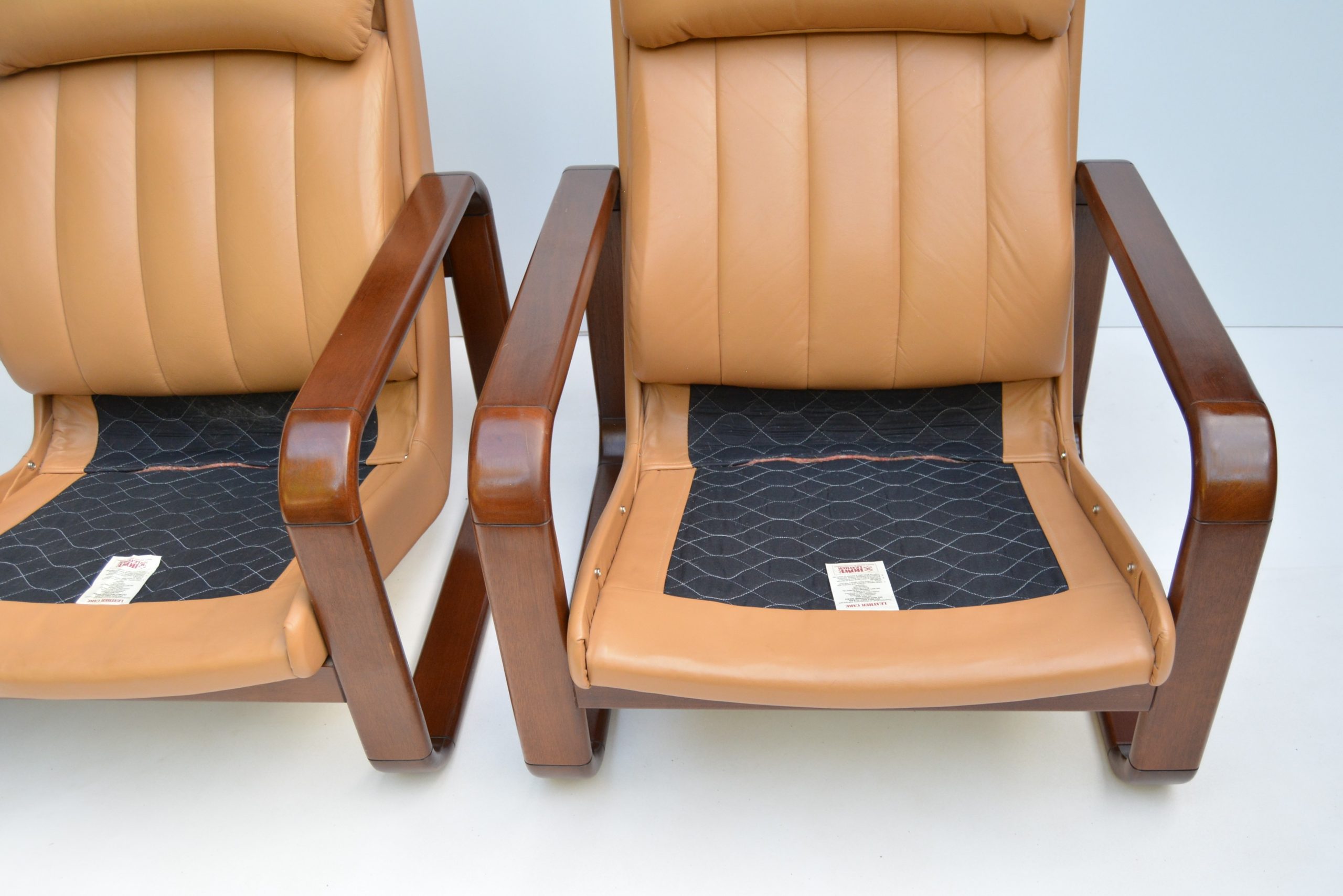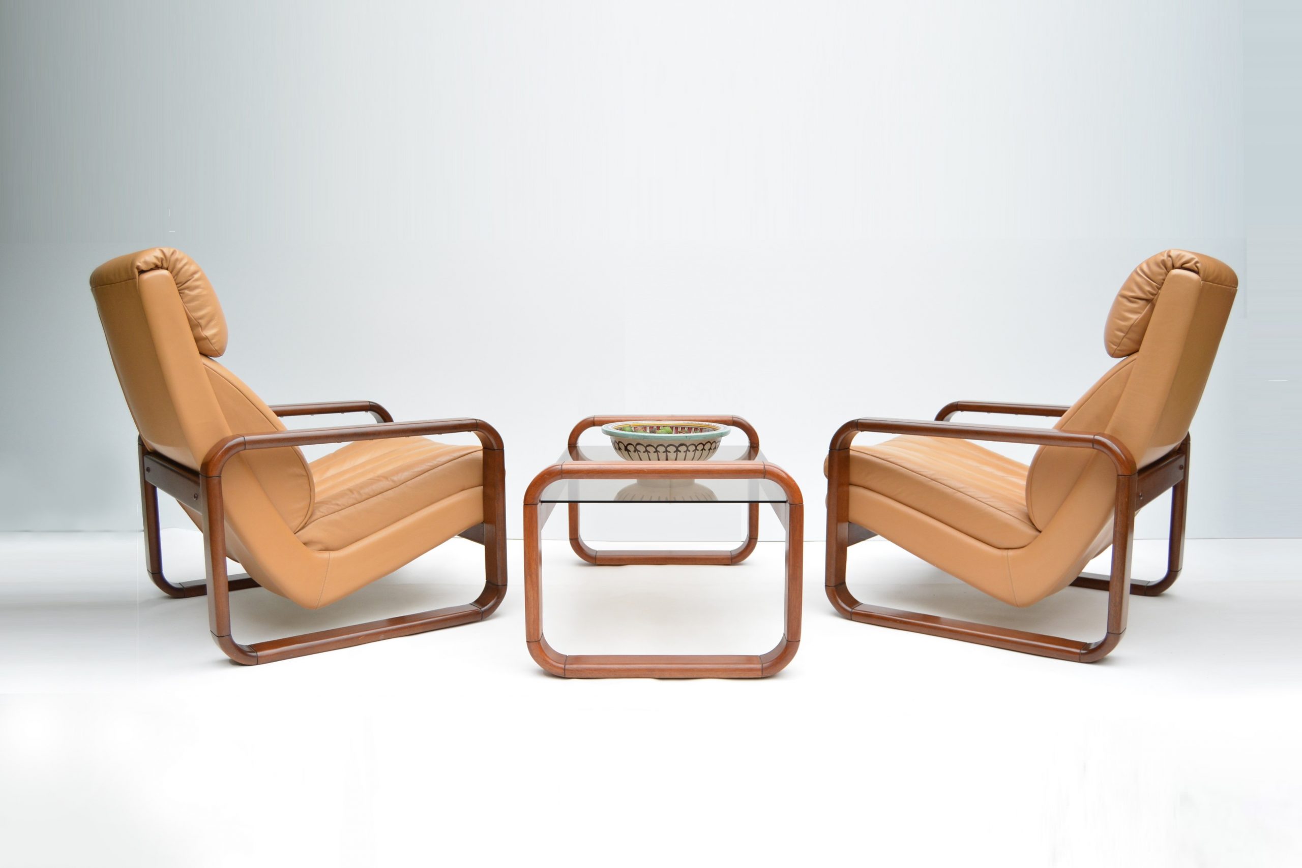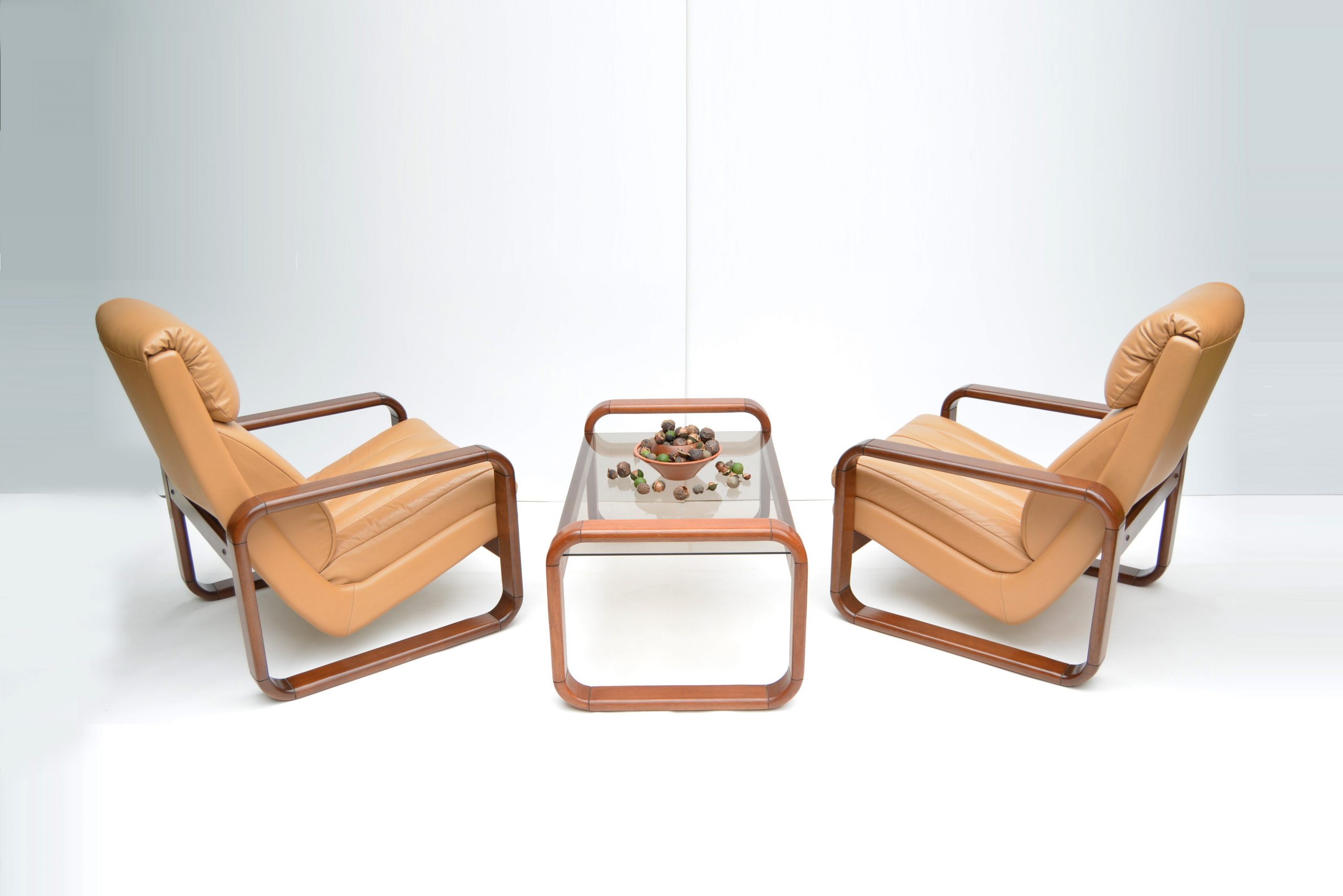 A VINTAGE pair of timber designer chairs, manufactured in the 1970’s by Mitre Furniture of Adelaide. The construction quality of this suite is A1- at least in line with that of Tessa Furniture. Mitre is well-known for their simple, clean lines, minimalist styling and functionality. This vintage design closely resembles the “Eve” by Aero Furniture (made in Victoria at the same time). This suite was purchased new by the original owners in the late-1970s and sat proudly in the “good room” since then. It has had little use. For a suite that’s over 40 years old, it would be near impossible (impossible?) to find another suite like this in such amazing condition. These are heavy, sturdy pieces- the structure of every piece is still as solid as a rock.