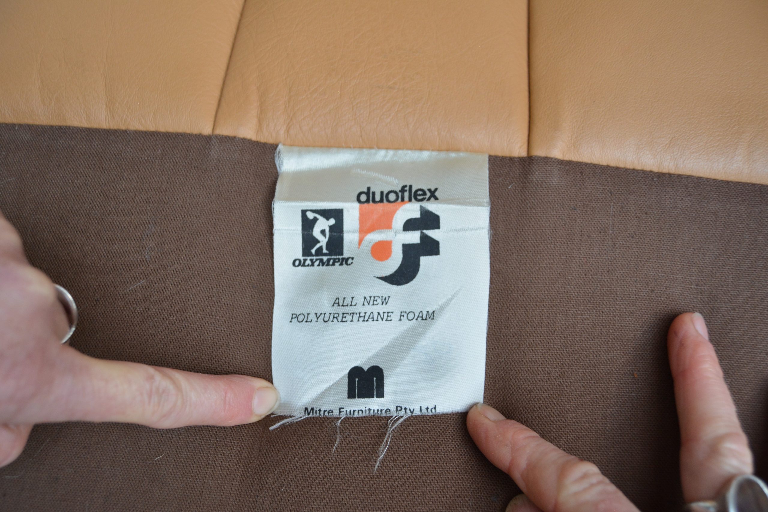 This Mitre suite is in original condition, with the original HOWE leather from the 1970’s. This FULL-GRAIN leather is some of the best leather ever made (probably the best to be made in Australia and certainly up there with the best ever made on an international platform.) Howe leather was used extensively on Australian furniture in the 1970’s- most of this furniture is in incredible condition after almost 50 years of use! If this leather is cleaned and conditioned every couple of months I see no reason why it won’t last forever.