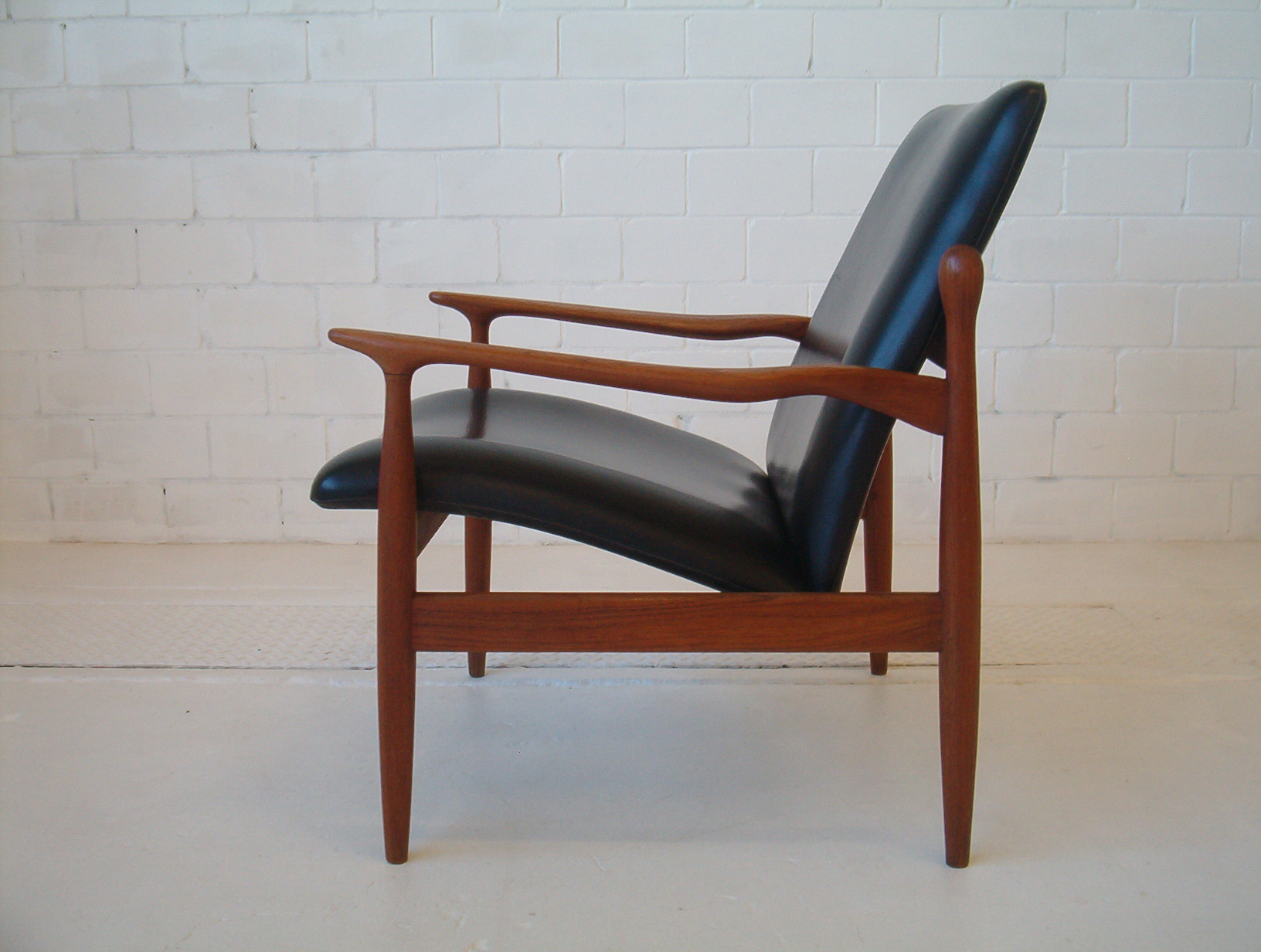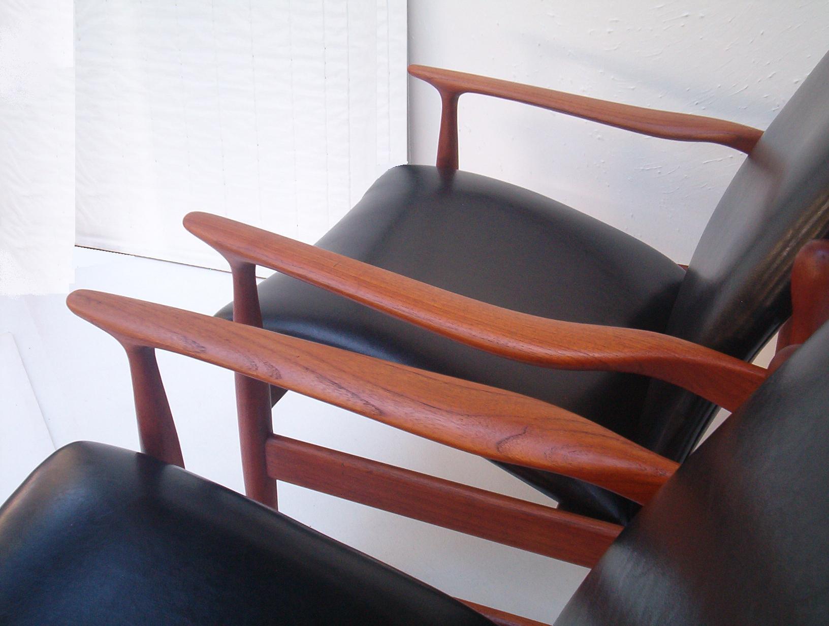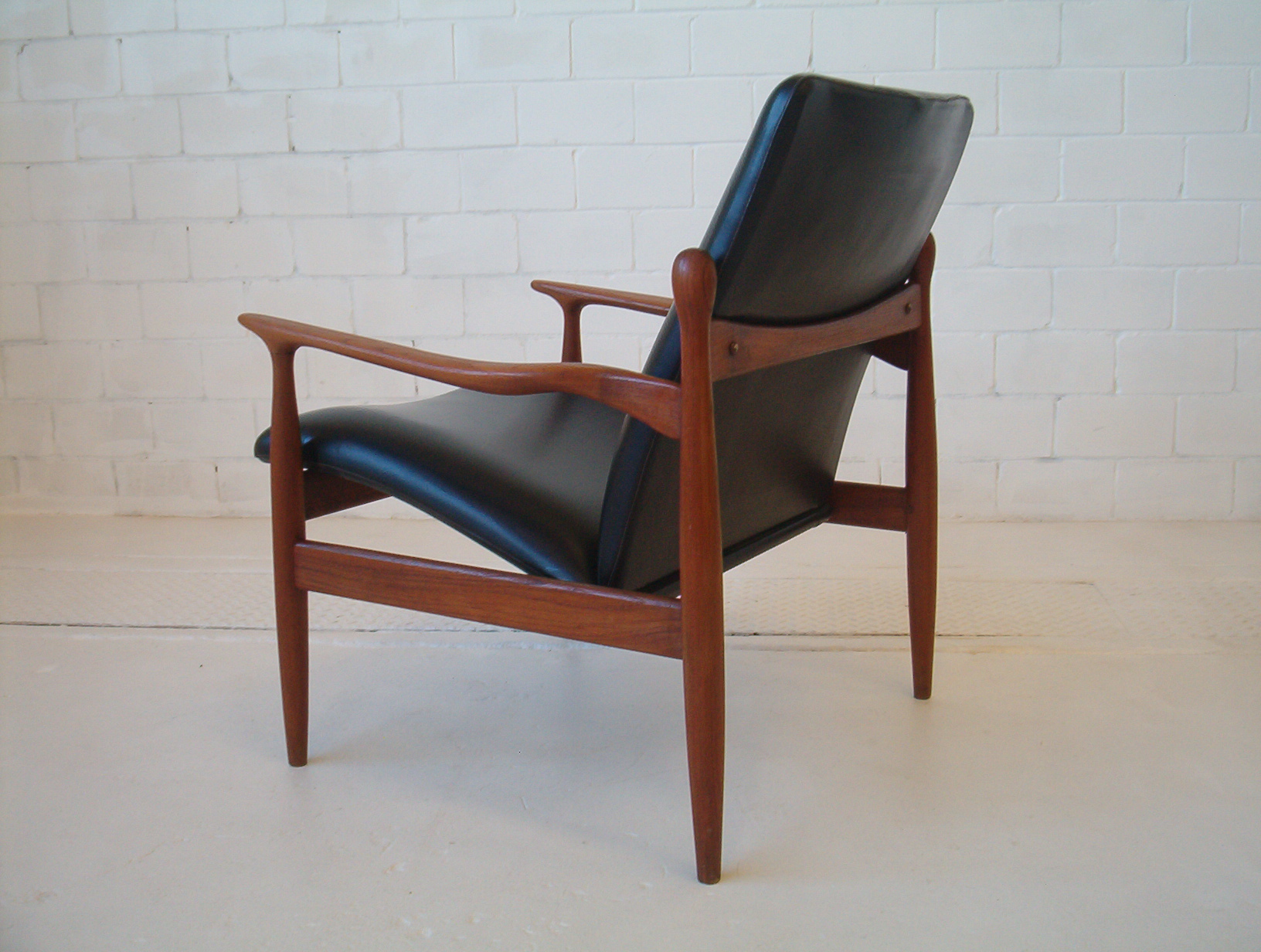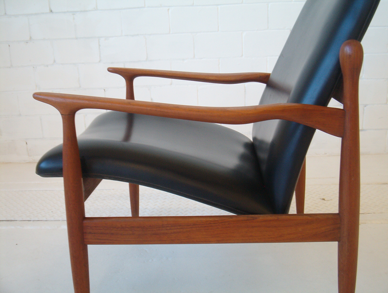 When I first saw these my heart skipped a beat- I thought they were the first Finn Juhl armchairs I’d ever seen in the flesh. I soon realised they were not Juhl pieces but are in fact very rare Parker pieces. I have been actively searching for this type of furniture for five years and this is the first time I’ve seen this particular design by Parker (I haven’t even seen a photo of them before). In my opinion this is the very best work Parker did and in fact of the era. The sculptural elegance of these chairs and the stunning fluidity put this pair in a league of their own. These have obviously been inspired by Juhl’s work and to be honest I am in awe of how Parker have pulled this off. Refined elegance, subtle flowing movement in the design and the completely SOLID construction vintage Parker items are renowned for. One of my staff agree that these are just stand-out pieces and amongst the best items we’ve ever stocked. These are a very solid investment, it’s a design you will probably never see again and in a very popular style that can’t be readily reproduced. If chairs of this quality were made today they would fetch at least $3000 to $4000 the PAIR because there’s a lot of work involved- much of it done BY HAND. These have a lot more work in them compared to any other Parker chair and I’d say the extra cost meant they didn’t sell many at the time which accounts for why there are so few around- a great investment for the astute buyer.