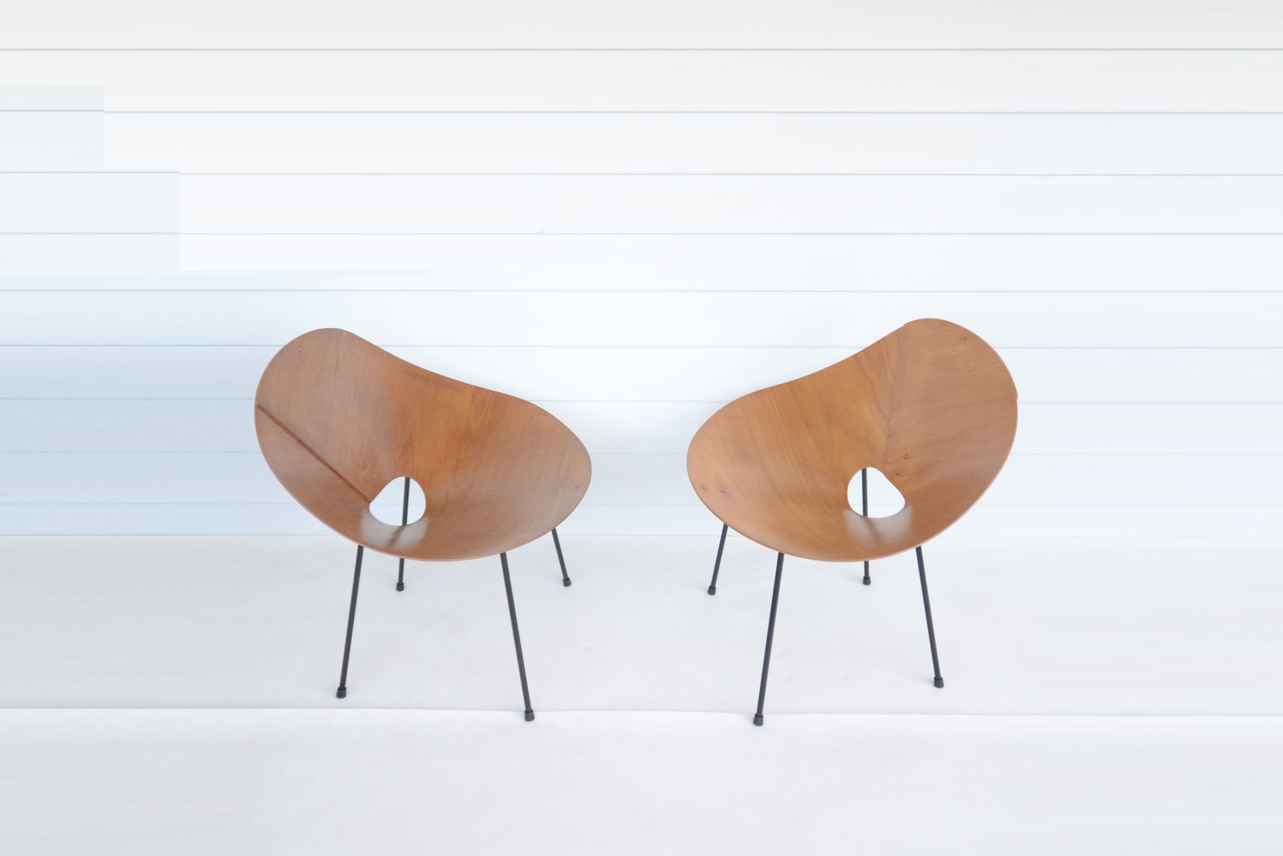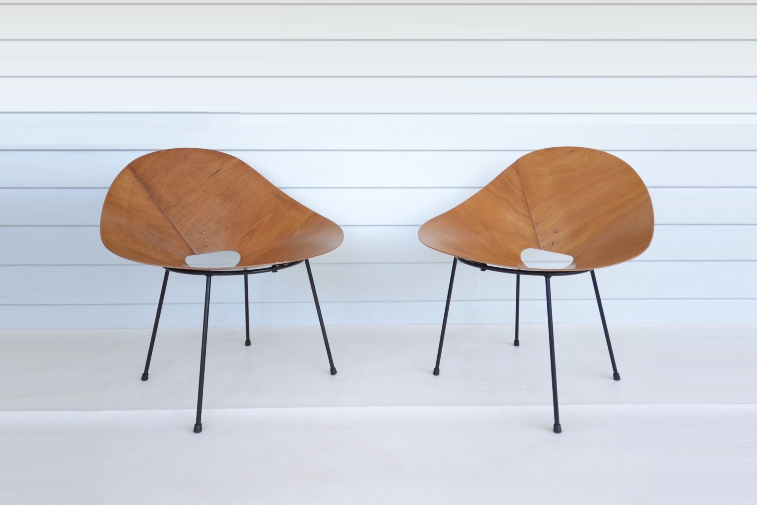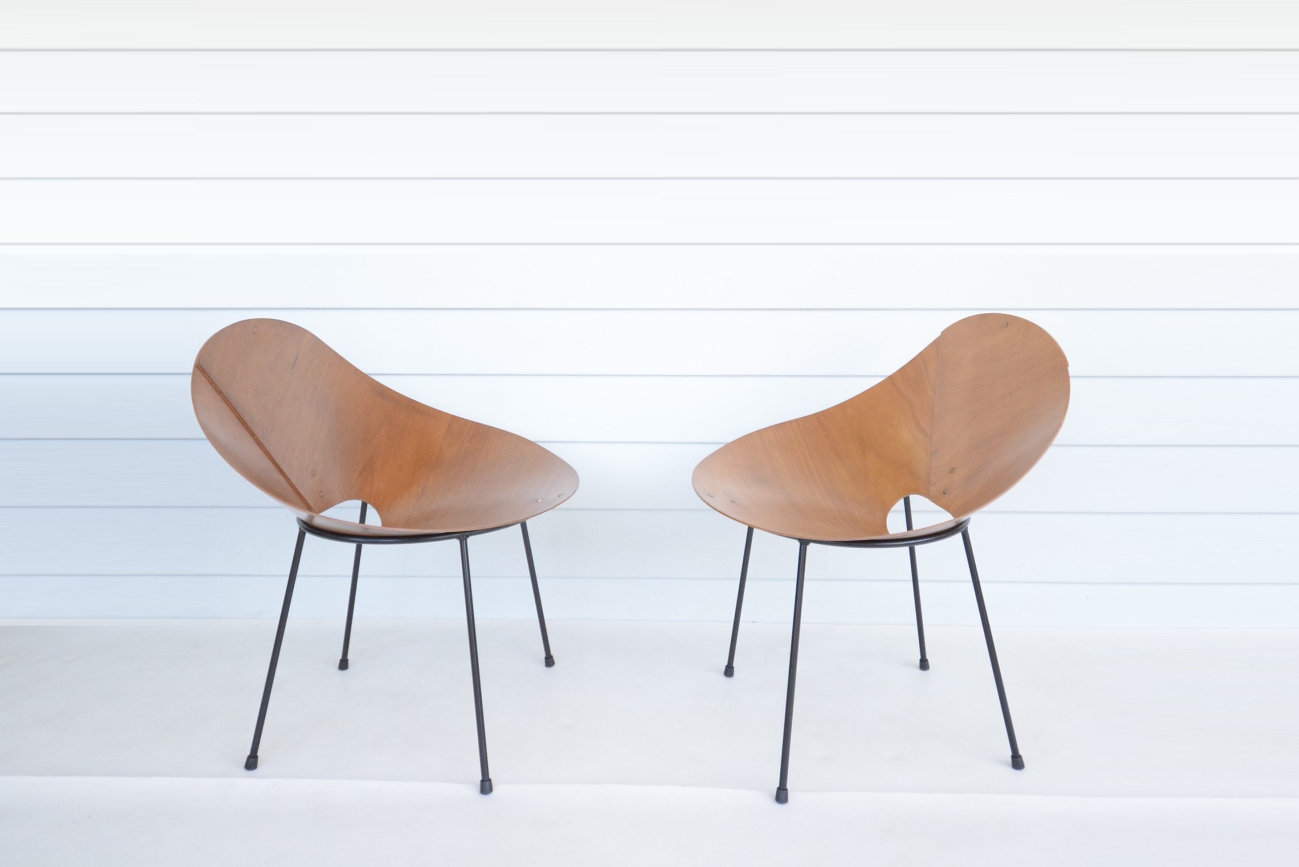 Roger McLay’s Kone chair is an iconic Australian design and ridiculously rare. I haven’t come across another pair of McLay Kone chairs I could seriously consider stocking in iNVISeDGE since 2006. Roger McLay’s “Kone” chair was the most celebrated of his work and has had a notable mention in virtually every reference book on vintage design ever compiled (definitely Australian vintage design books anyway). Designed in 1948, the Kone chair was made from a single piece of aircraft-grade laminated plywood moulded into a conical shape and attached to a metal base. Most had metal legs although other versions were produced with wooden legs. (Some even had “shag-pile” covers on them and were called the “Poodle” chair! I can just picture someone putting a lead on one and taking it out for a walk!) Initially, the Kone chair was sold only from McLay’s Gloucester Street Studio in Sydney, but it became so popular after winning the 1950 Interior Design Award that Descon was commissioned to produce and sell it in larger quantities. That said, these days there are very very few of these around. Roger McLay’s designs have been archived at the Powerhouse Museum in Australia, preserving and valuing the legacy of the Kone chair for generations to come.