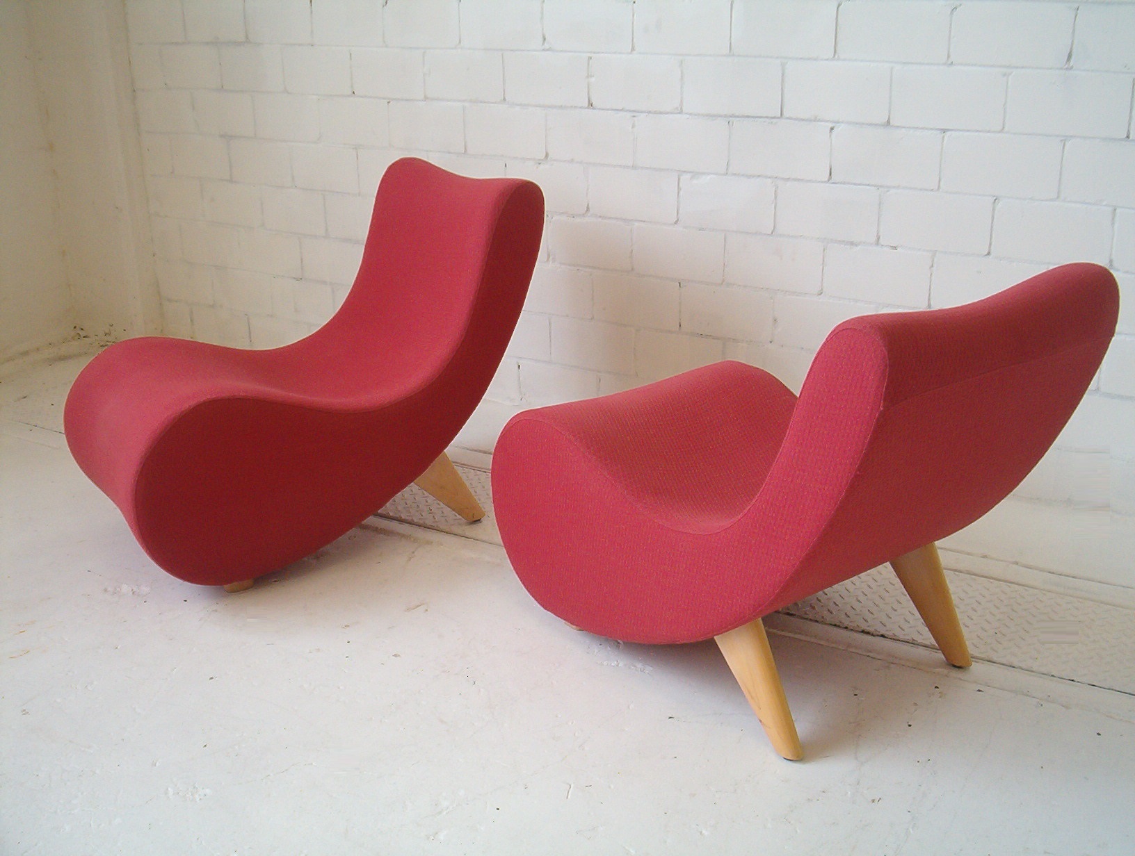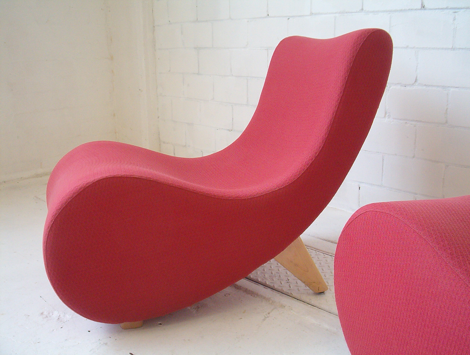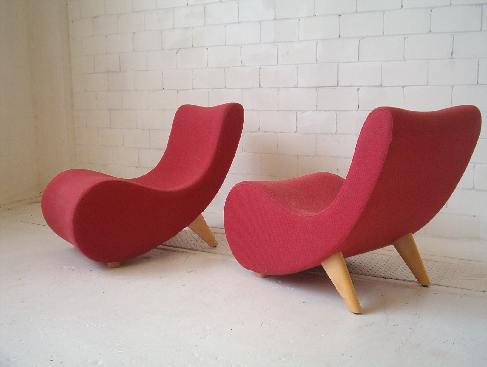 A rare Norman and Quaine Whistle chair from the mid-1990’s that are pretty dam stunning! The Whistle chair is a highly acclaimed AUSTRALIAN design that is aesthetically very pleasing with its curves and graceful fluidity. Norman and Quaine, a pair of Australian designers, formed in 1989 and since then have produced an array of unique and much-admired furniture designs. Norman and Quaine’s designs have a subtle reference to the proportions and function of mid-century furniture and the Whistle chair is quite possibly the most well-known furniture design to come out of Australia in the 1990’s. This design was recently discontinued (this was written in 2006) but had a production run spanning 10 years. The Whistle chair will undoubtedly be highly collectable in the future, much like Grant Featherston is today, due to its stunning design and low-volume production IN AUSTRALIA using traditional techniques and first-rate materials. These retailed for about $1000 EACH back in the mid-1990s (when this chair was first sold) and because of the price not many Whistle chairs were ever sold. These are the only 2nd-hand Whistle chairs I’ve ever come across. Some people who have visited my showroom have commented on how comfortable this chair is- I personally don’t agree but with a cushion in the small of my back I find them very comfortable- the angles are great. As a feature chair in the lounge room, this stunning work of art would add a creative spark to any space- this is one of those very rare investment opportunities where I’m sure one day people will be surprised what Whistle chairs sold for back in 2006!