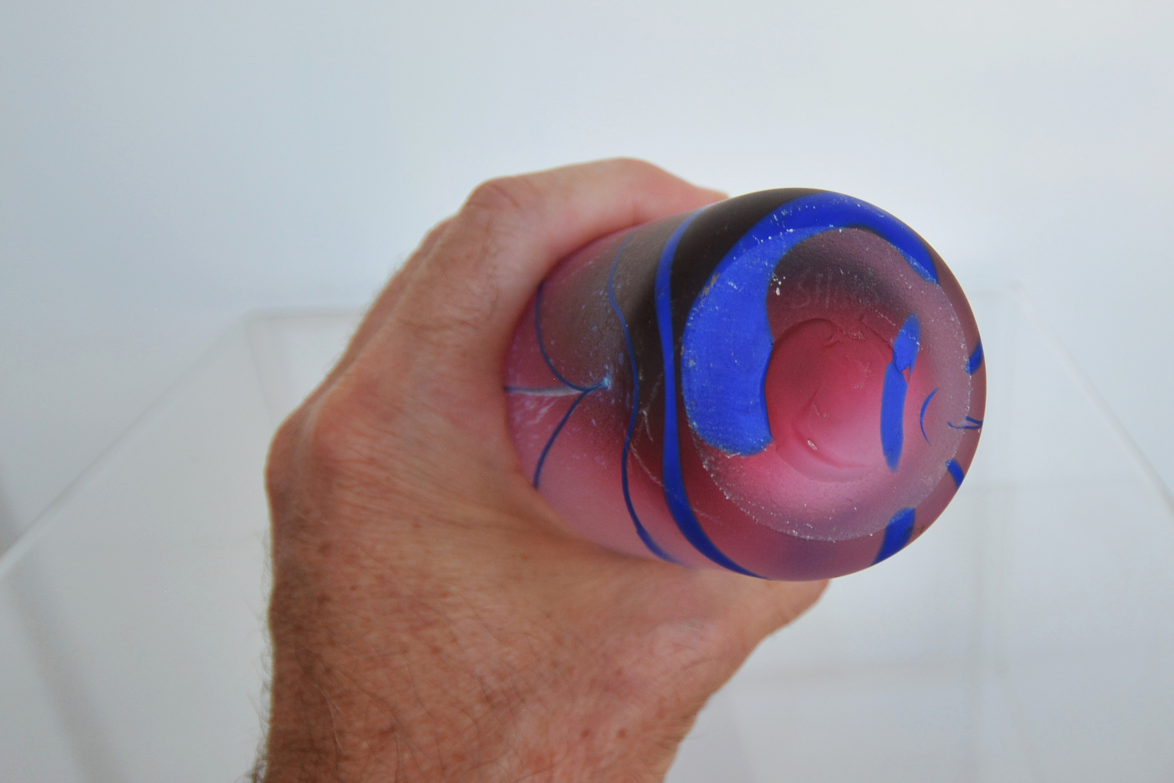 A stunning art glass piece HAND-CRAFTED by one of the UK’s most eminent art-glass artists, Will Shakspeare. This is stunning as part of a group display (as shown in our photos). The colours are vibrant but also have a muted quality because of the glass is frosted. The expertise required to create a piece like this is pretty astounding. This piece has been carefully done but still has a sense of freedom and experimentation like a true artist’s piece should.