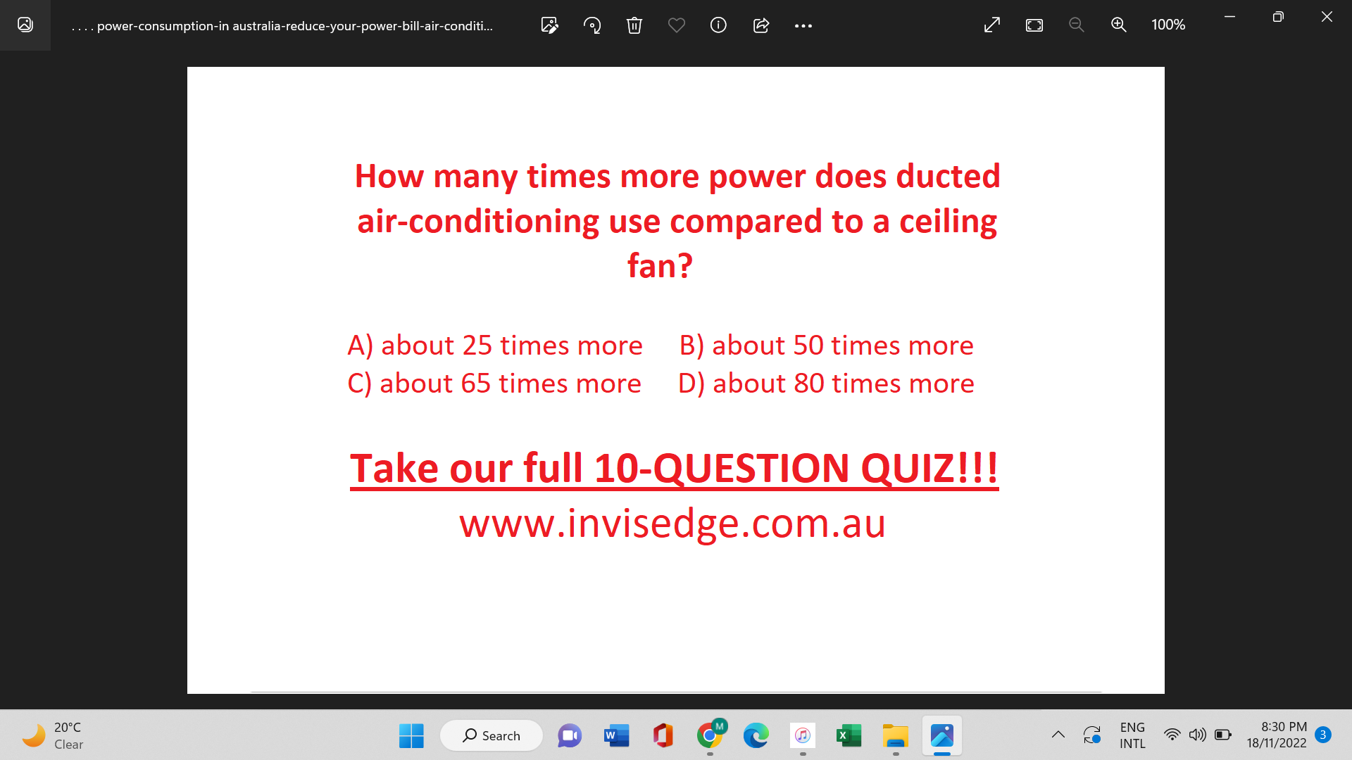 Question 2. How many times more power does ducted air-conditioning use compared to a ceiling fan?