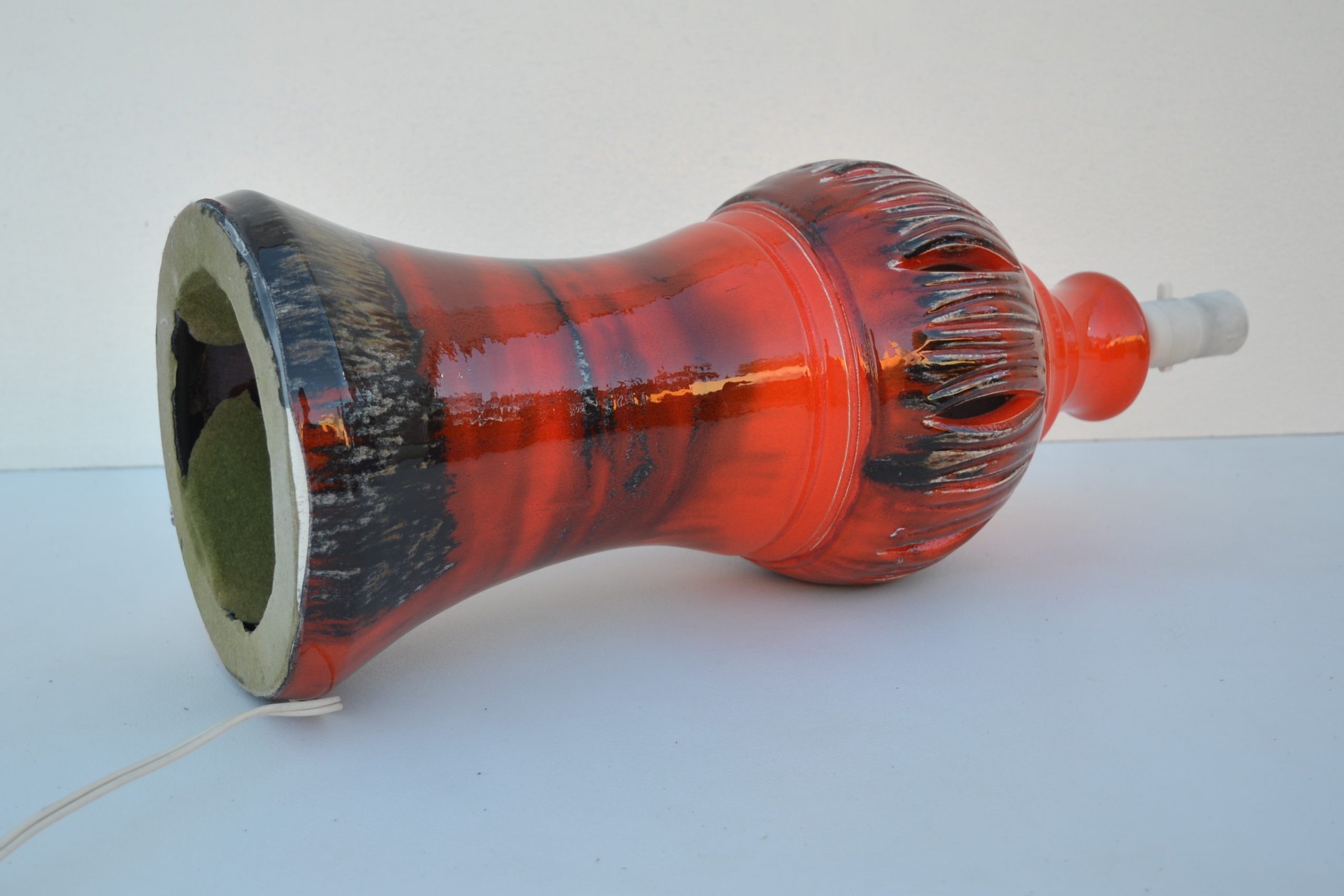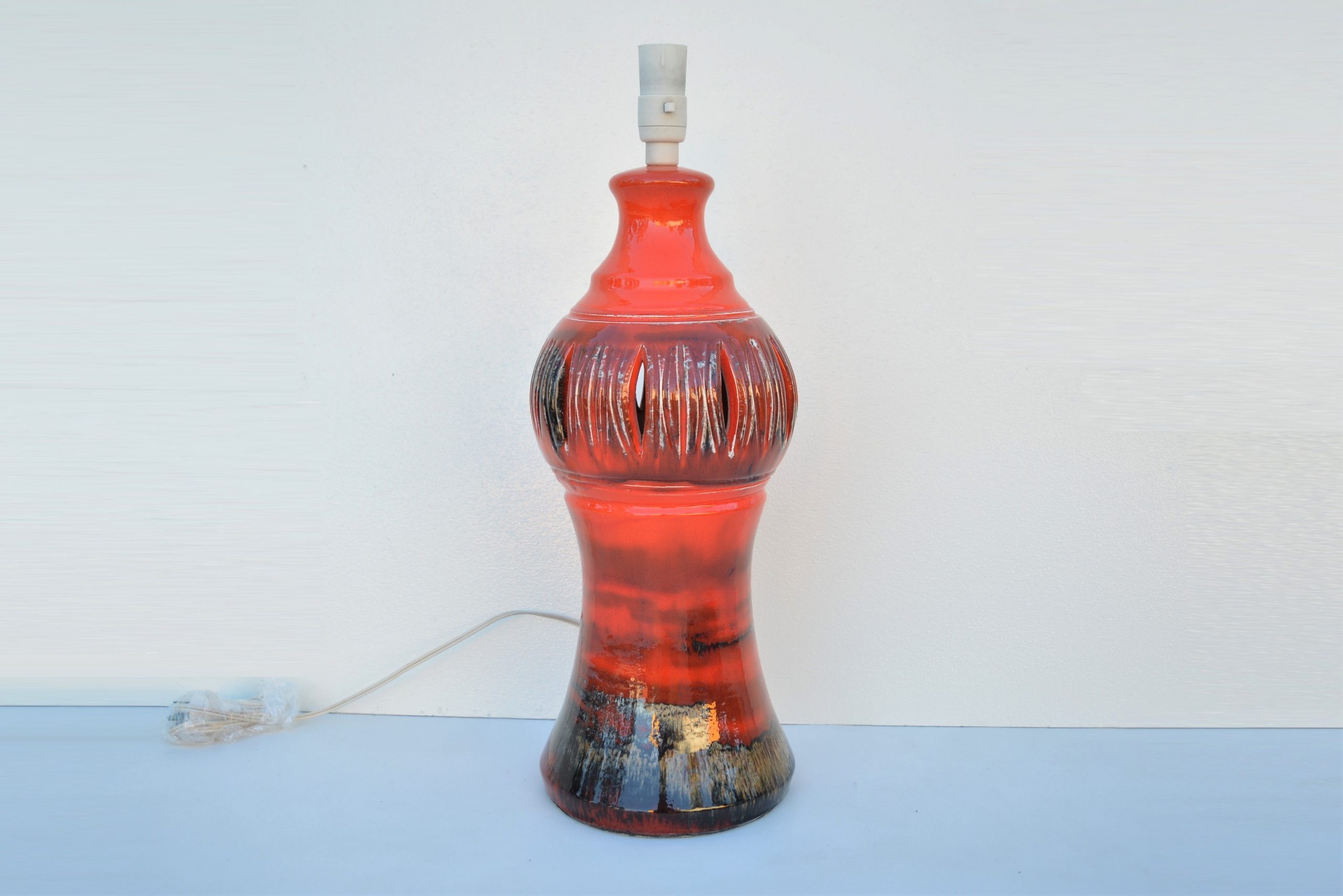 A LARGE ceramic/pottery lamp-base made by Ellis- Australia in the 1960’s. This is part of an extensive consignment of ELLIS pottery. The mother of the owner of this consignment (Marcela Cechova) was fast friends of Milda and Dasa Katochvil, founders of Ellis pottery. My vendor’s mother, Marcela was not a pottery collector, the Ellis pieces she acquired were gifted from the Ellis pottery founders and many are RARE. Ellis Lamp Bases in red are quite rare.
