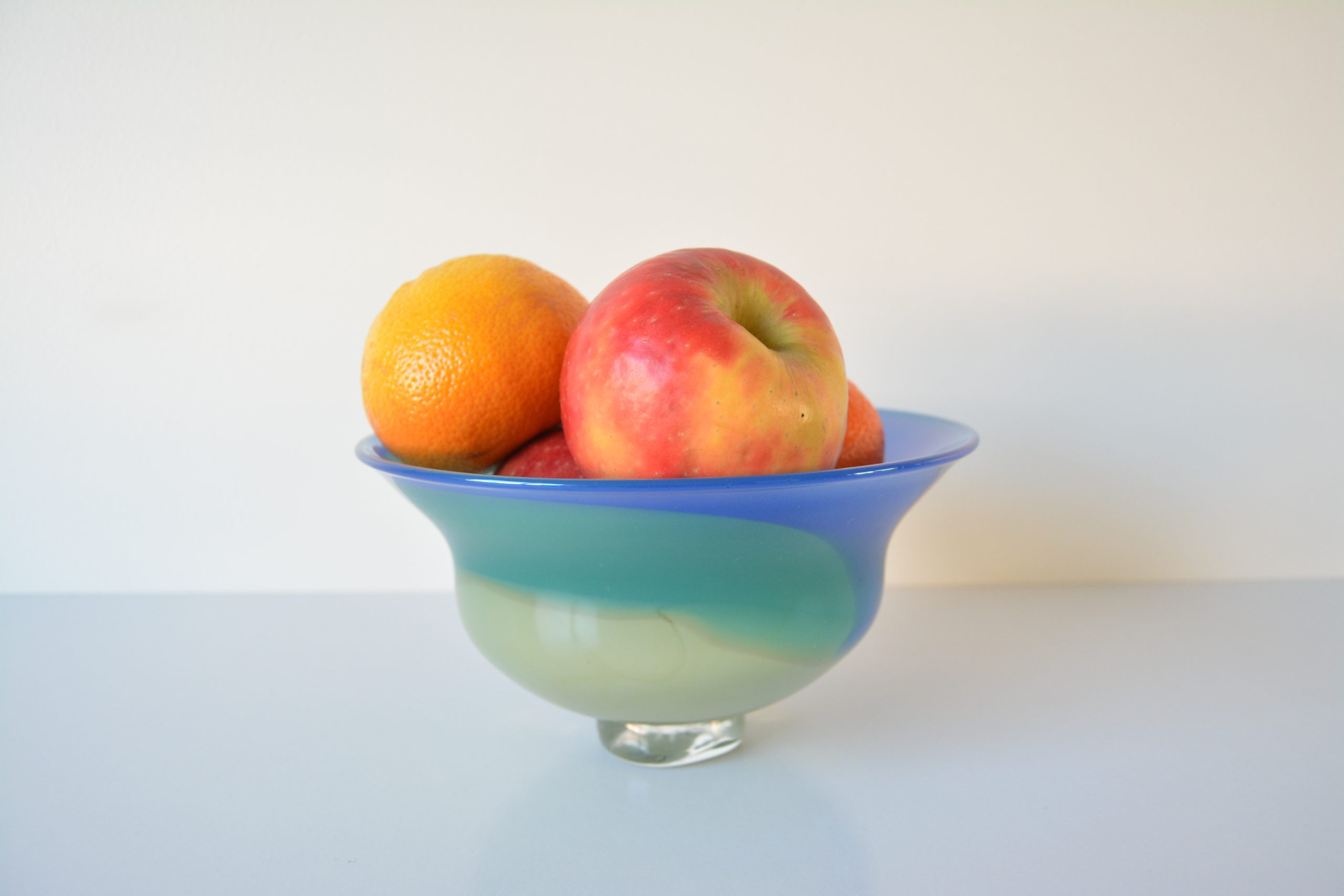 I LOVE the colours! They seem to have an ethereal glow to them. I also love the wispy flow of the design. The motion draws you in and holds your attention. This one is a good size to be used as a fruit bowl- it’s a tall piece and can hold up to 5 or 6 pieces of fruit (another advantage of investing in this beautiful piece).