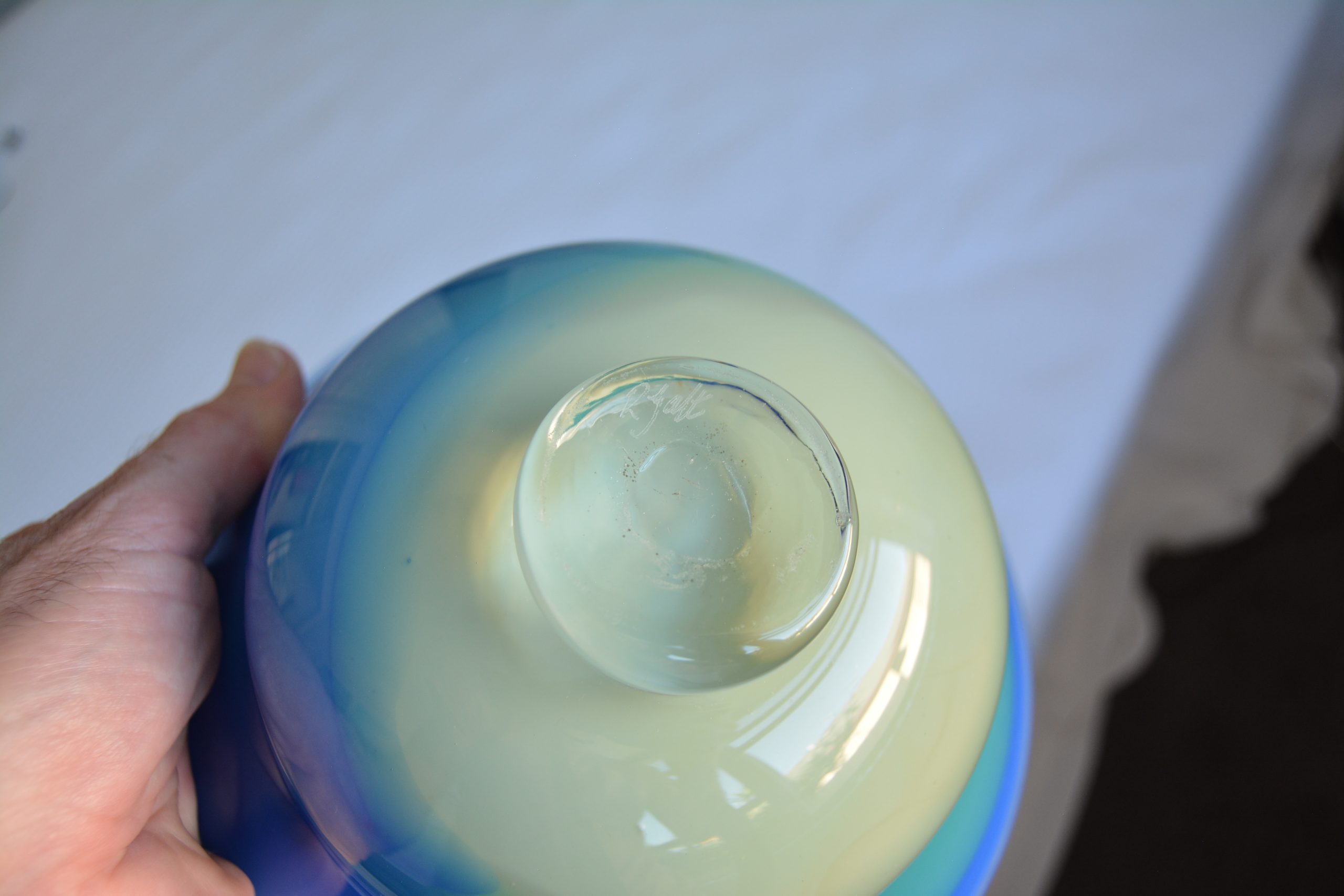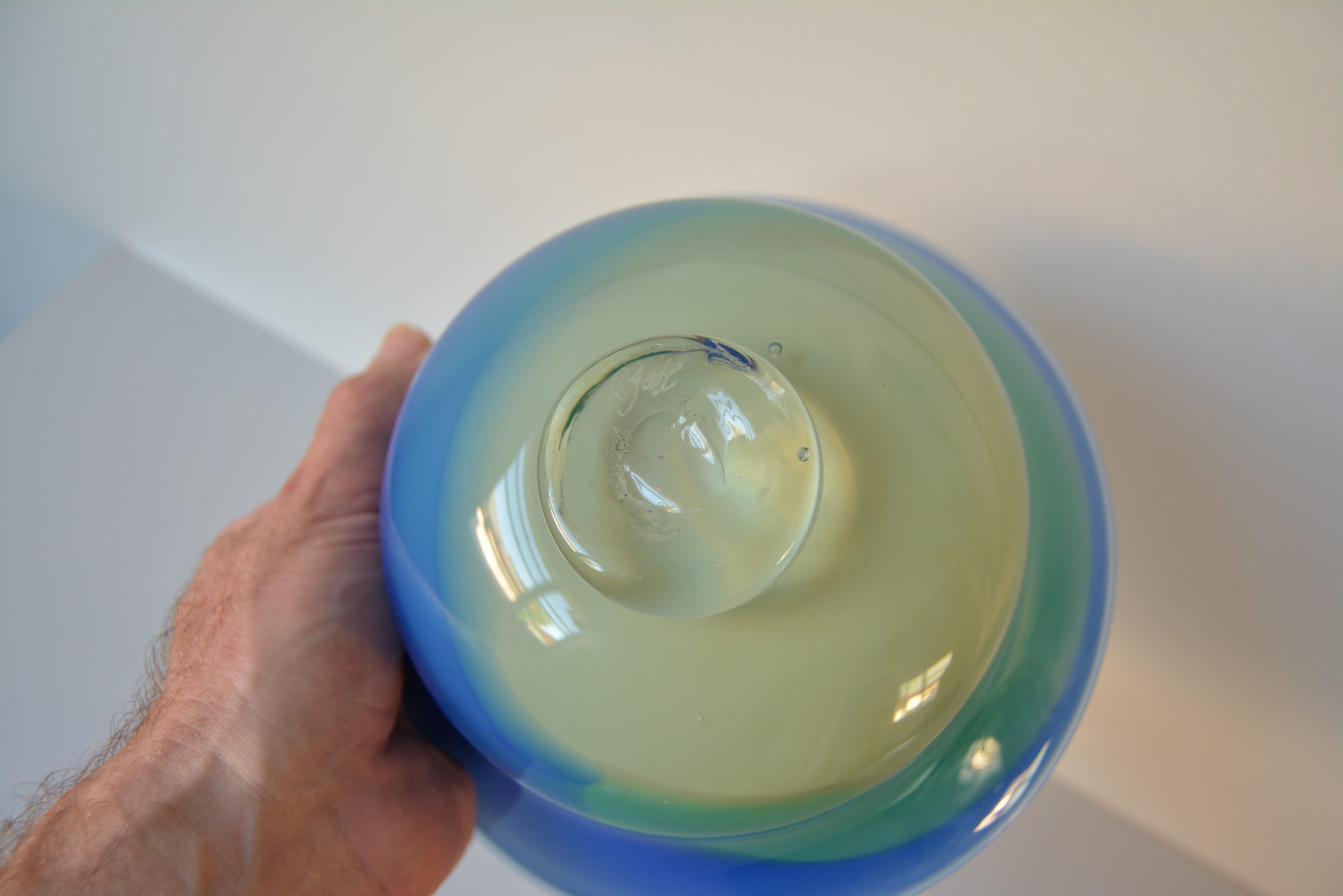 An art glass bowl made BY HAND by Robert Gatt at his Port Fairy Glass studio (about 3.5 hours out of Melbourne, heading towards Adelaide). This piece is about 20 years old and has been made masterfully by this well-known figure in Australian glass.