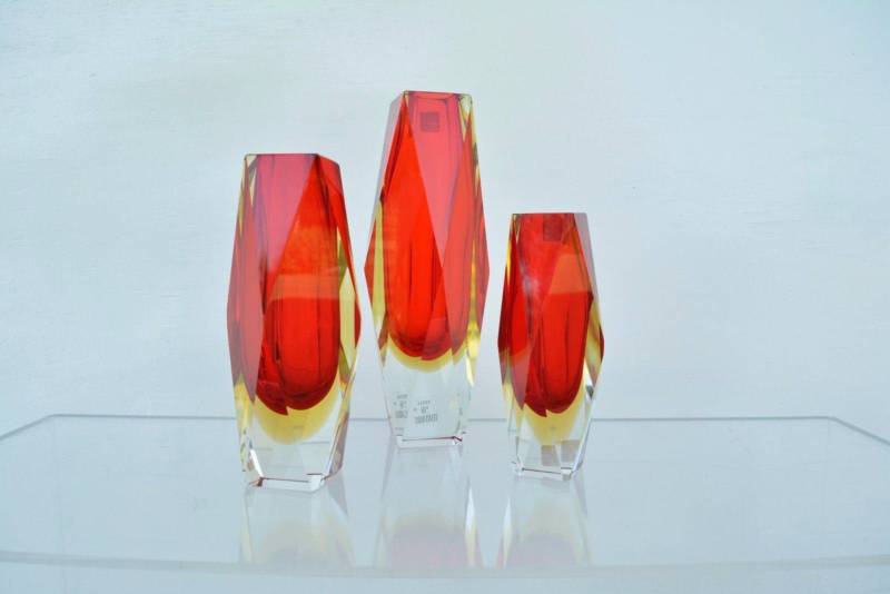 These 3 vases would retail new today in Murano, Italy for around AU $2500 for the set and the labels authenticate this statement. This is a conservative estimate- I’d say it would be closer to AU $3000. (This production is not new though- these are about 25 years old- the Vetri Murano labels changed about 20 years ago.) Countless hours have gone into HAND-creating and producing this design. The facets are all hand-cut- the craftsmanship is astounding and proof of why the Murano region in Italy has lead the world in the creation of HAND-CRAFTED art-glass for hundreds of years and still do. The price I have on these is a bargain for work of this quality and esteem.