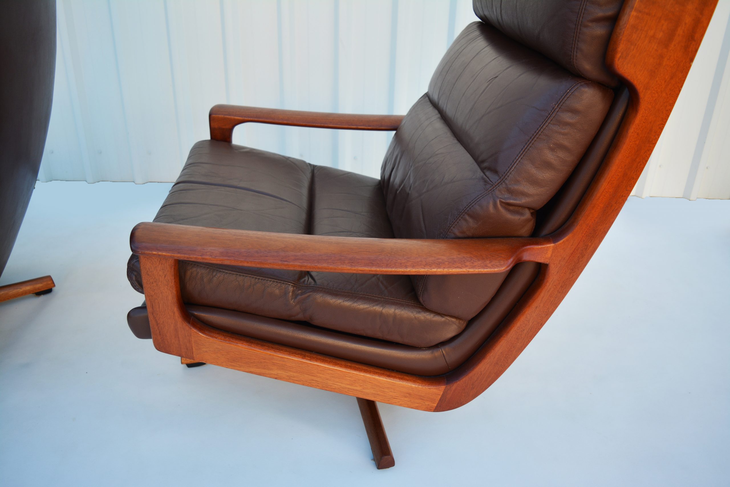 This pair is about as good as you can get. The leather is neutral in colour which really suits the boldness of this design- it helps rein it back a notch. Additionally, you have to be careful buying Tessa Furniture. Tessa went through a stage (I believe from about 1995 to 2010) when cheaper leathers were used. I recently saw a second-hand Tessa T21 chair being sold online upholstered with cheaper leather. The back-headrest leather had completely cracked through and a seam had ripped apart- other cracking will be inevitable if you buy a Tessa chair in a cheaper leather. Some of these cheaper “leathers” can disintegrate completely within 10 years. This pair is upholstered in quality FULL-GRAIN leather (it’s likely to be Howe Leather- a premium Australian leather). FULL-GRAIN leather is infinitely better in quality compared to TOP-GRAIN leathers (or in the newer Tessa releases where the leather-type hasn’t be disclosed at all). FULL-GRAIN leather is the FULL LEATHER HIDE- it has been processed a LOT LESS and if you clean your furniture after heavy use and condition it 3 or 4 times each year full-grain leather usually lasts 50 years (but often much longer- I’ve sold many leather lounge suites in the past that were 60 years old and had nothing wrong with the leather at all). Pigmented FULL-GRAIN leather (like this) is the best leather you can buy and the most durable. TOP-GRAIN leather is NOT the best leather you can buy- it can’t (and never will) last as long as full-grain leather.