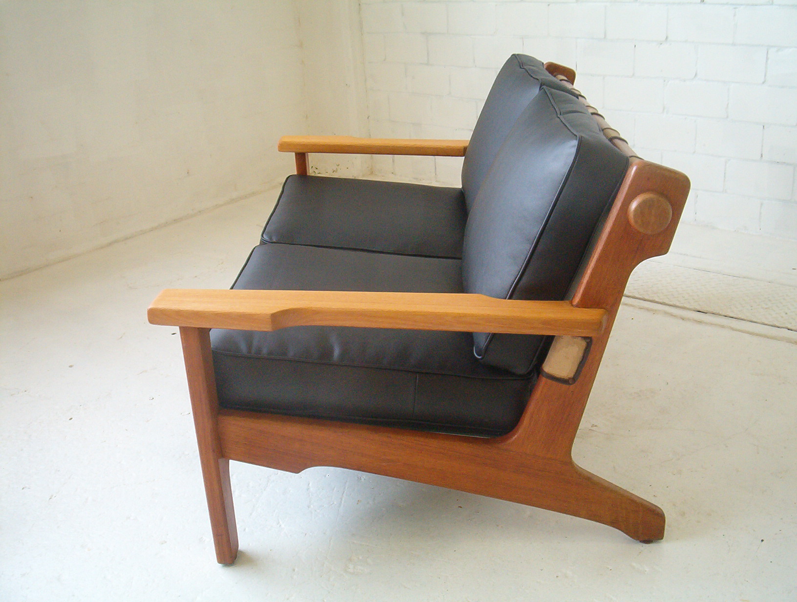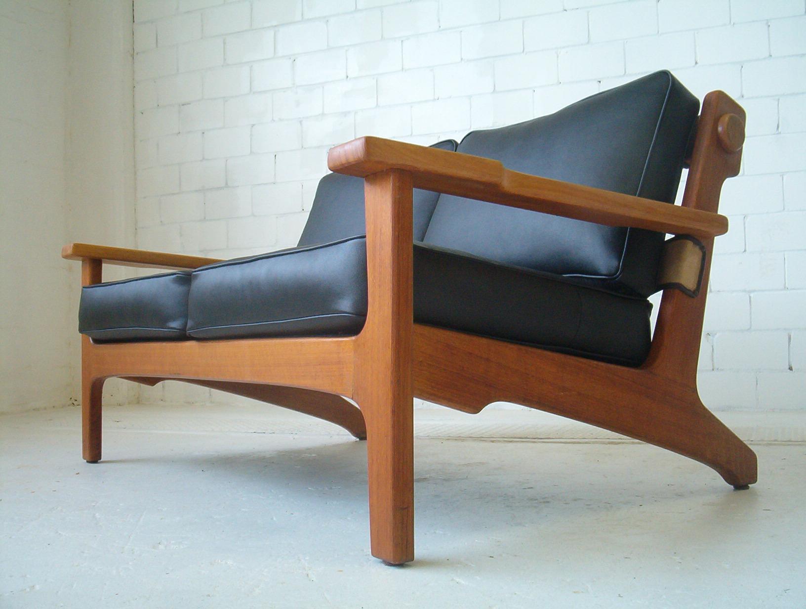 I sold this Tessa T5 sofa back in 2005. I can no longer find what I sold it for so the price given is an estimate of what this sofa might be worth today. (It’s a 2-seater which affects value as well- 3-seater sofas are worth disproportionately more because more people want them.) It’s also hard to ascertain value of this particular sofa because I had it re-upholstered in black vinyl in 2005. (I was inexperienced in this business back then.) These days I would certainly use leather for this design. The Tessa T5 design is RARE and warrants using leather. These are loose cushions sitting on an extremely well-built frame. Re-upholstery is cheap and easy but top-quality leather is expensive to buy. (I was trying to cut costs back then but the wrong way!) Good quality leather is always better to sit in than vinyl.