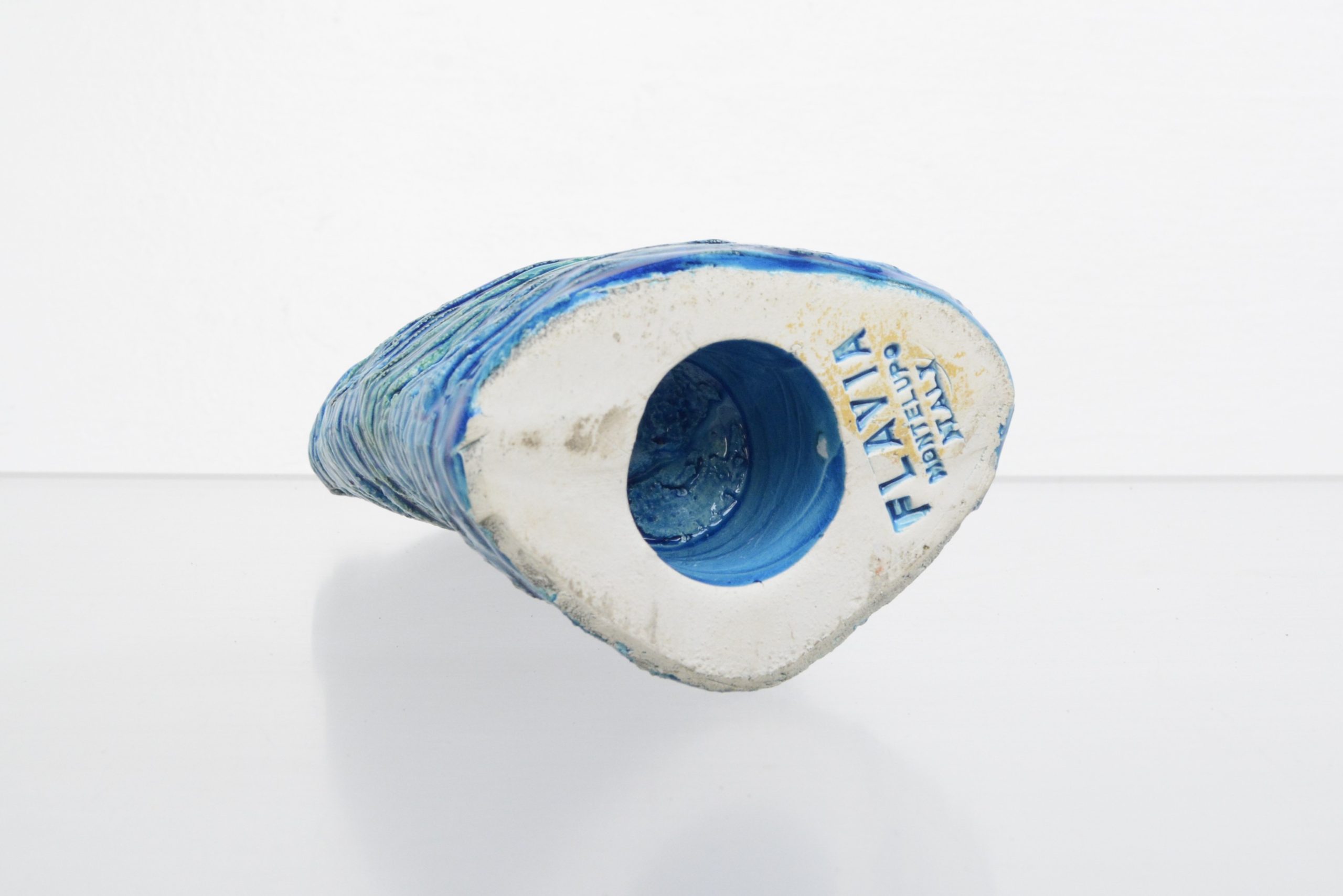 It’s obvious this cat has been done by hand but this shape hasn’t been re-issued anyway- this is a VINTAGE Bitossi piece- GUARANTEED. The piece is stamped with FLAVIA and also has the MADE IN ITALY label that was used in the 1960’s and 1970’s- this label further strengthens its investment appeal. I’ve been following the investment values of vintage Bitossi for 25 years. It has never gone backwards in that time and from 2013 to 2019 values DOUBLED! Since COVID they have increased in value by about 50% in just 4 years (from 2020 – 2024).